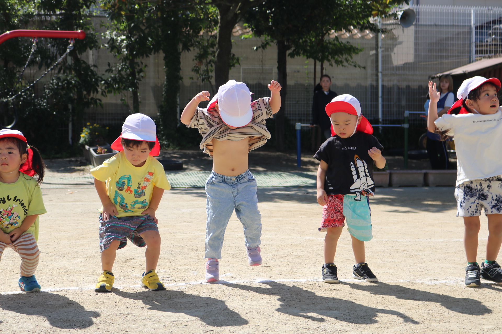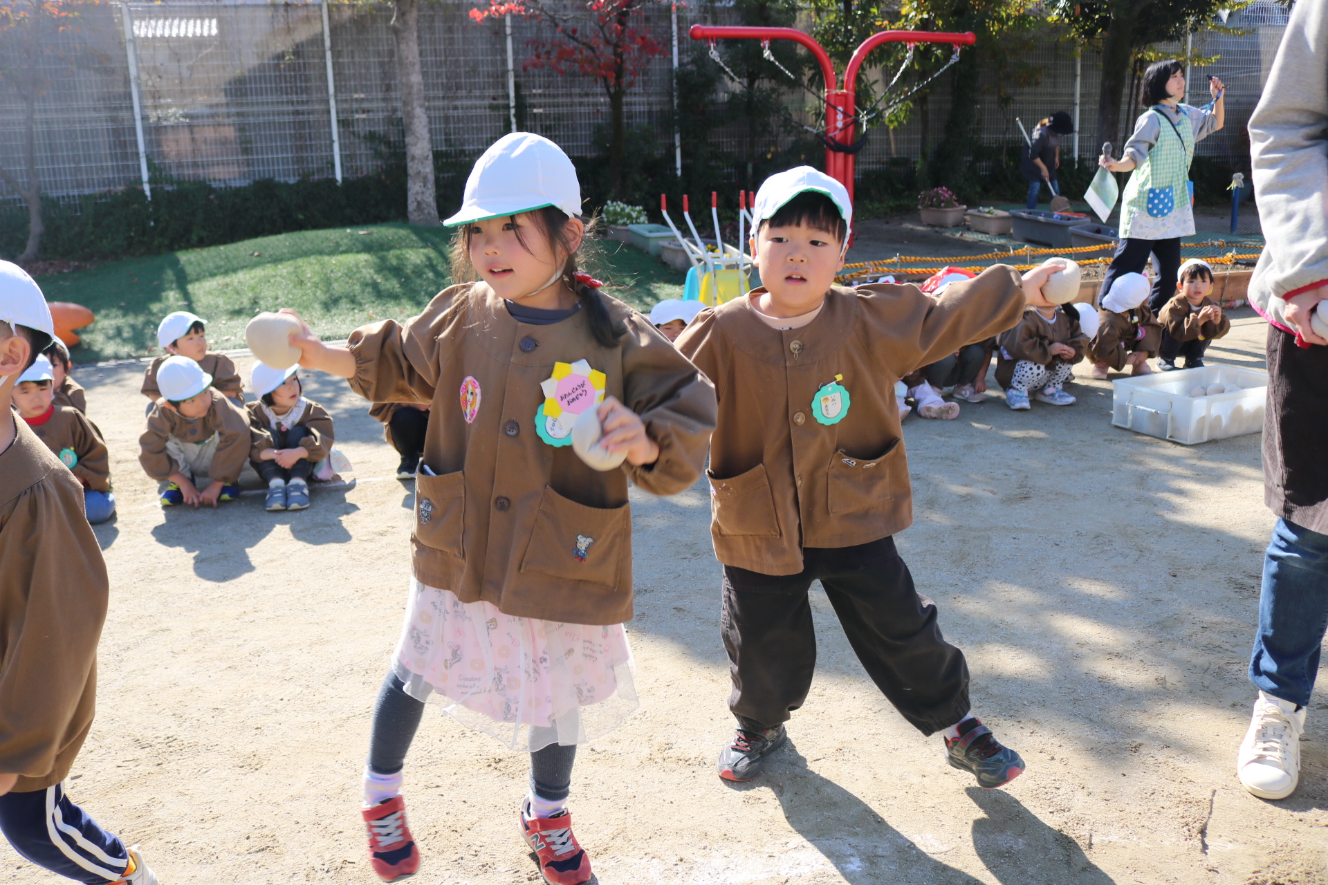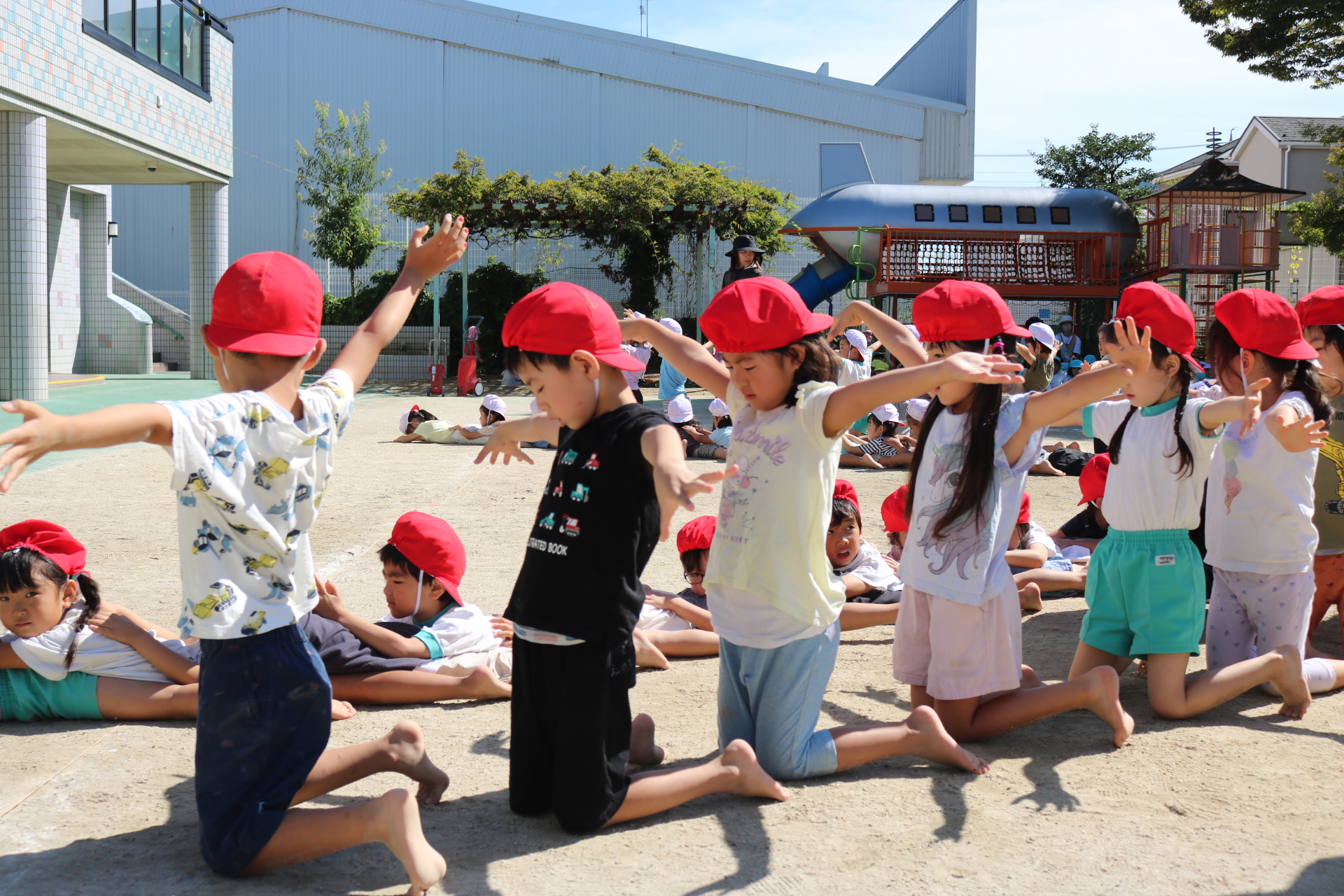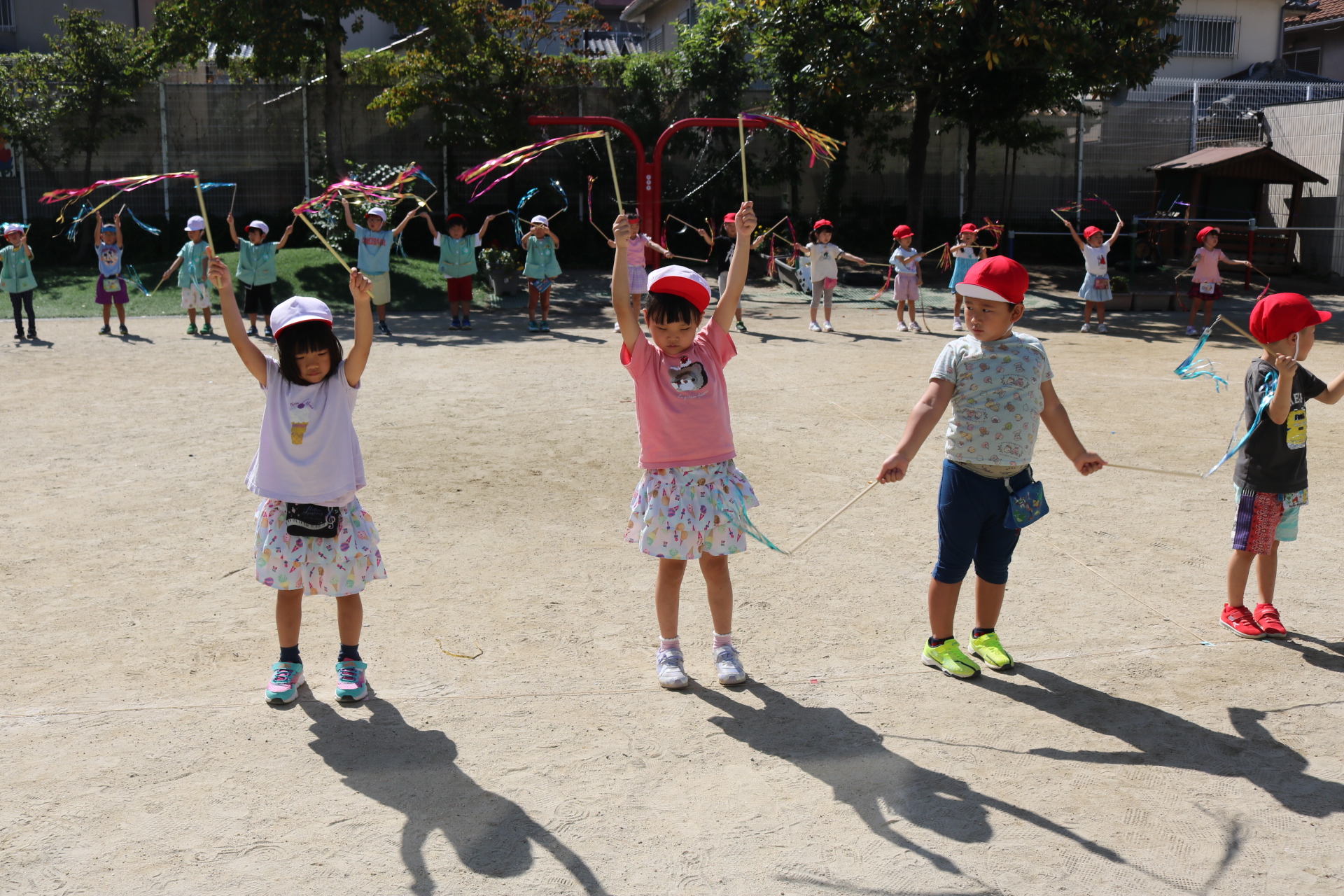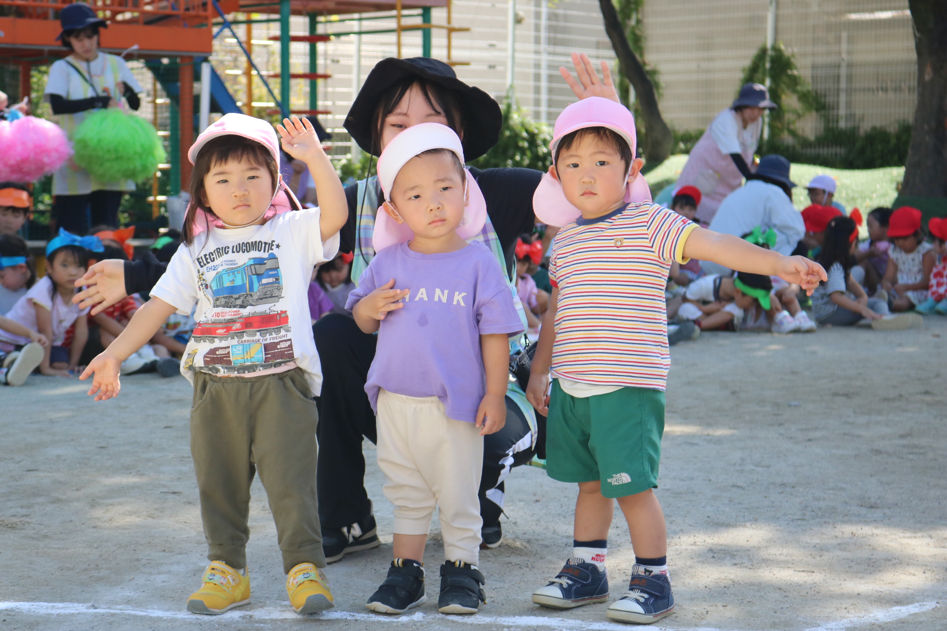 天気も良く、戸外で体を動かして元気に遊んでいた子どもたちです😊(年少・年中)