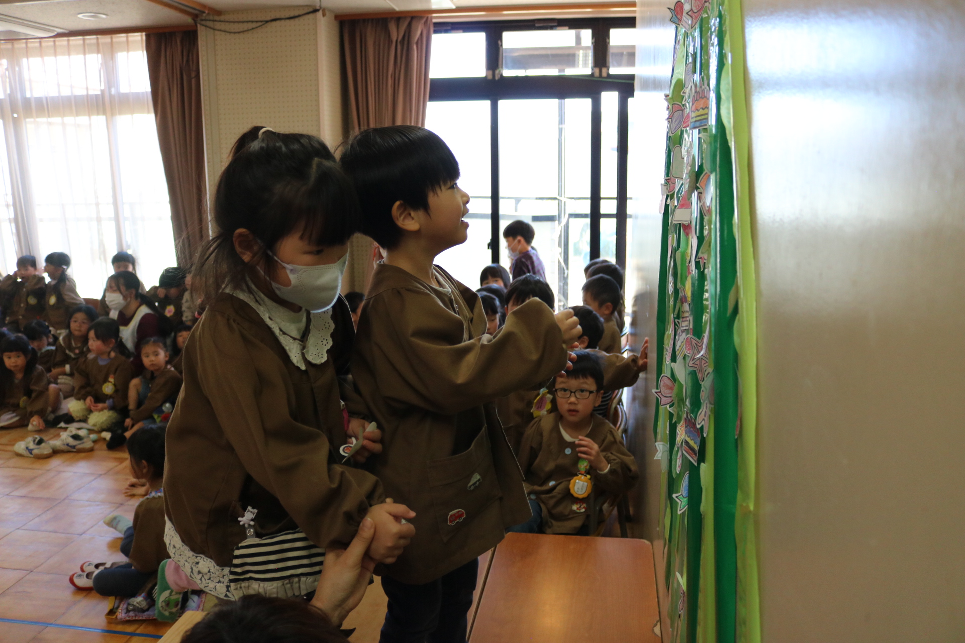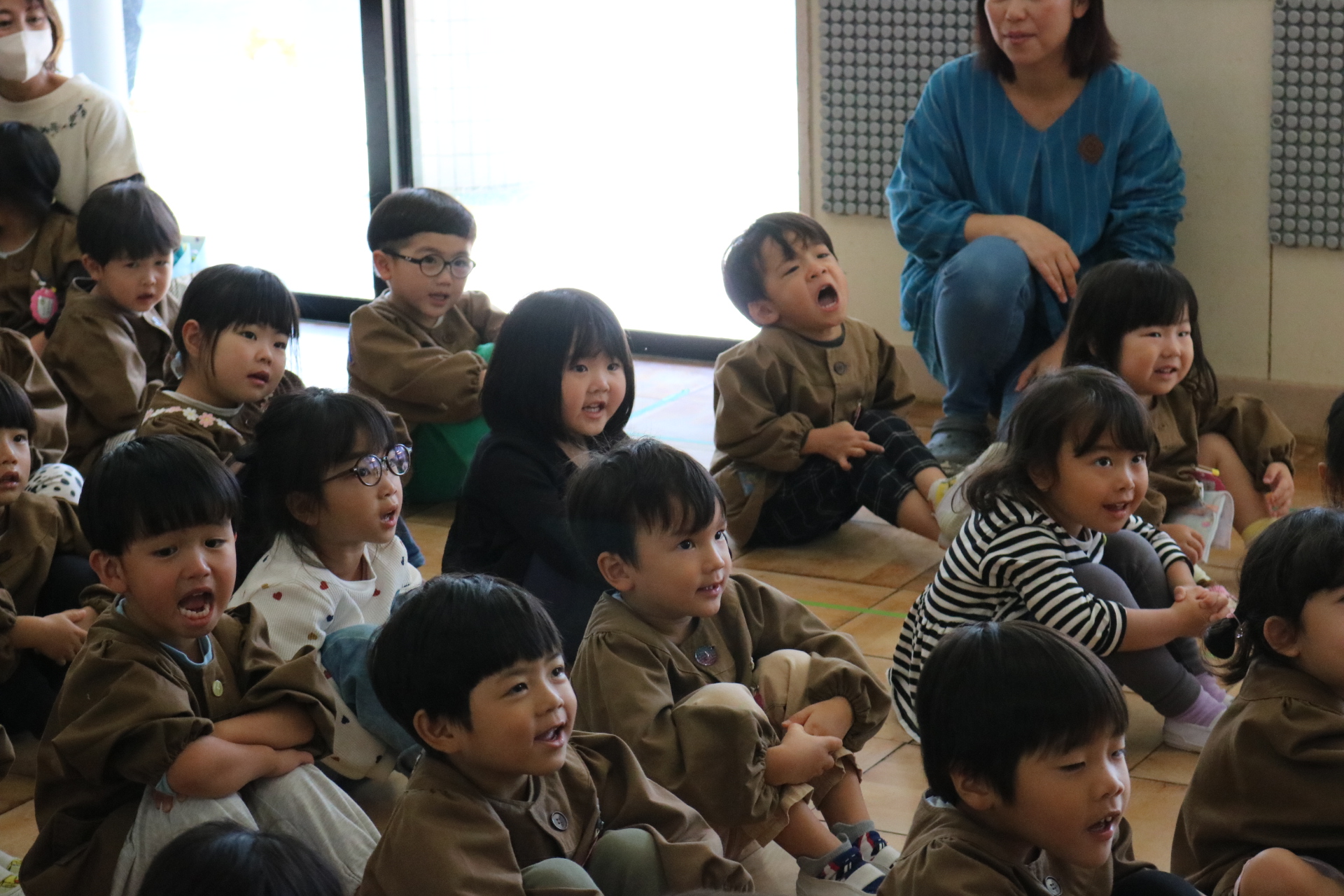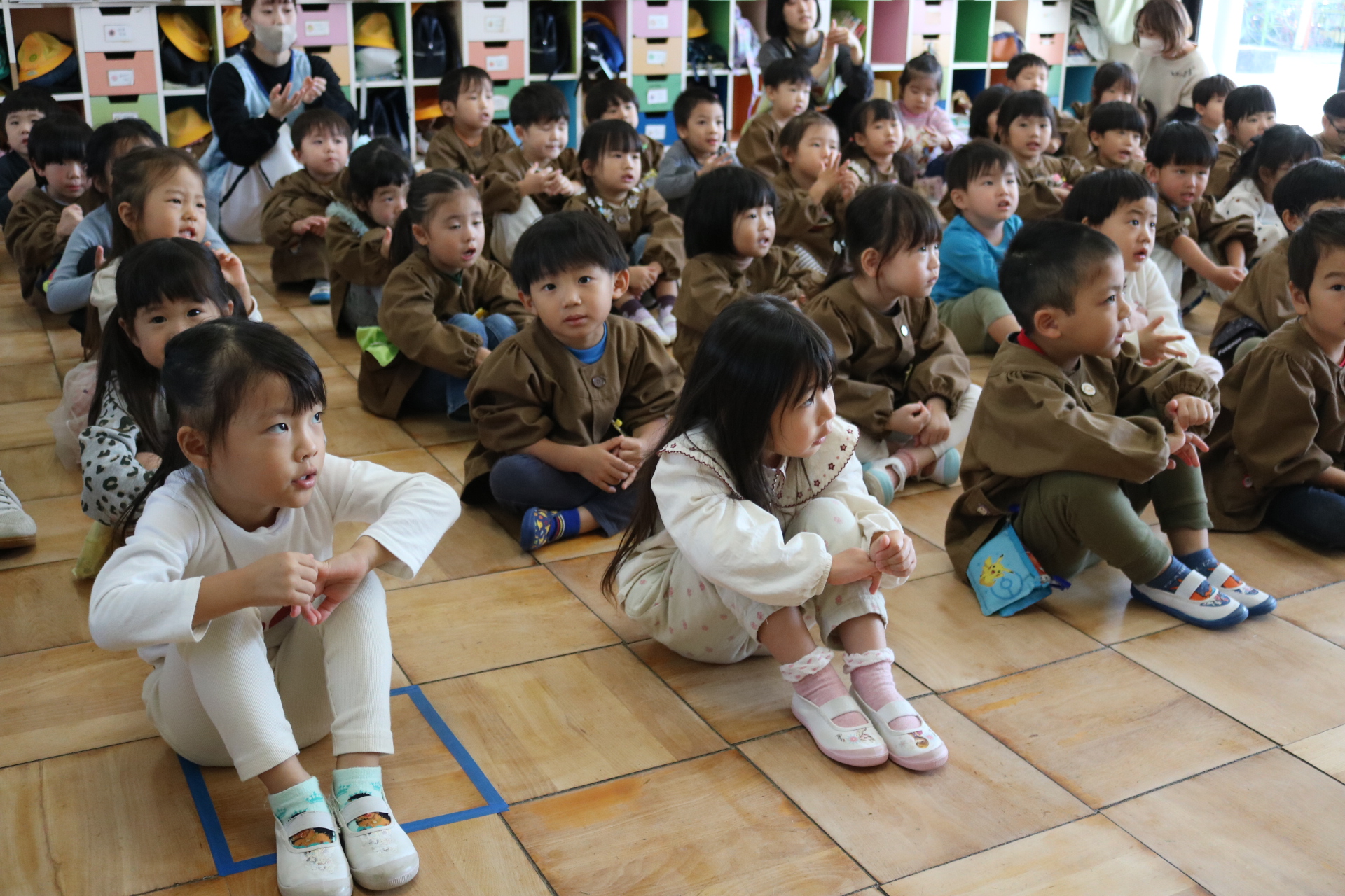 4月生まれのお友だちの誕生会がありました😊今回は鑑賞会で、ペープサートや手袋シアターを見て楽しみました。
