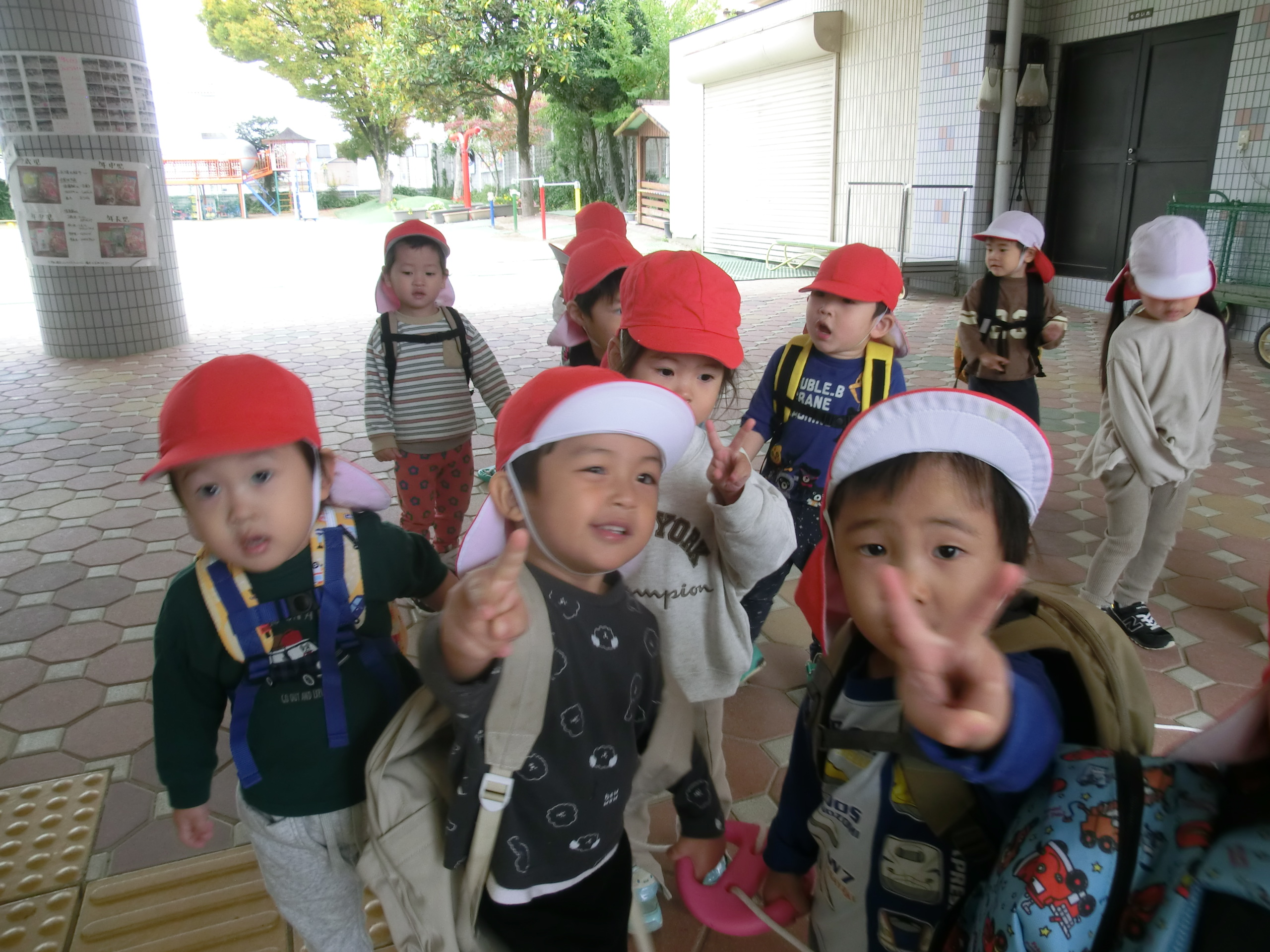 今日は春の遠足🎵お弁当をリュックに入れて出発!!弁天公園でたくさん遊び楽しんできましたよ😊