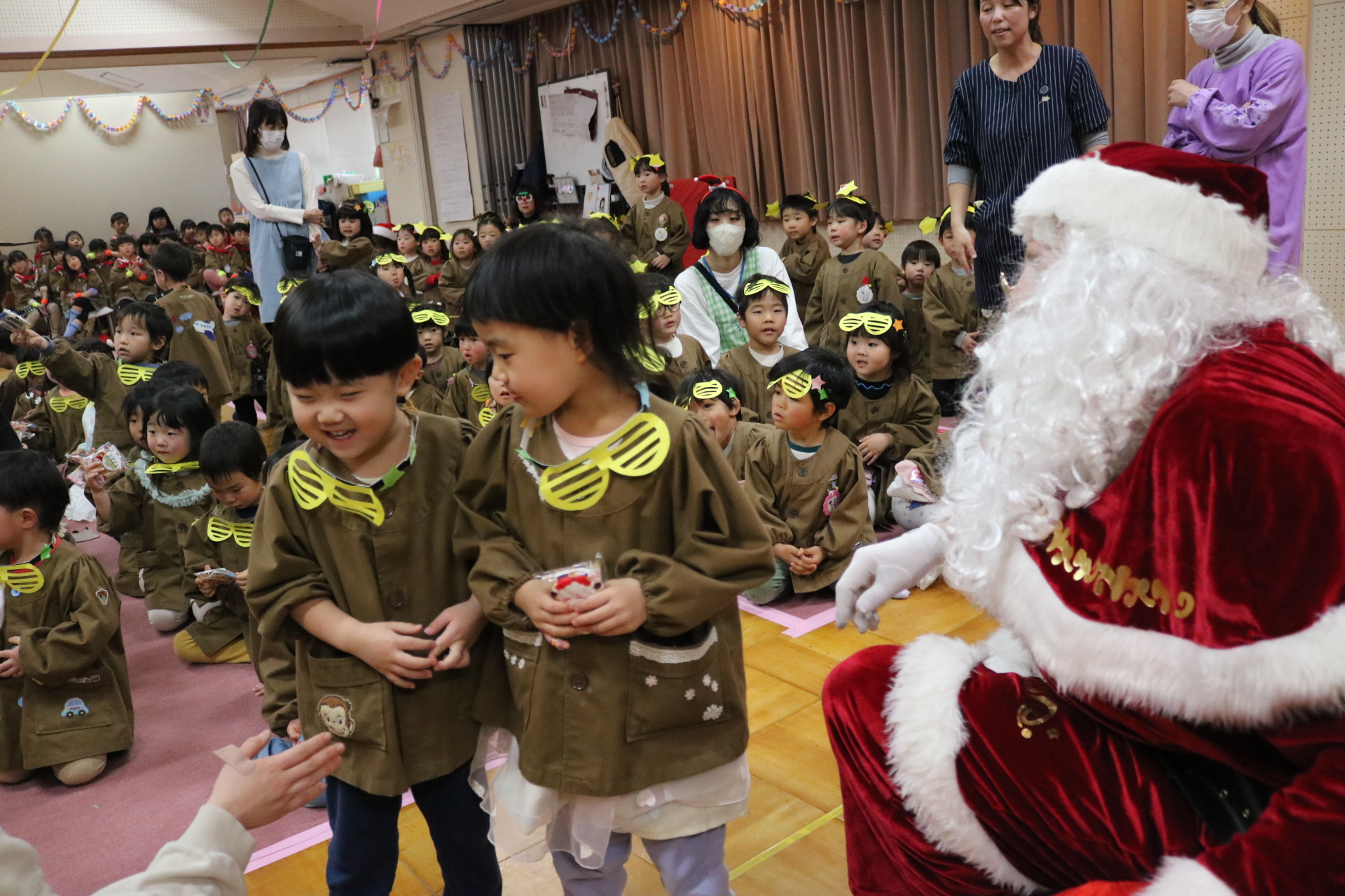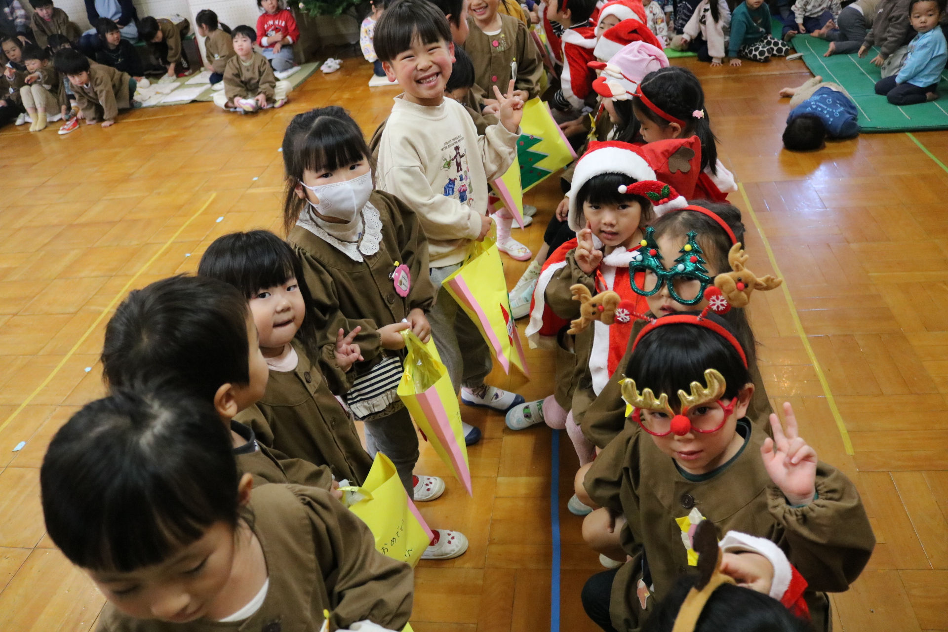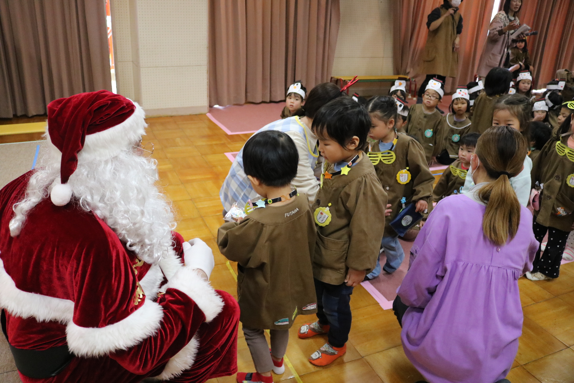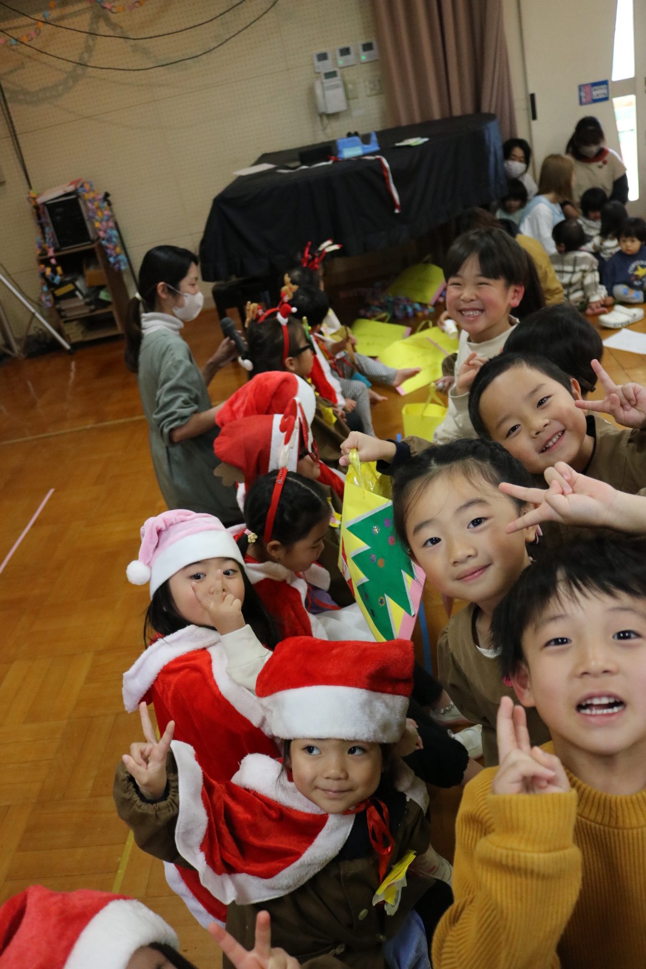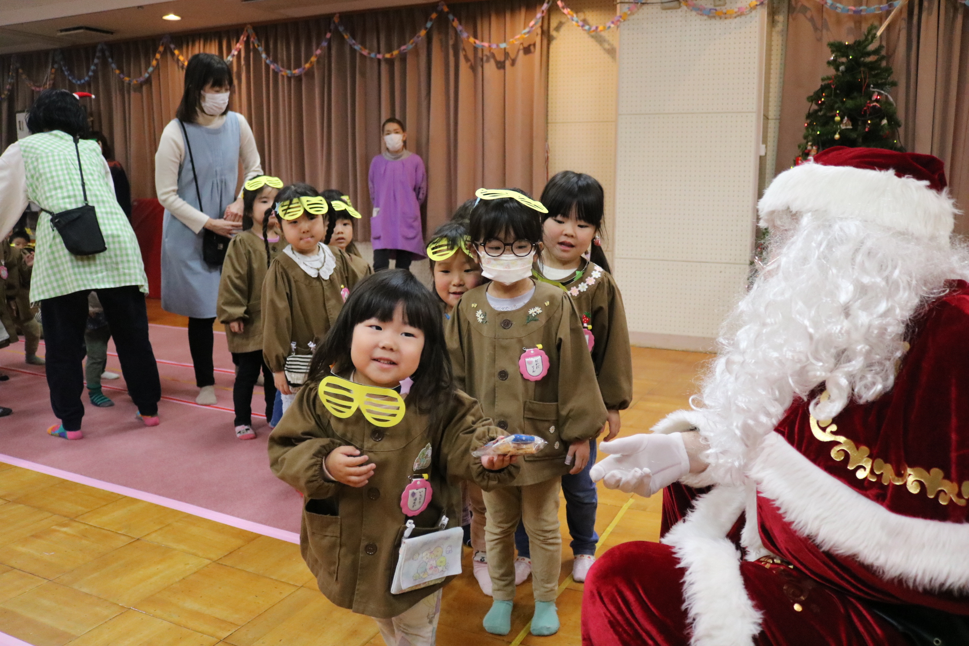可愛い衣装に可愛い踊り🎵サンタさんからプレゼントももらえて喜ぶ子どもたちでした😊