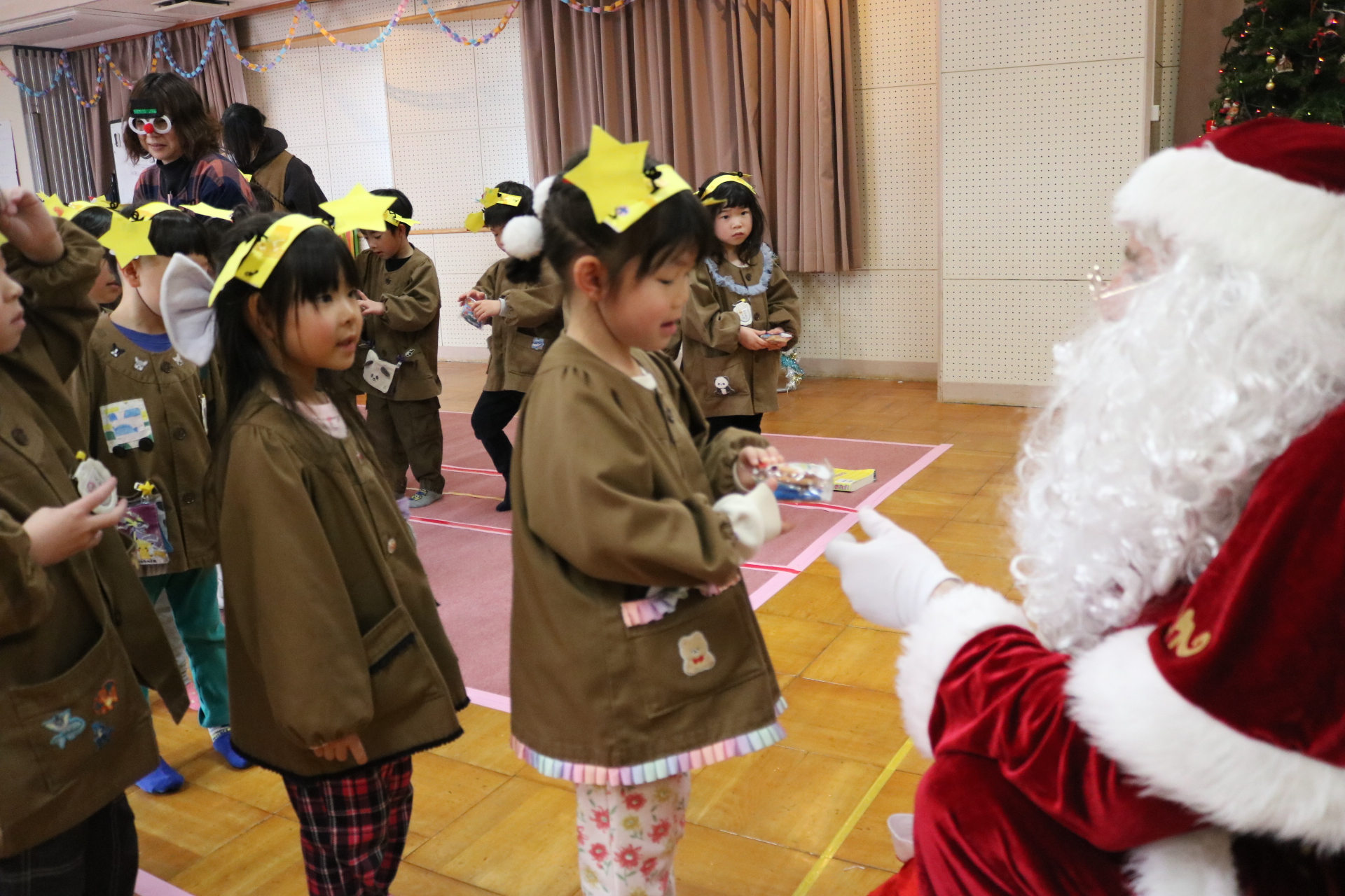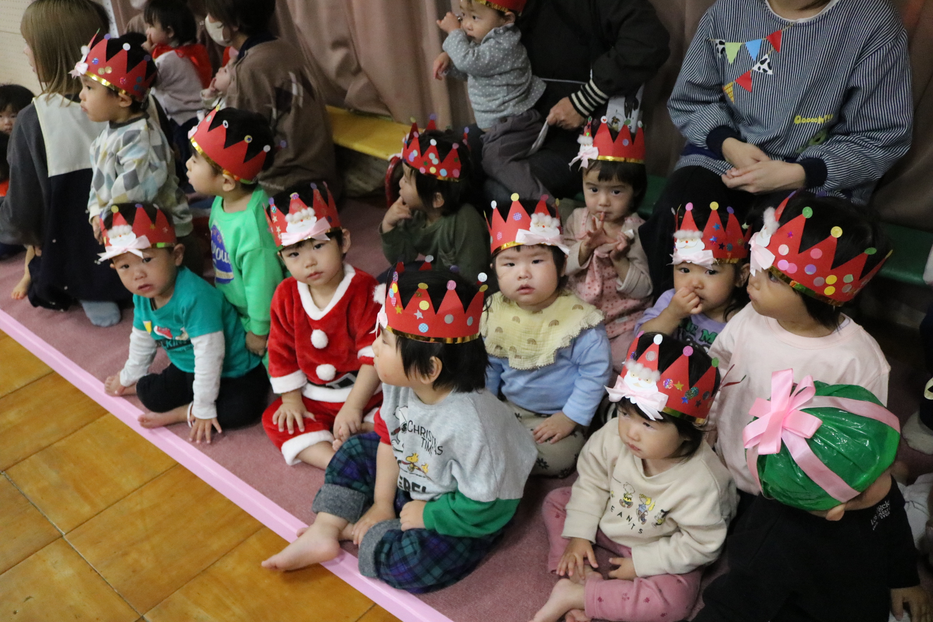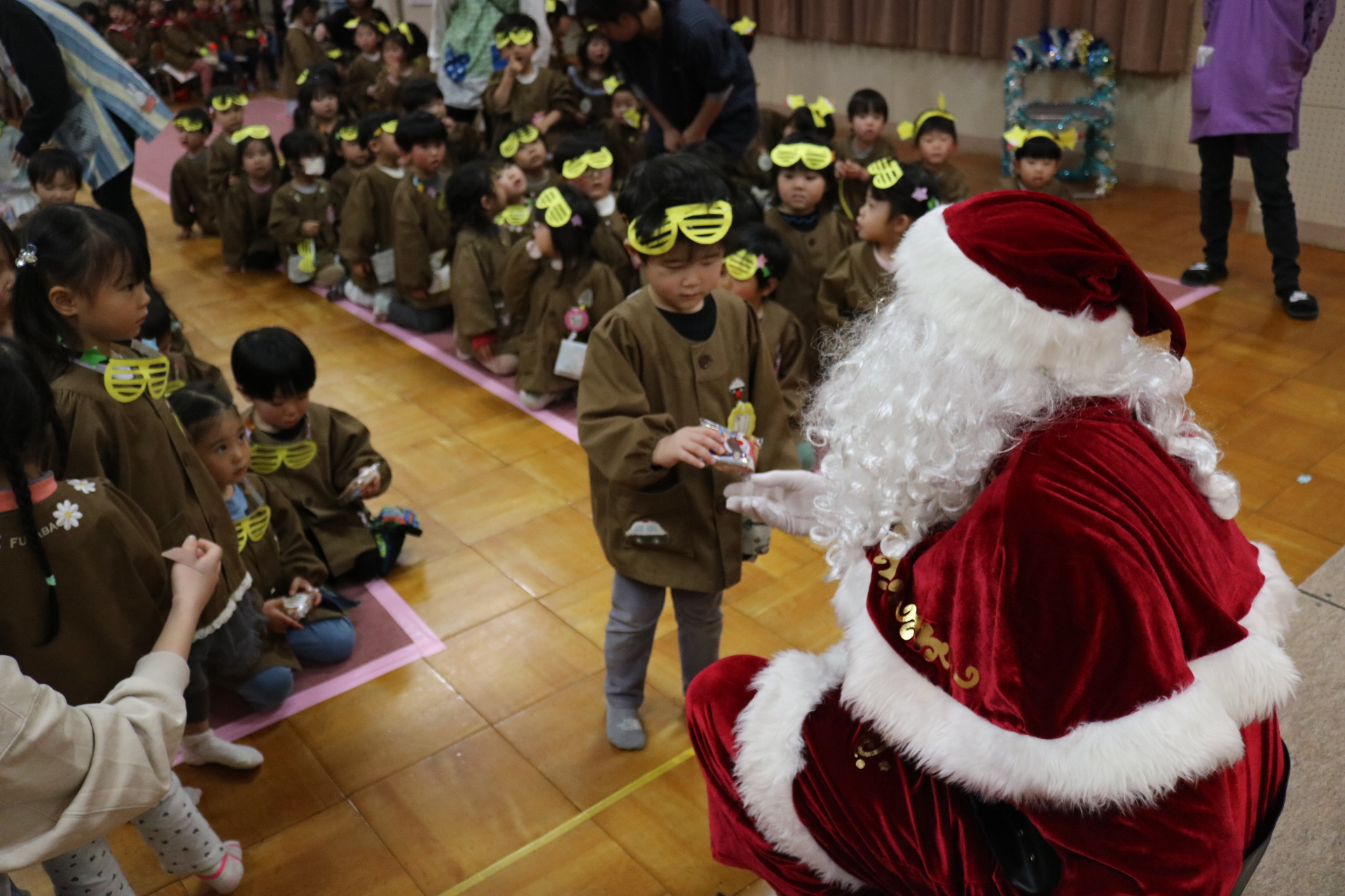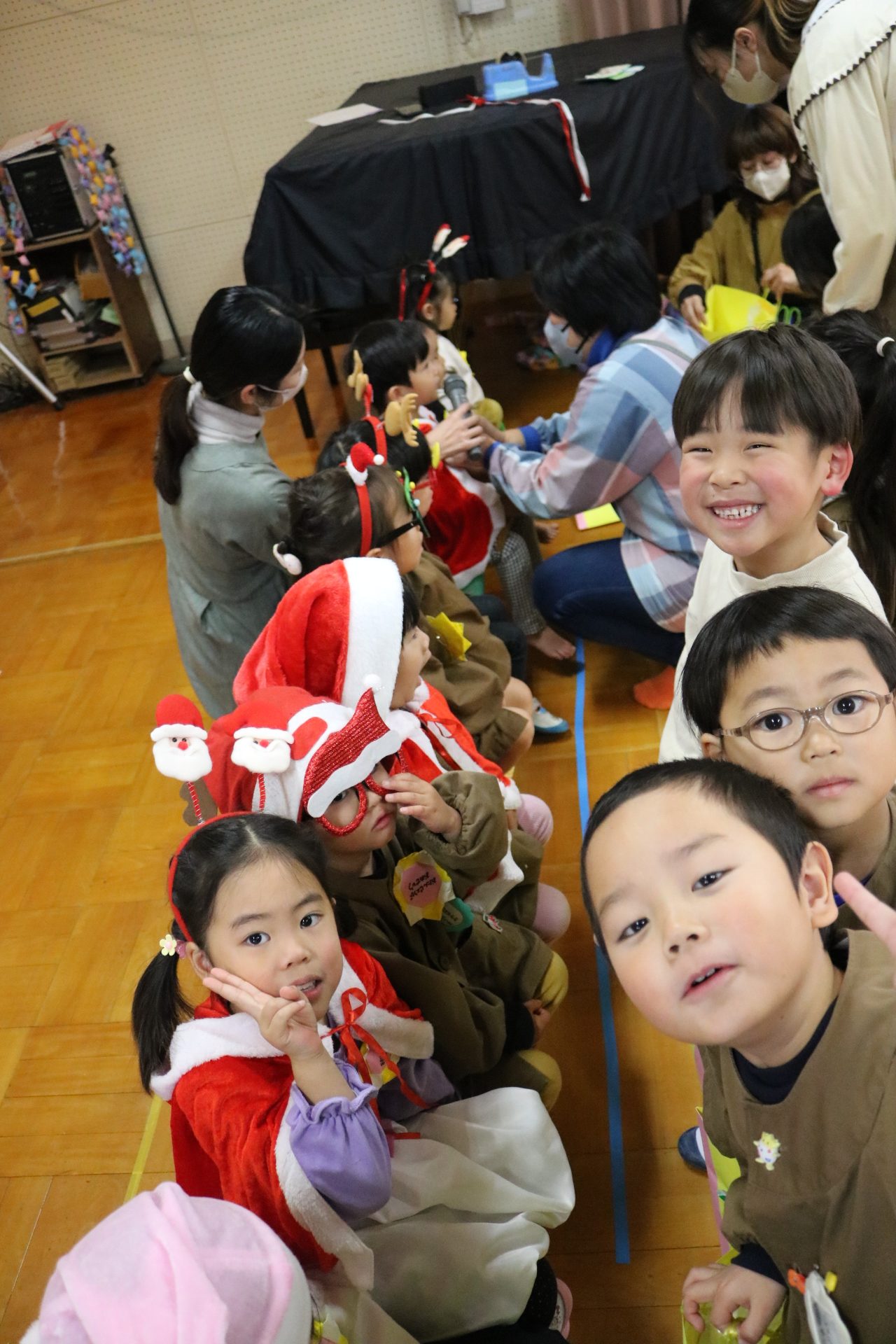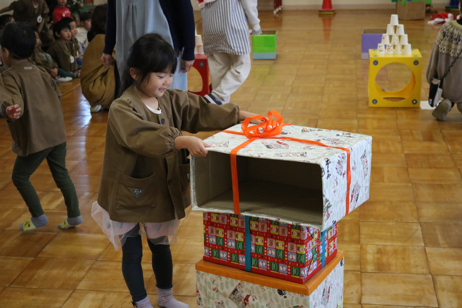 可愛い衣装に可愛い踊り🎵サンタさんからプレゼントももらえて喜ぶ子どもたちでした😊