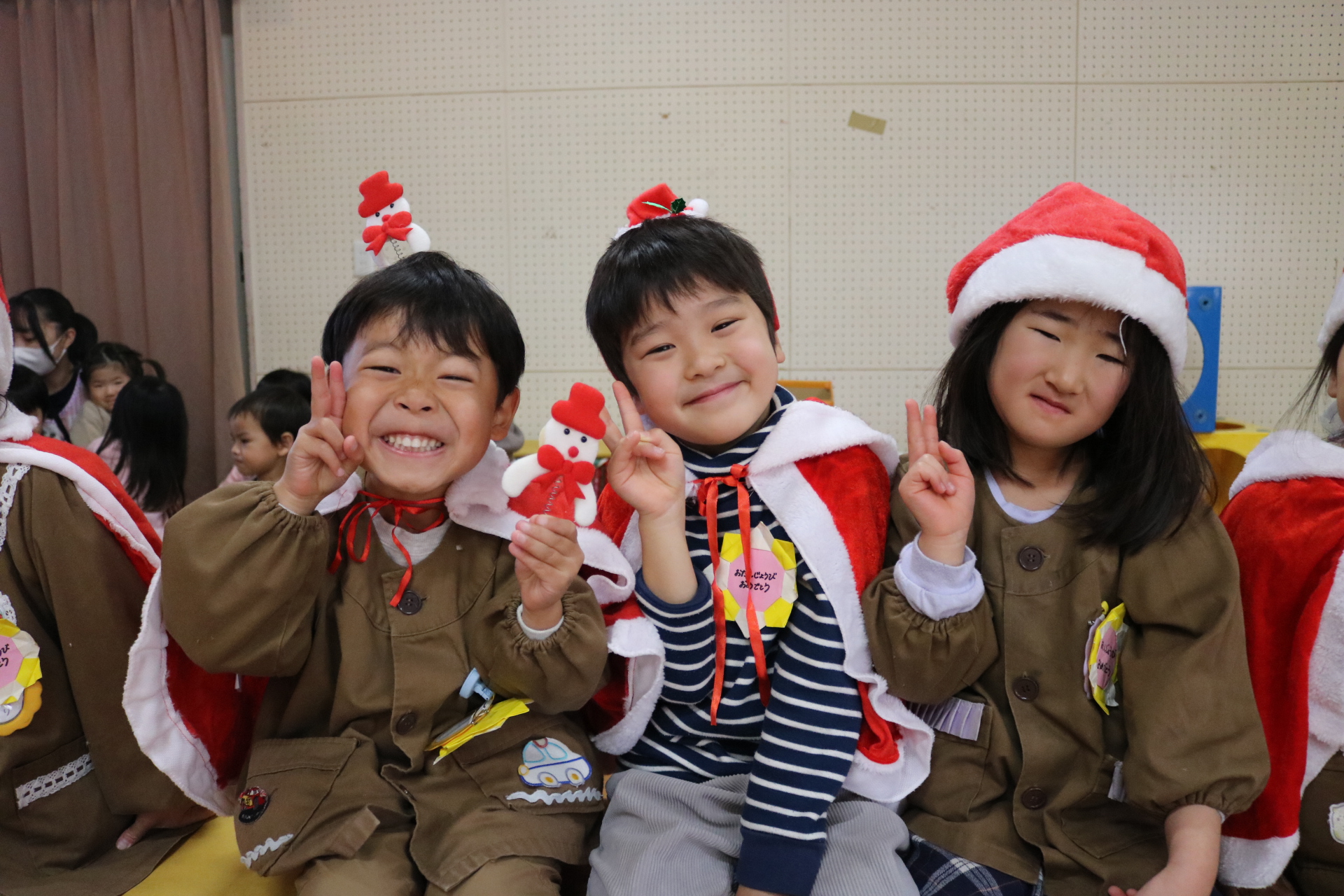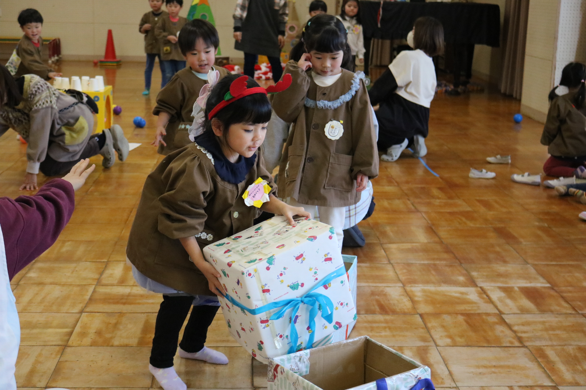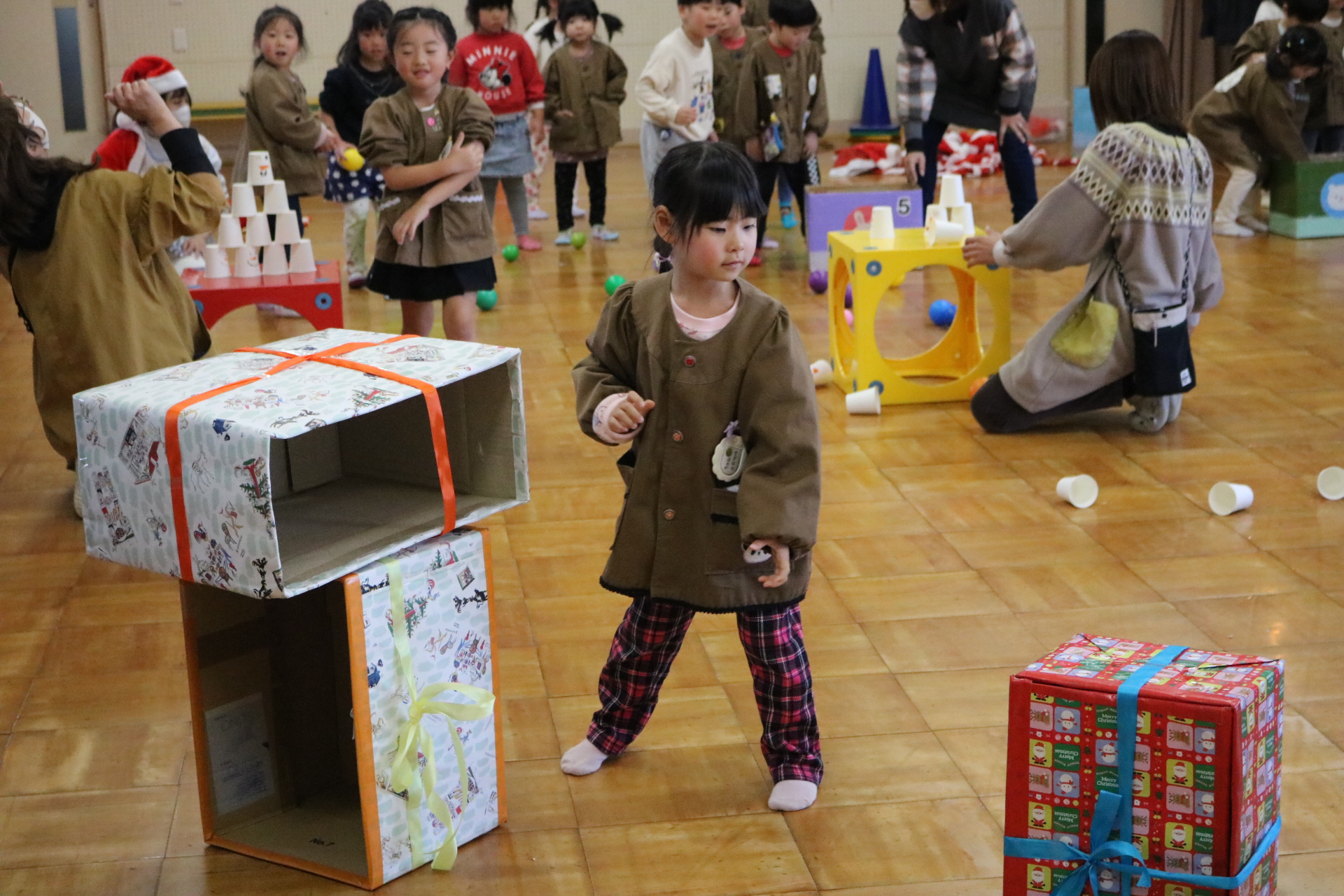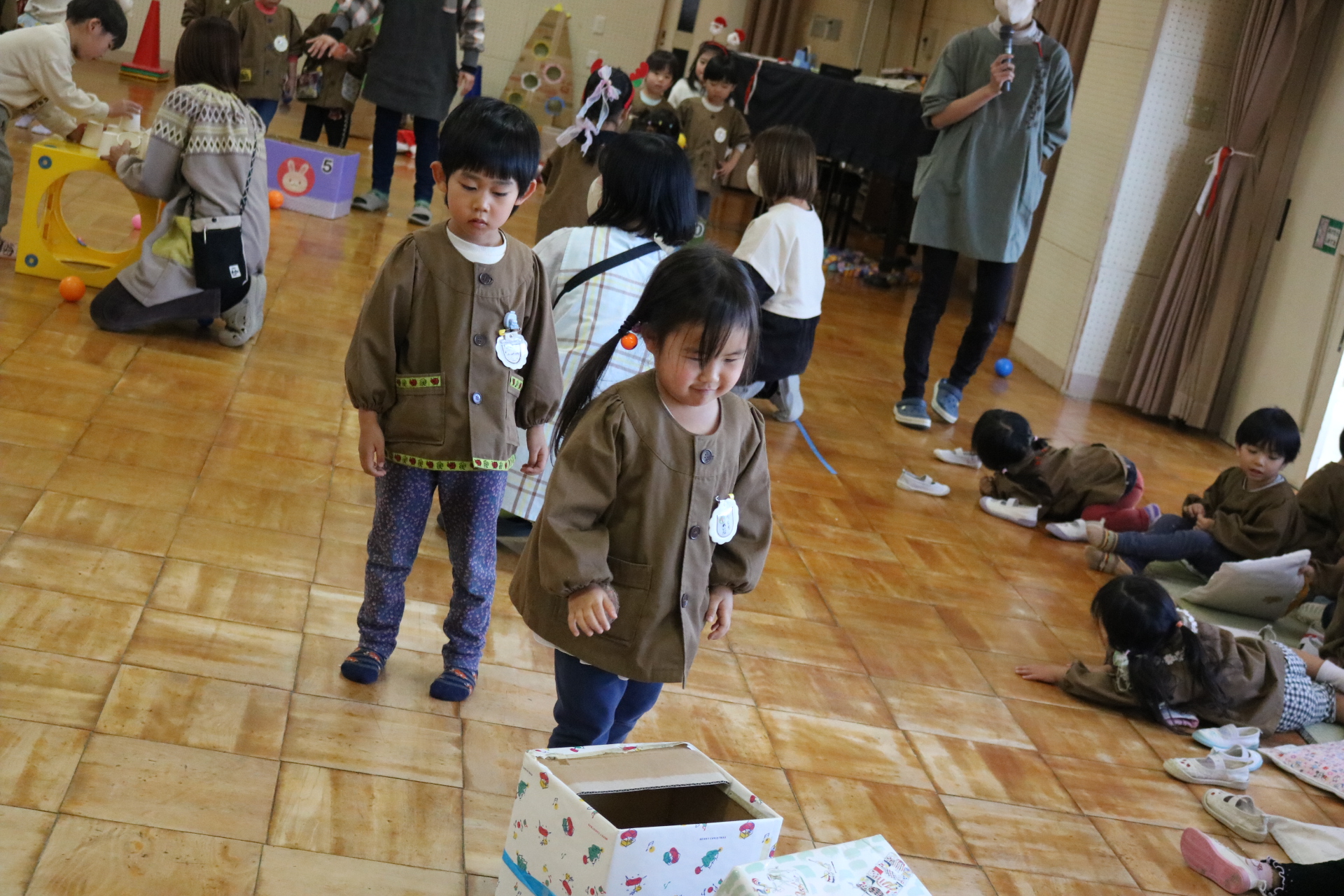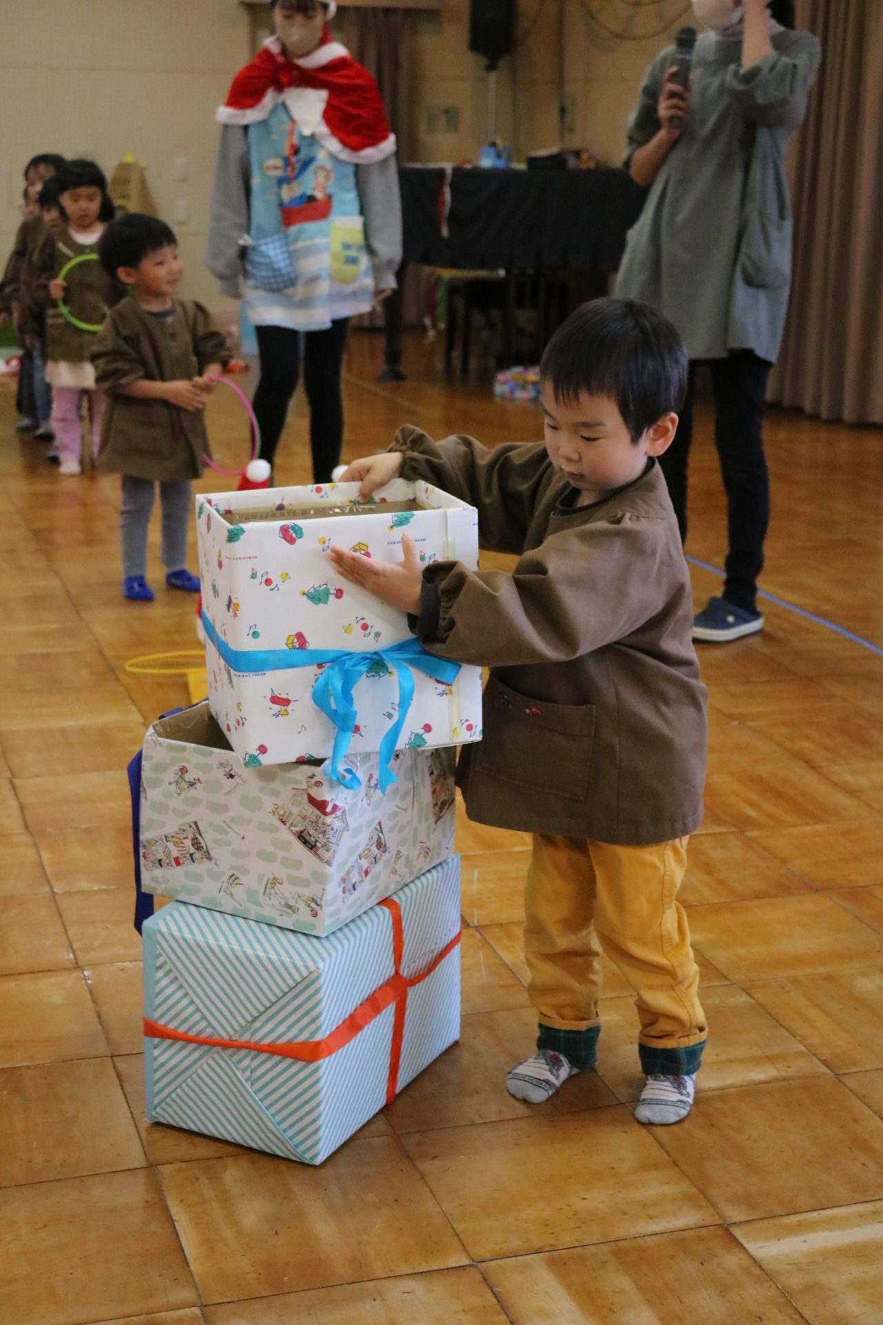可愛い衣装に可愛い踊り🎵サンタさんからプレゼントももらえて喜ぶ子どもたちでした😊