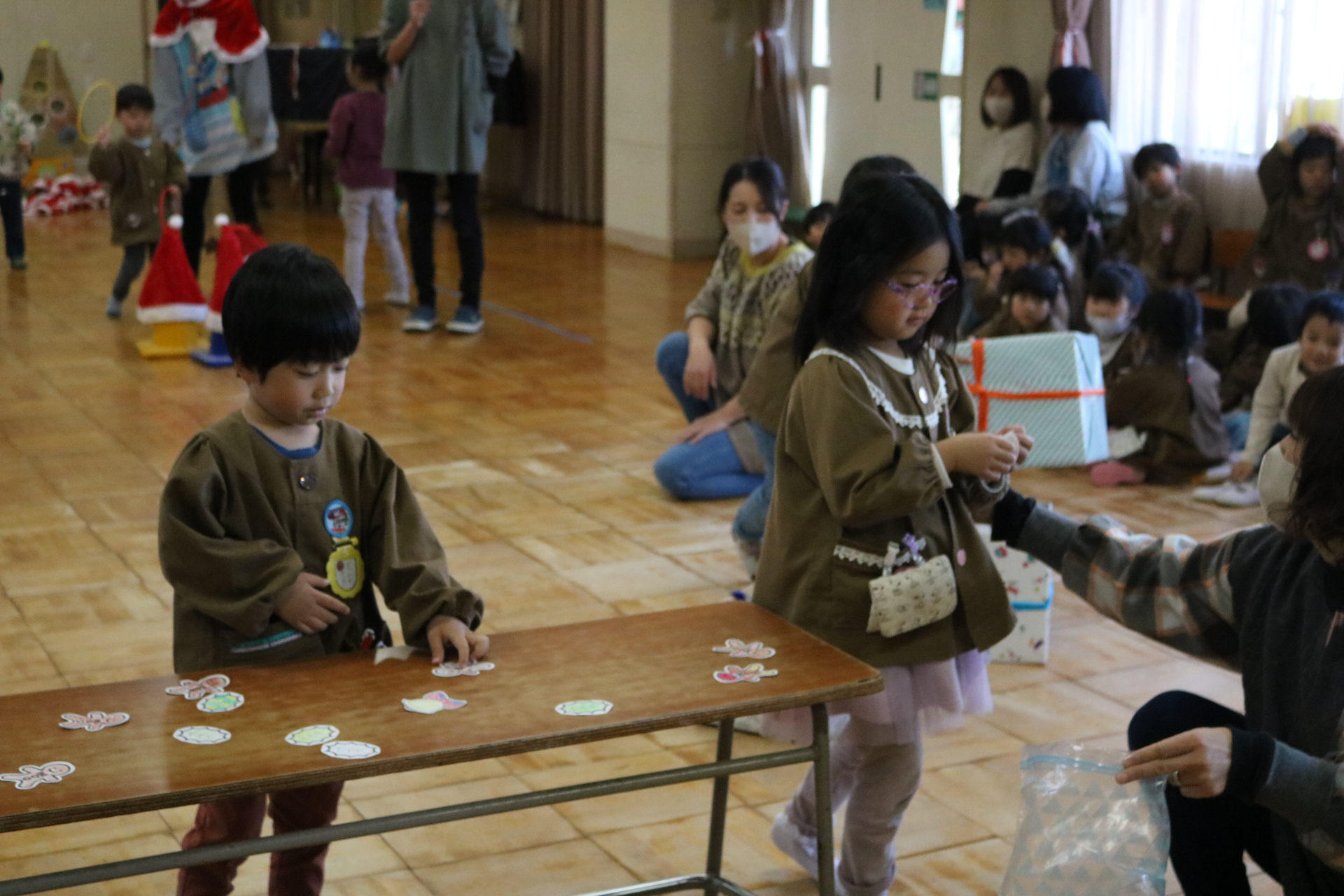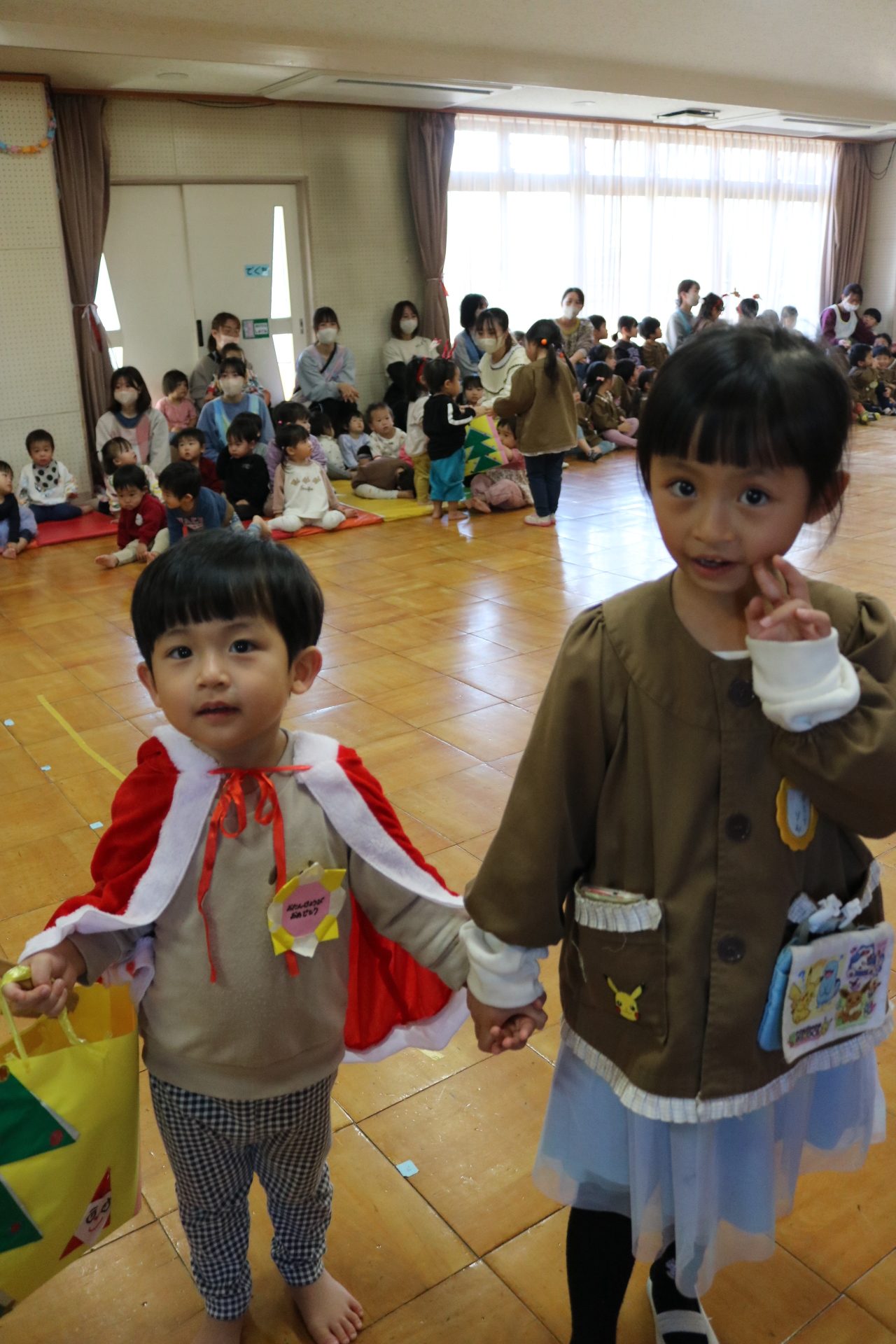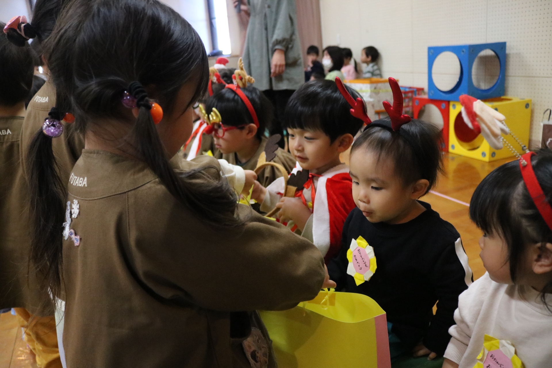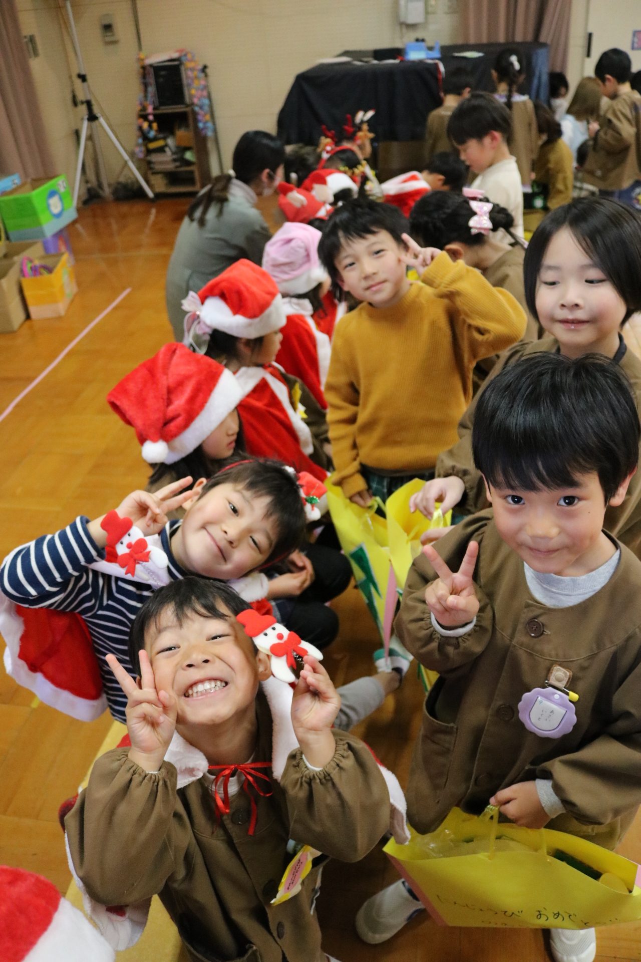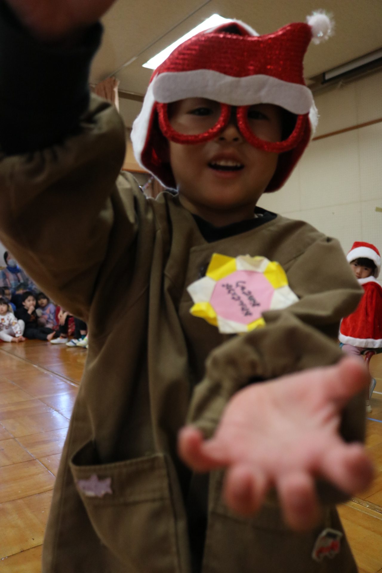 可愛い衣装に可愛い踊り🎵サンタさんからプレゼントももらえて喜ぶ子どもたちでした😊