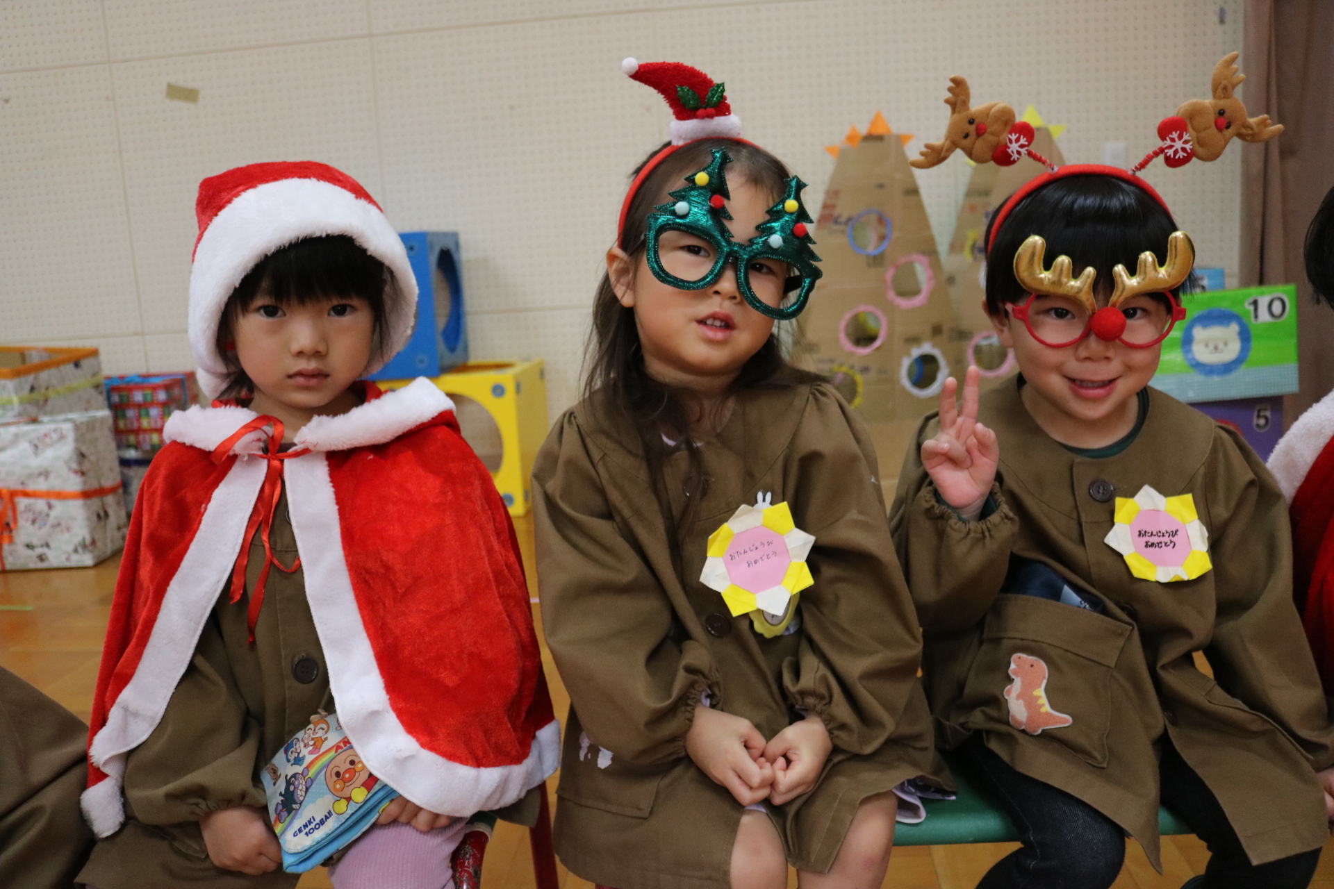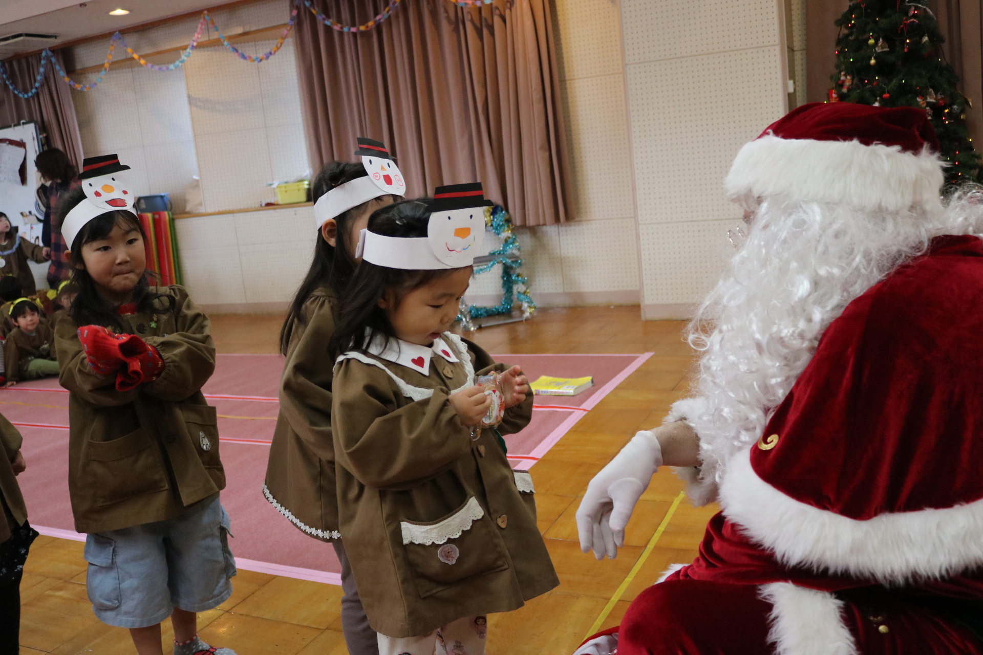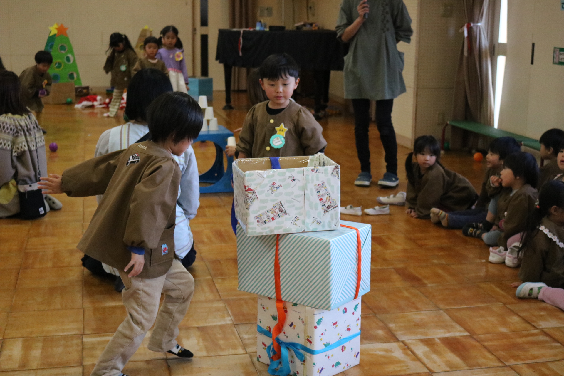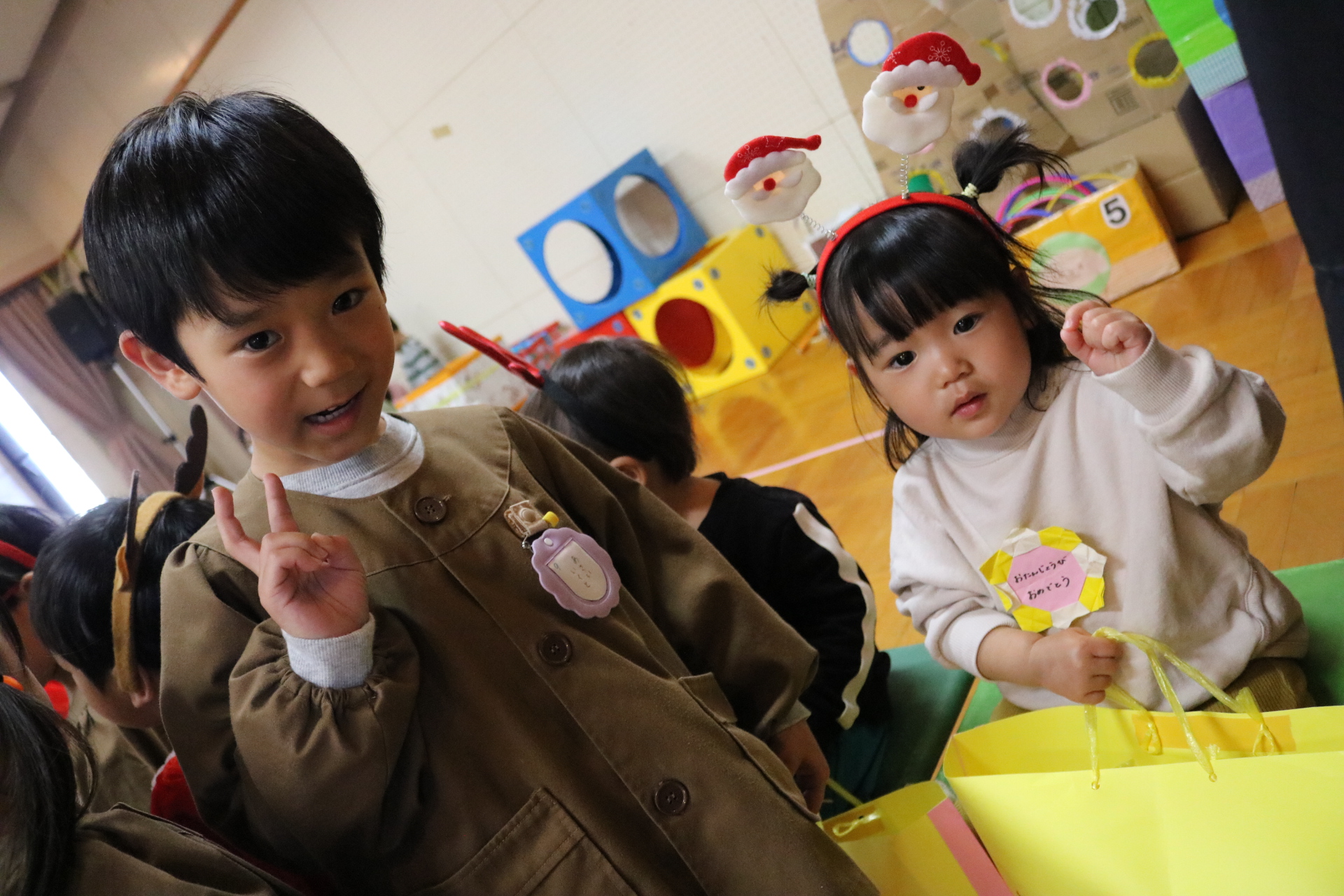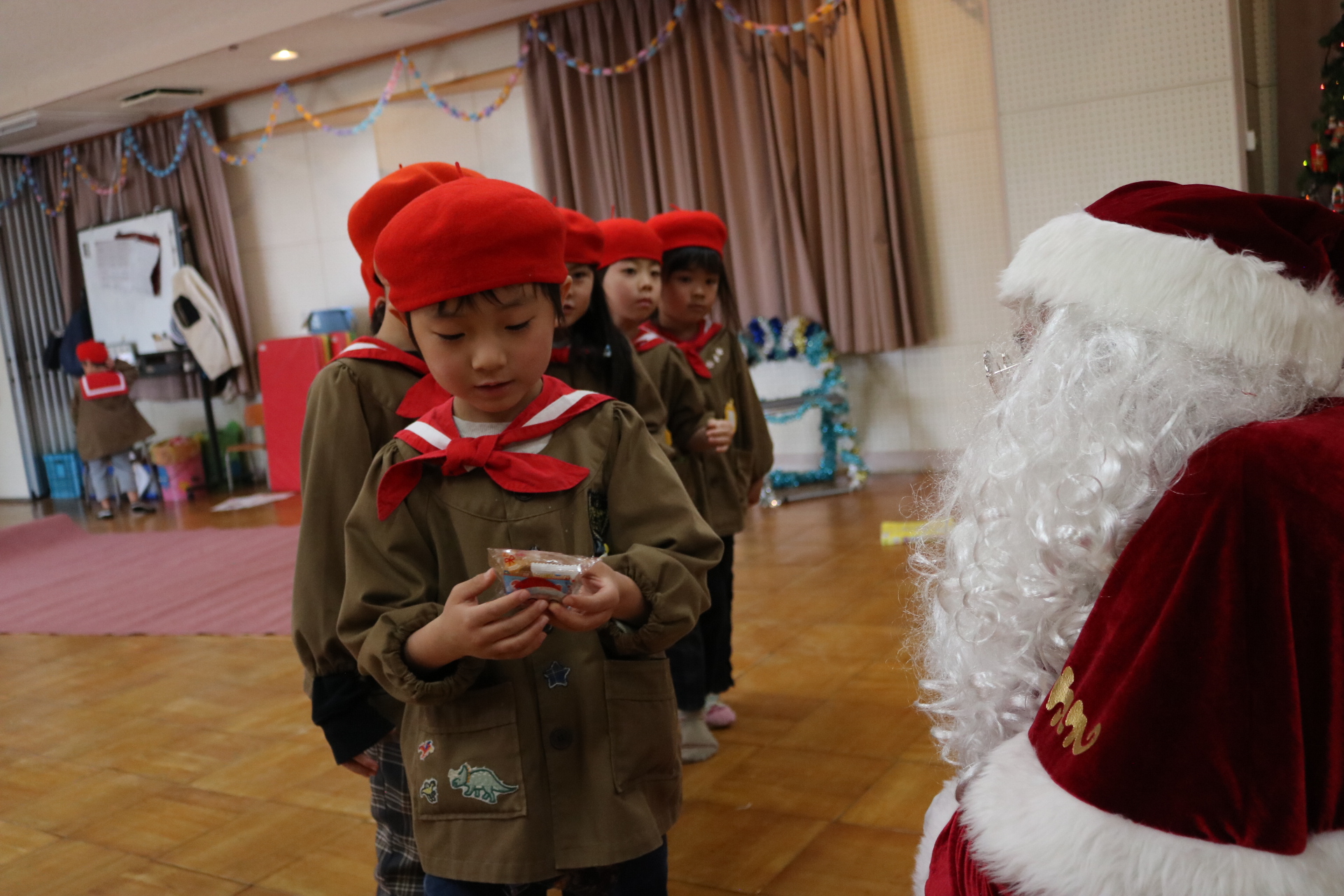 可愛い衣装に可愛い踊り🎵サンタさんからプレゼントももらえて喜ぶ子どもたちでした😊