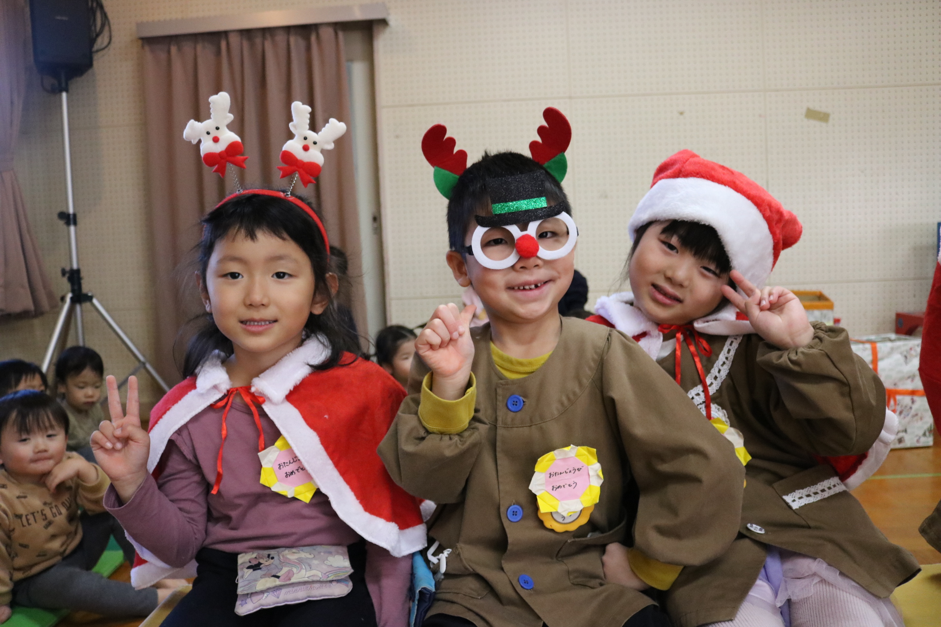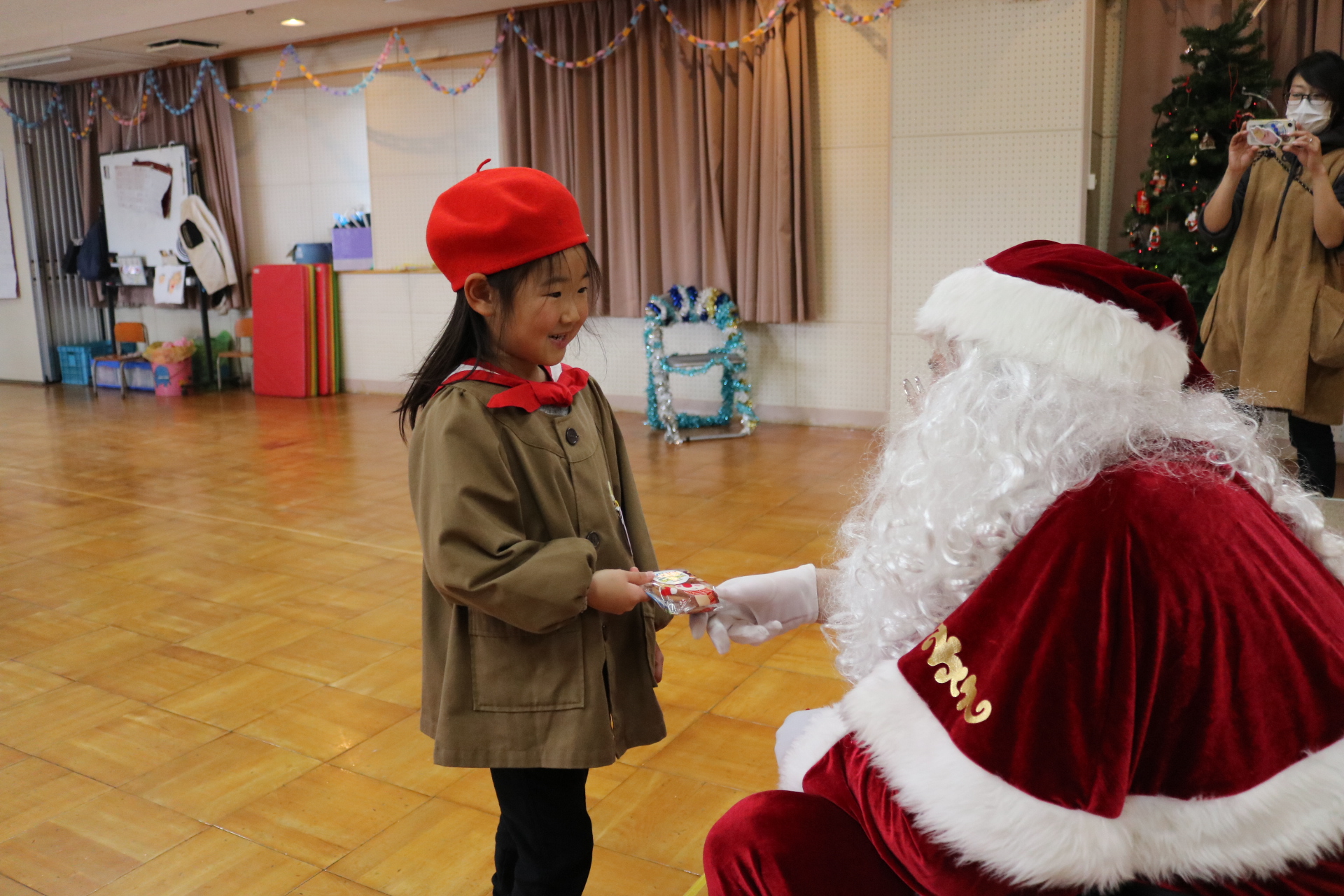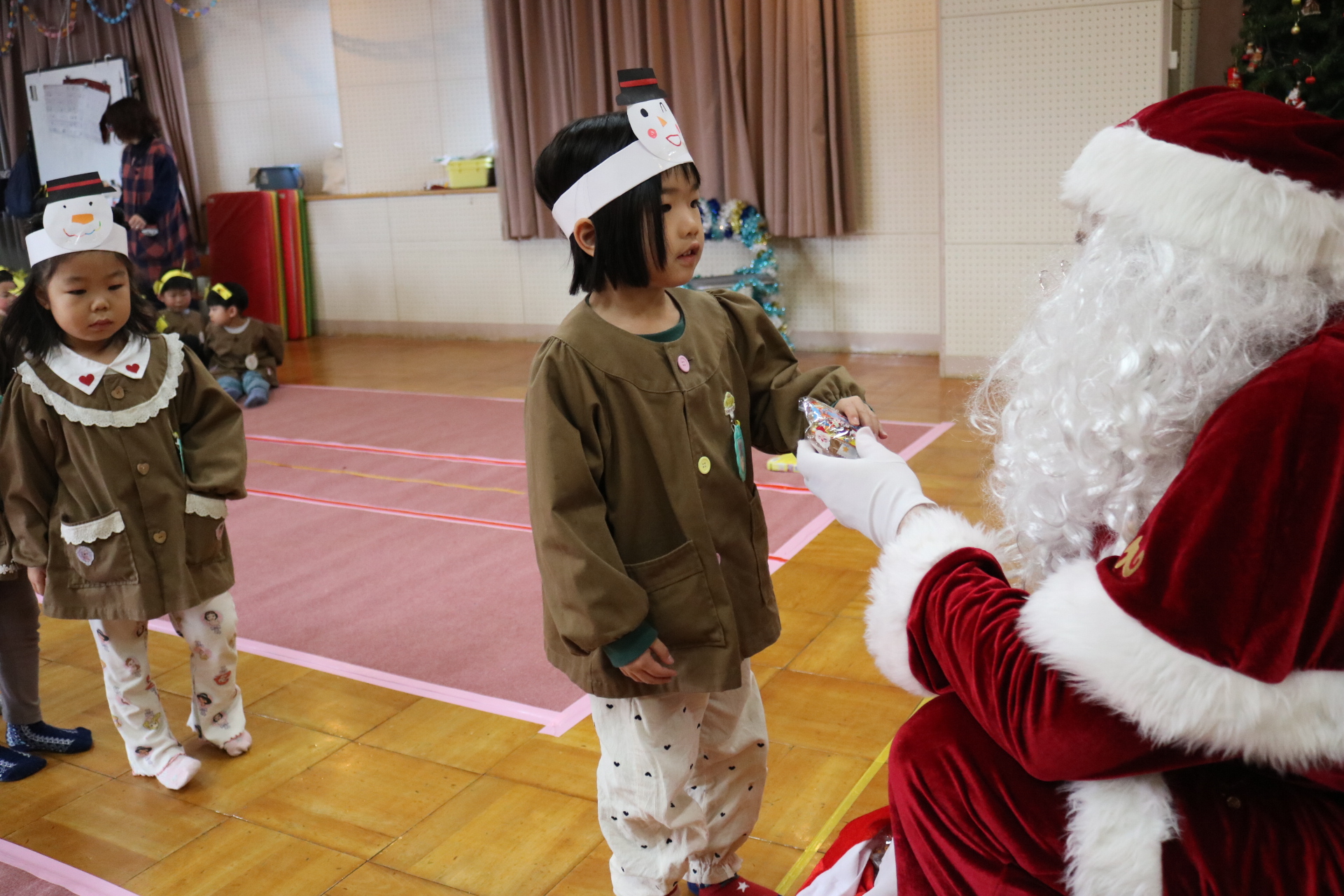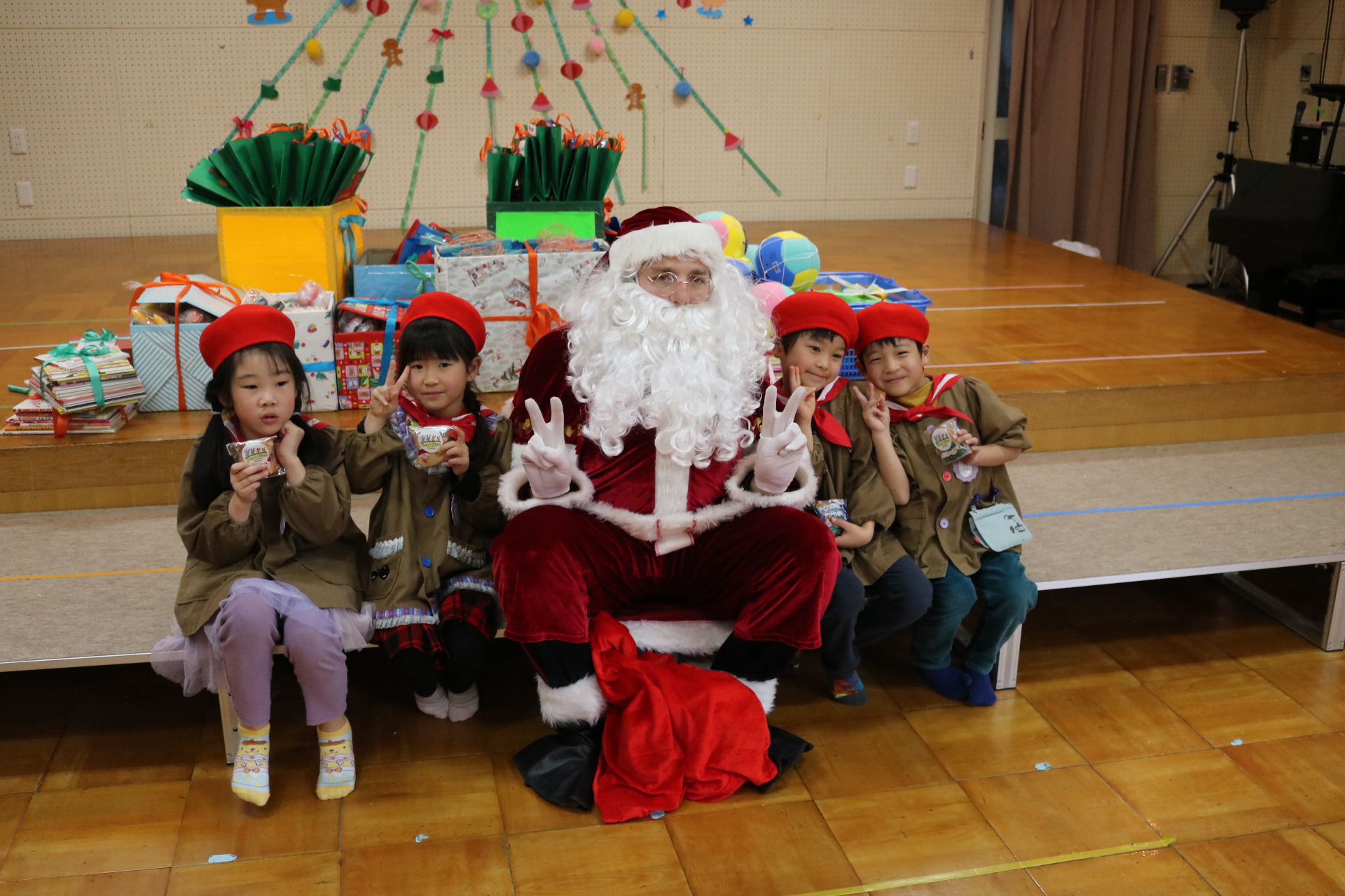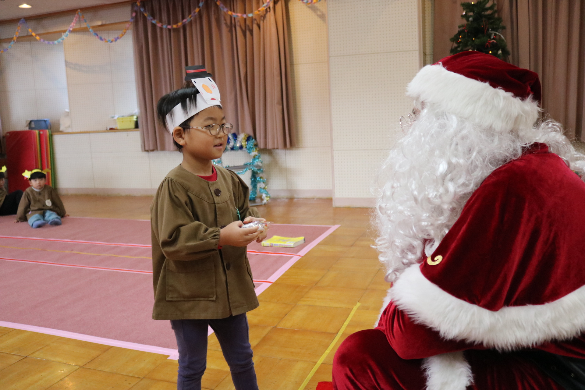 可愛い衣装に可愛い踊り🎵サンタさんからプレゼントももらえて喜ぶ子どもたちでした😊