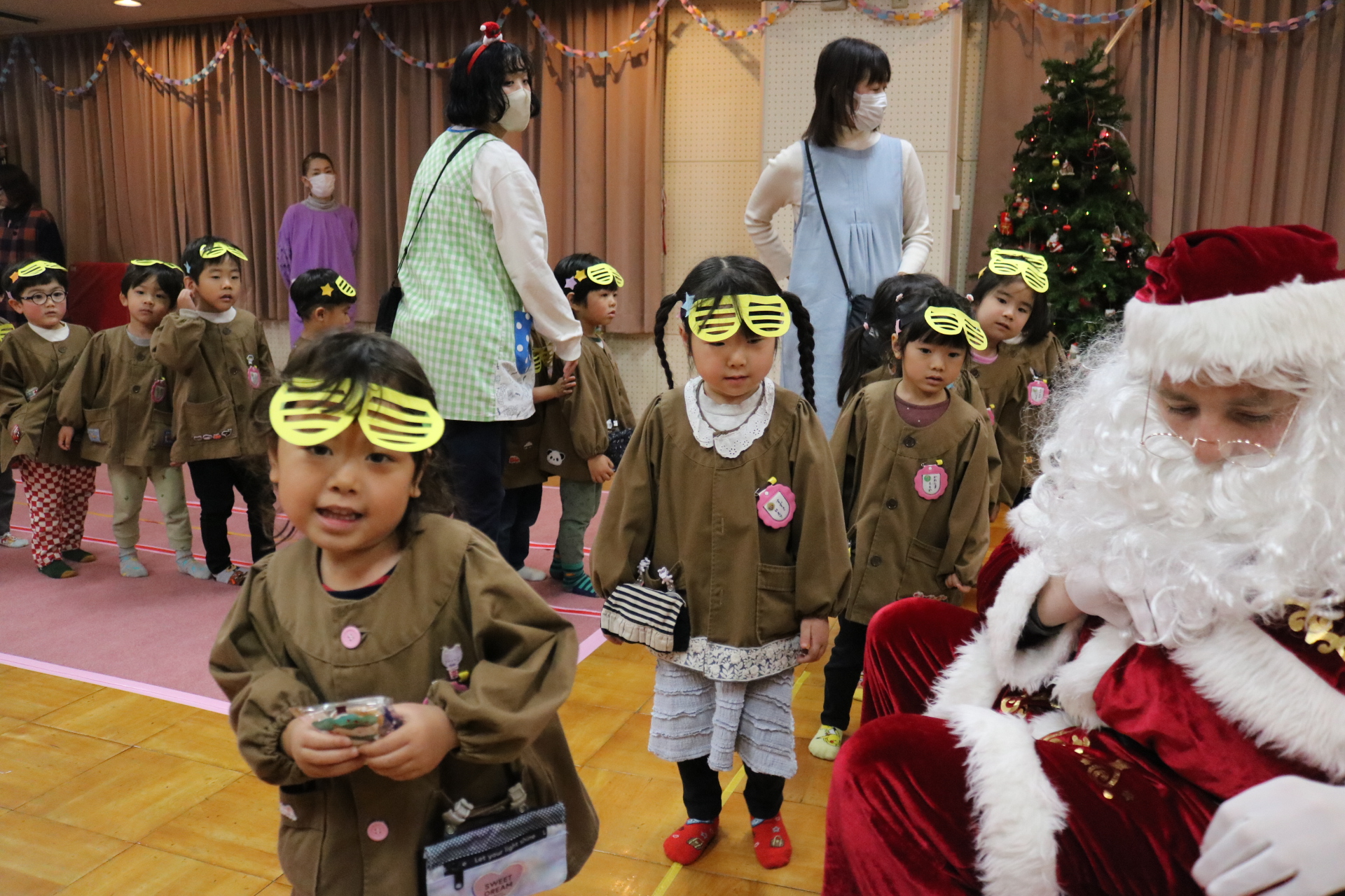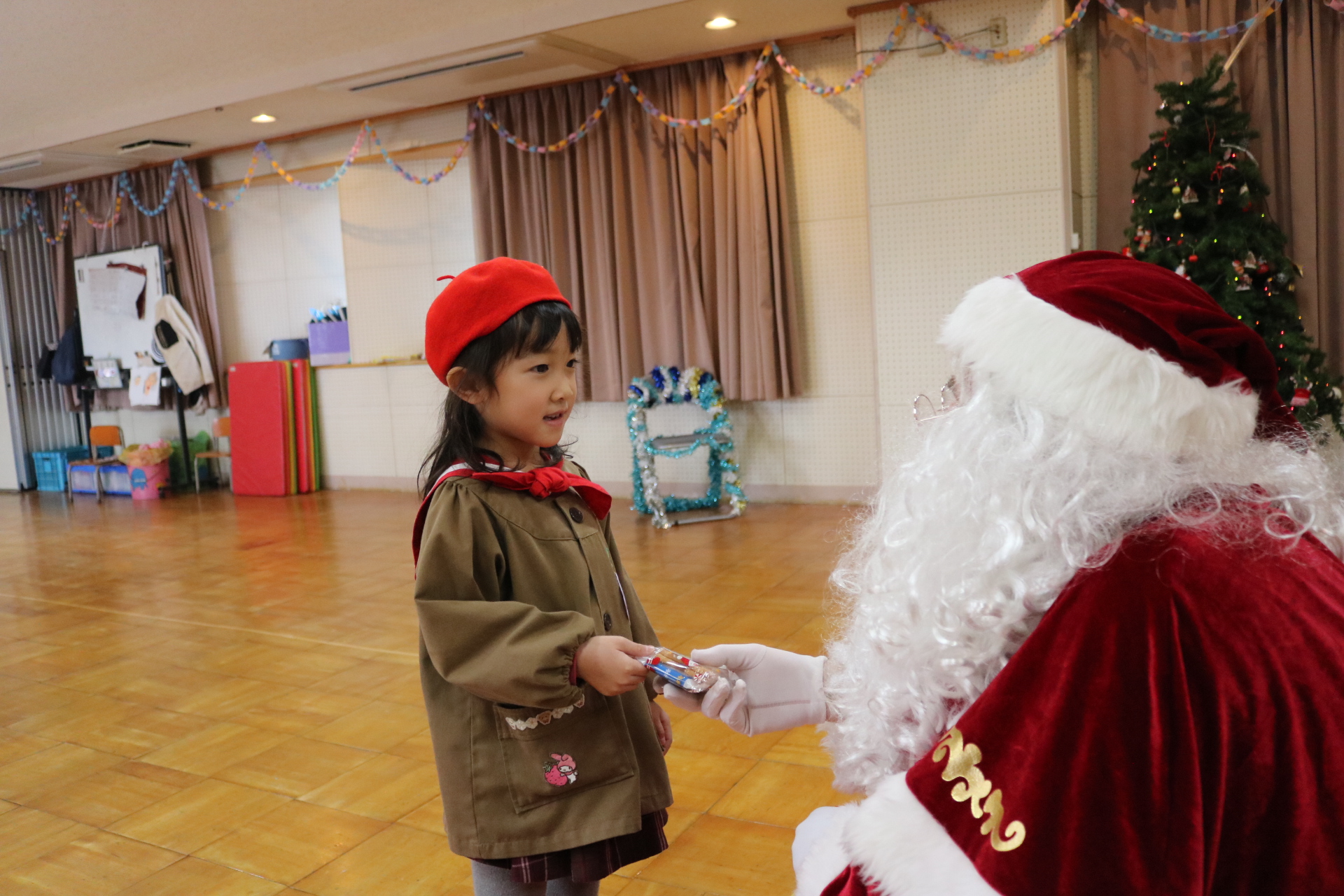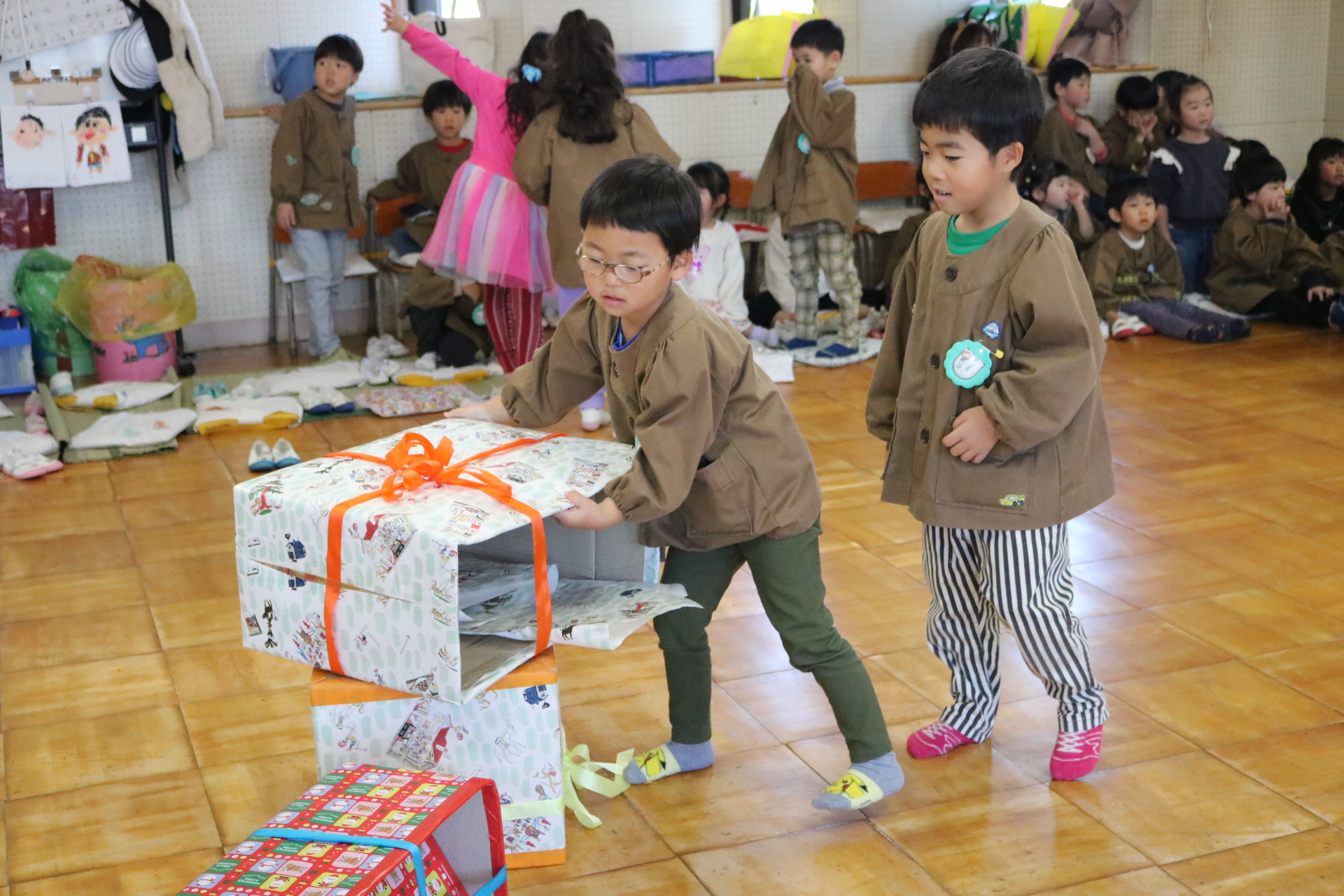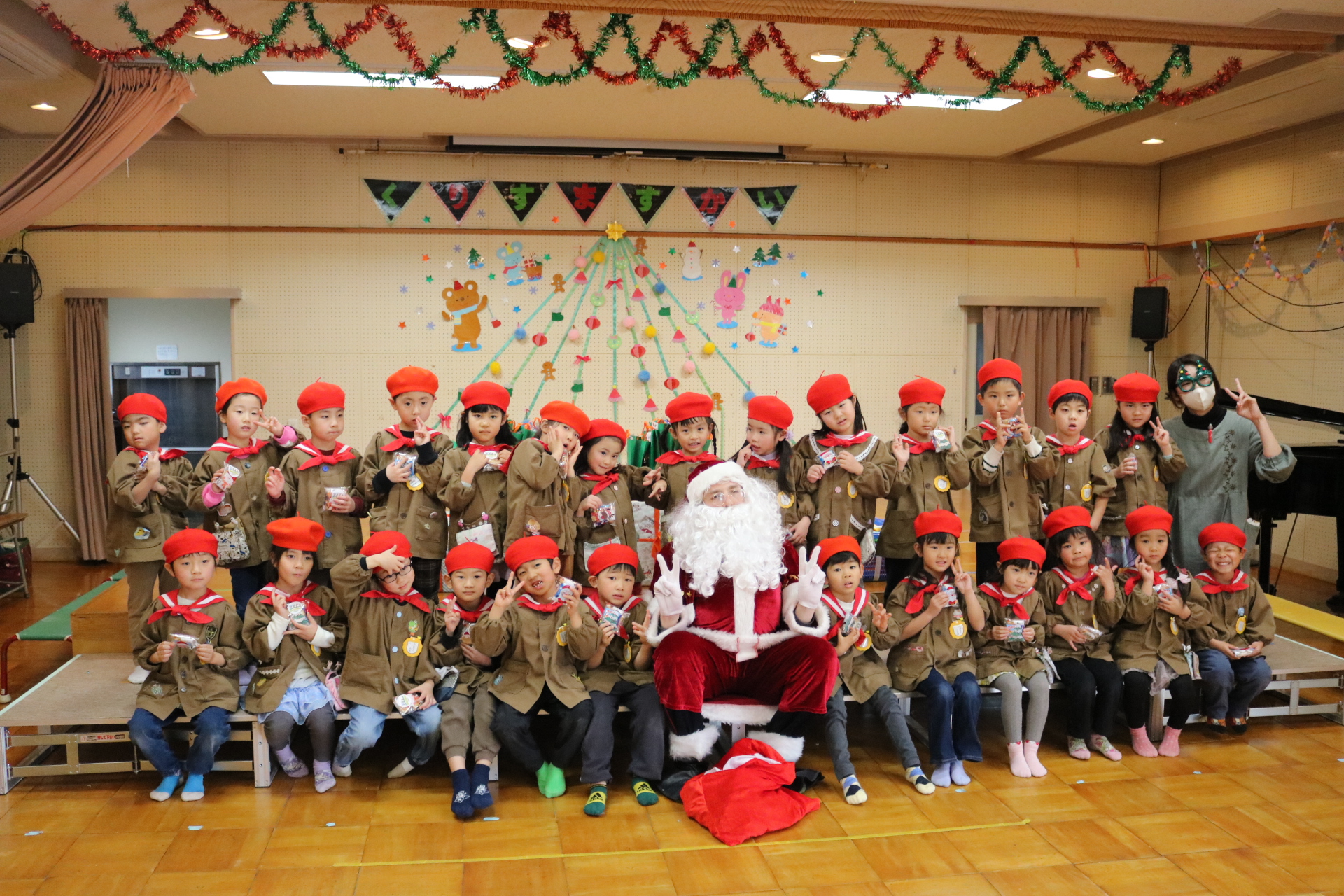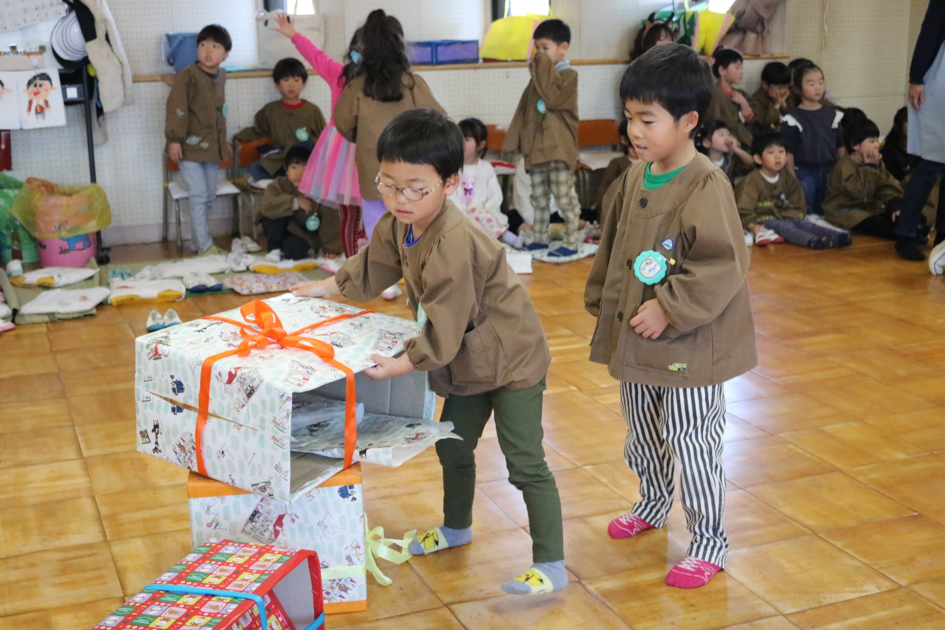 可愛い衣装に可愛い踊り🎵サンタさんからプレゼントももらえて喜ぶ子どもたちでした😊