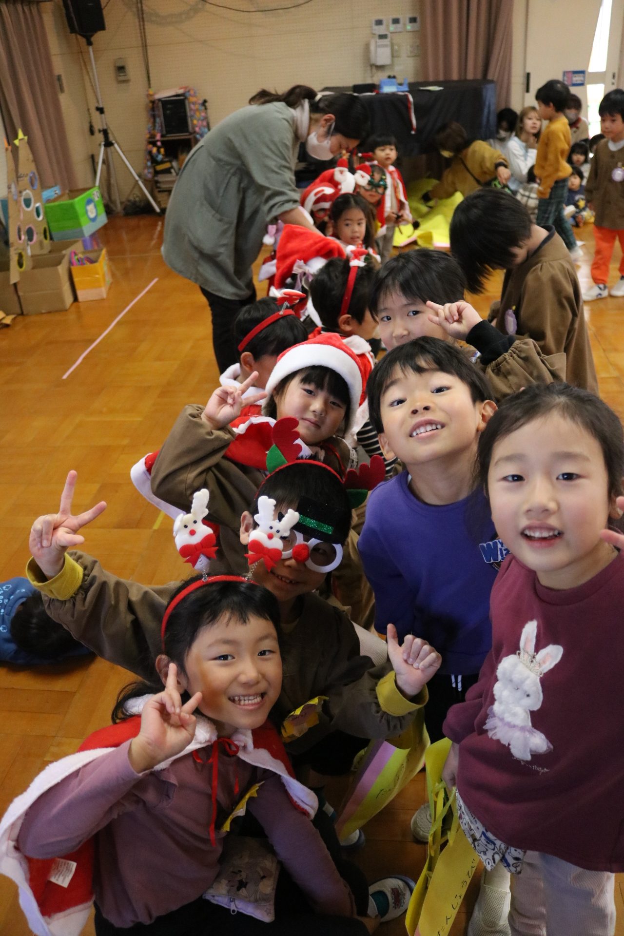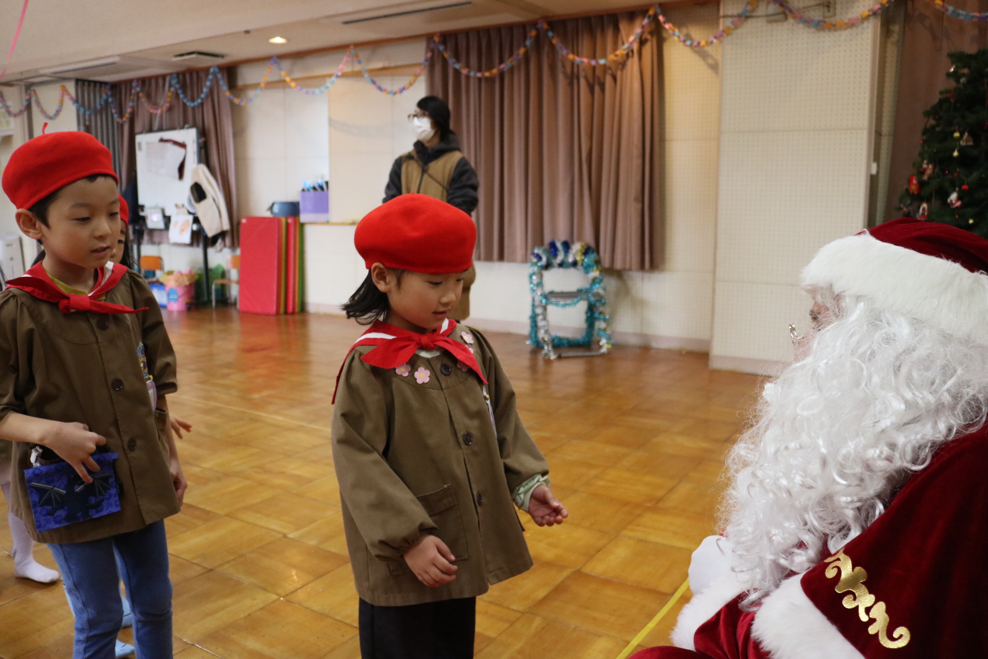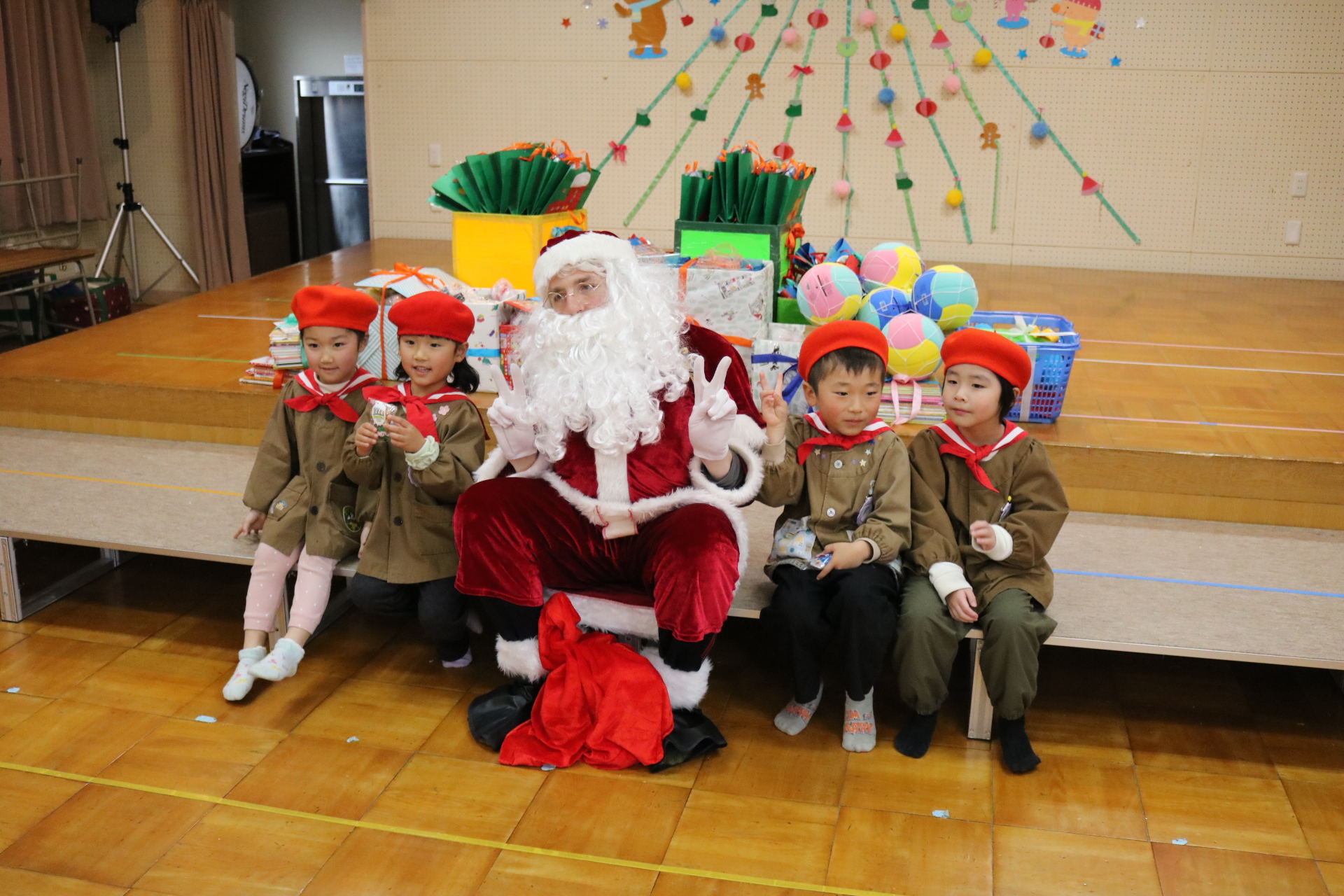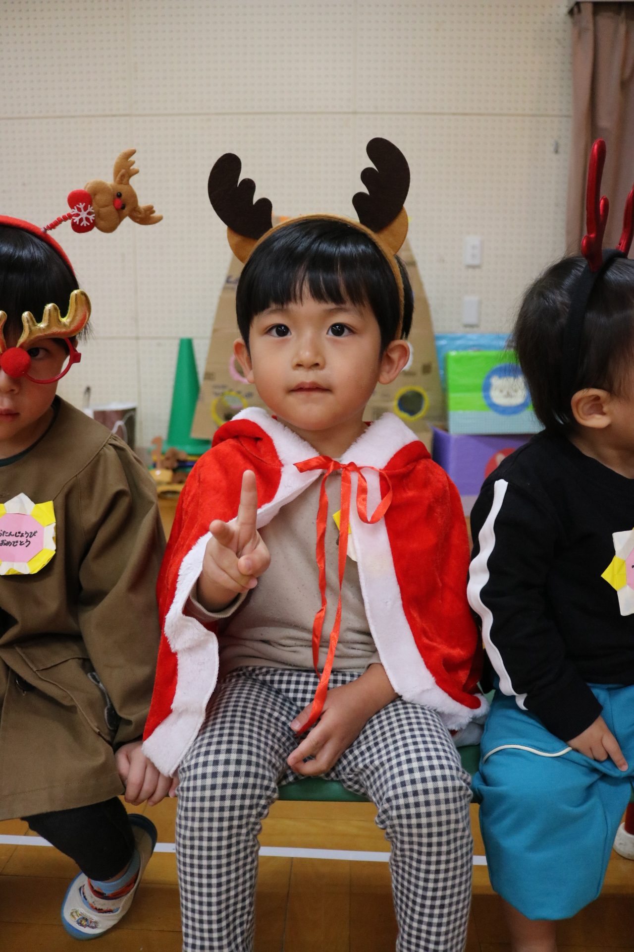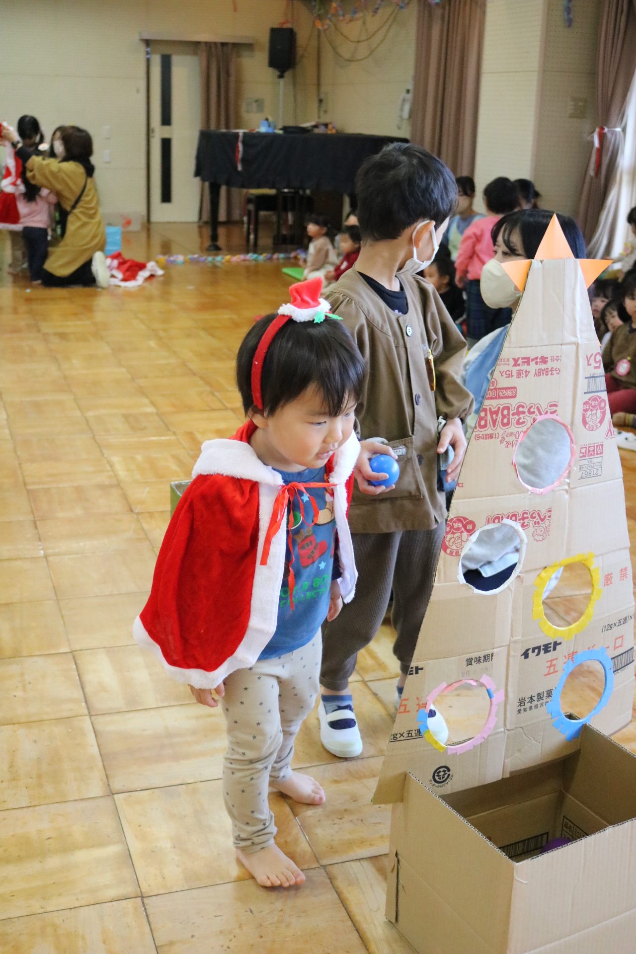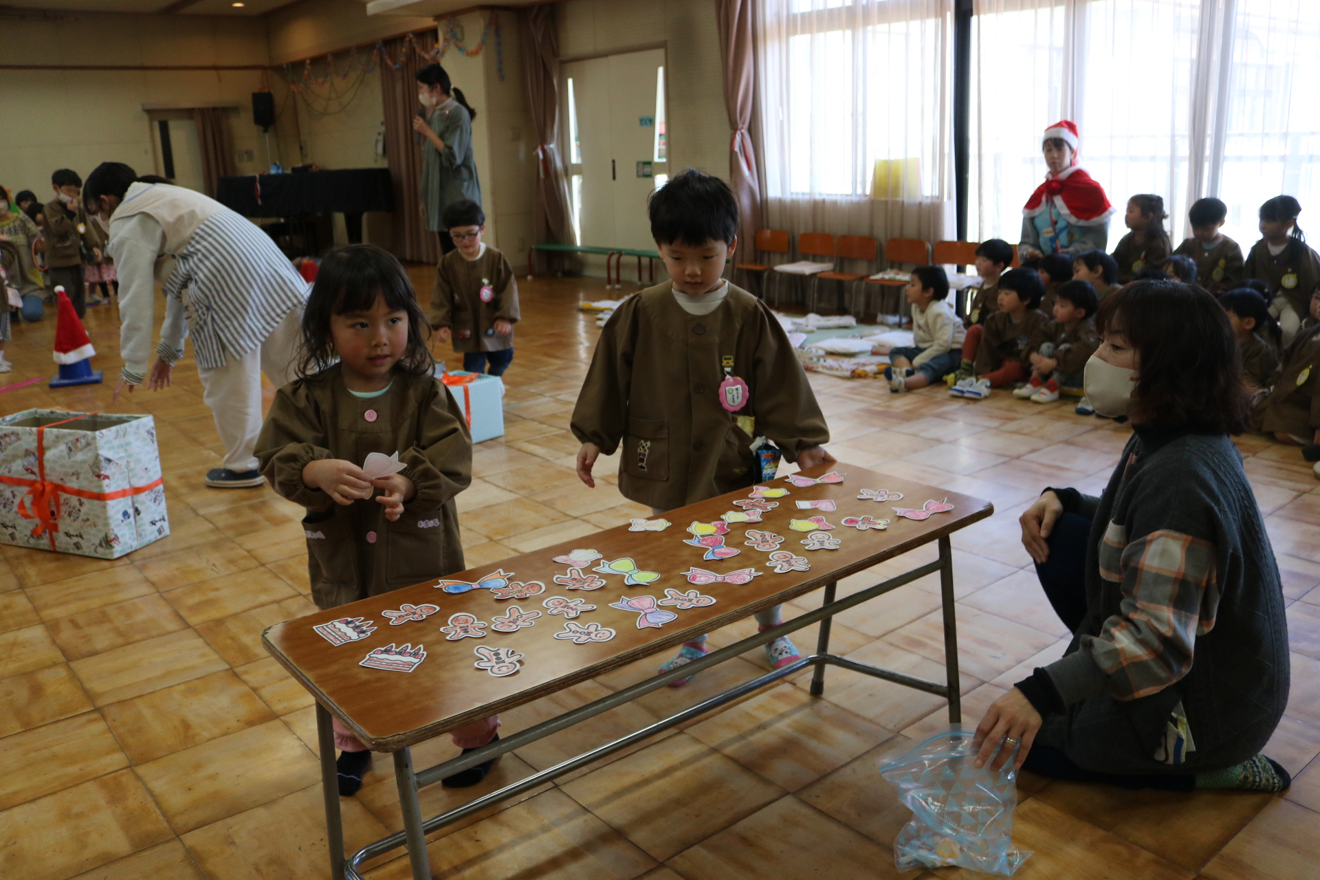 可愛い衣装に可愛い踊り🎵サンタさんからプレゼントももらえて喜ぶ子どもたちでした😊