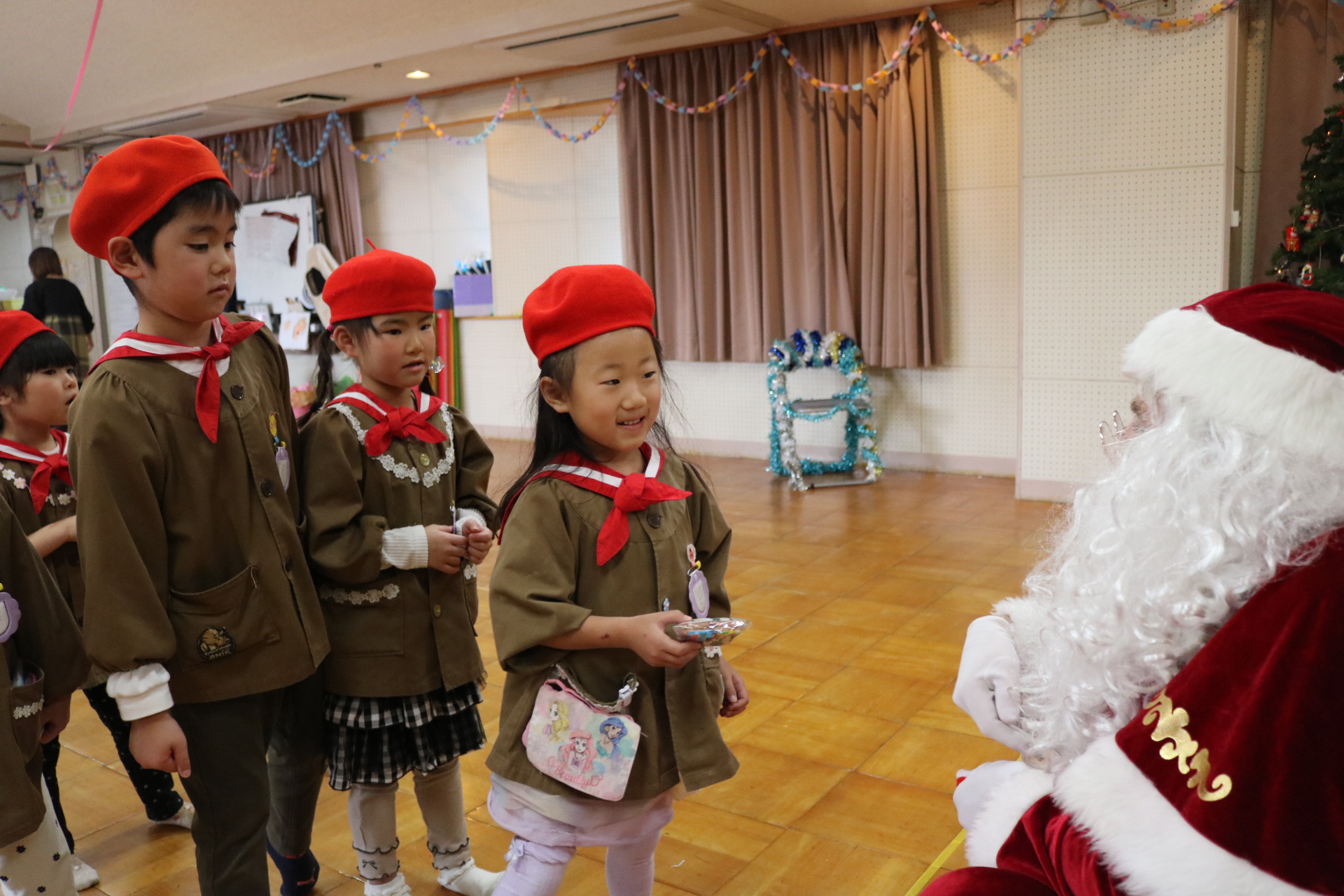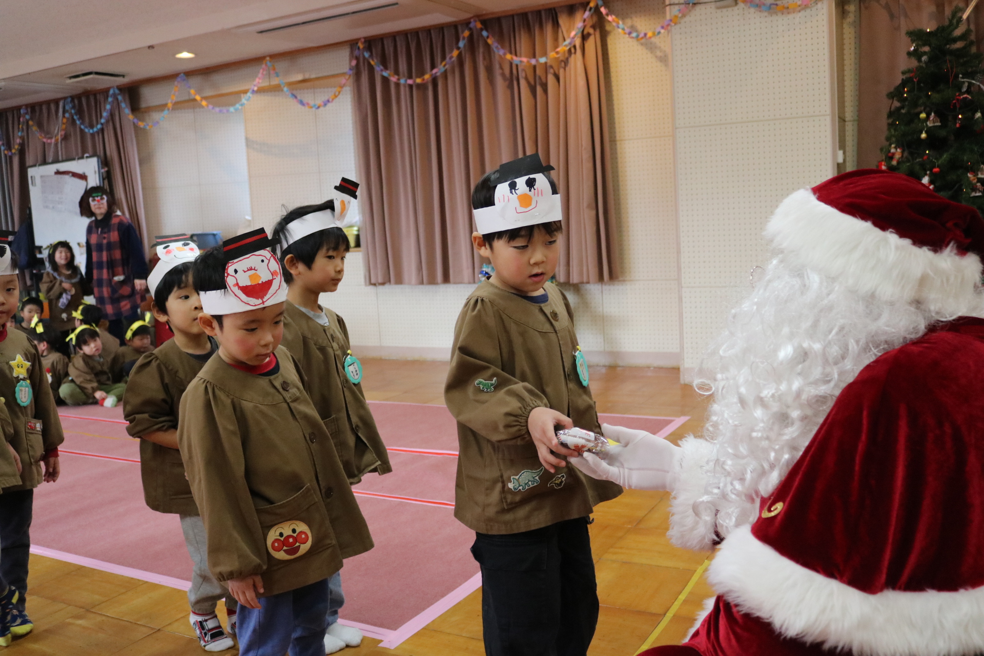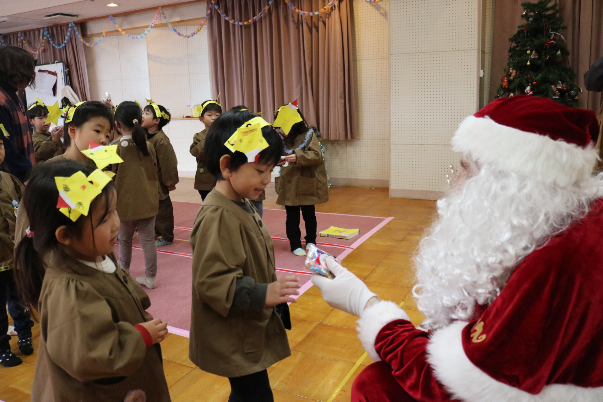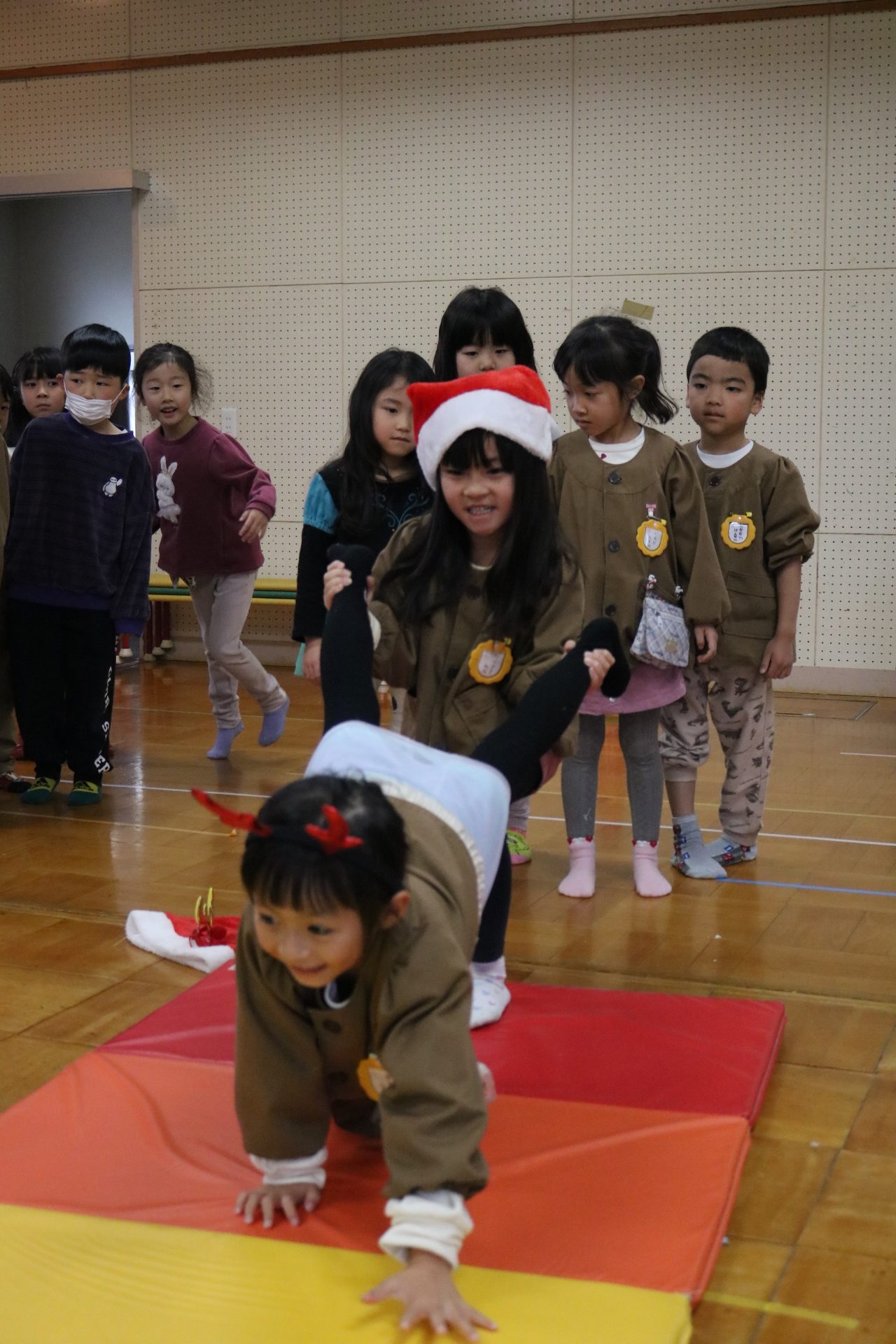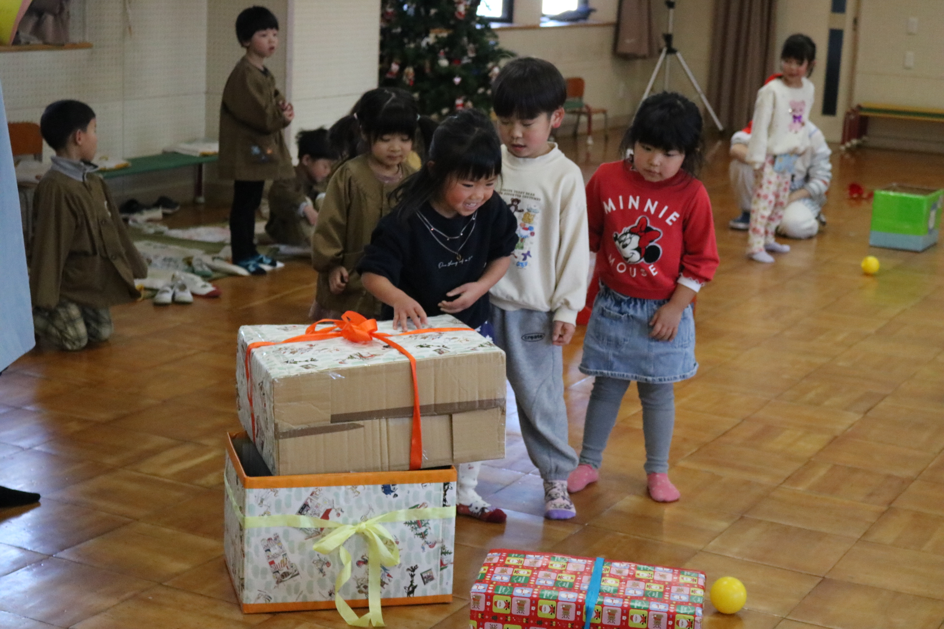可愛い衣装に可愛い踊り🎵サンタさんからプレゼントももらえて喜ぶ子どもたちでした😊