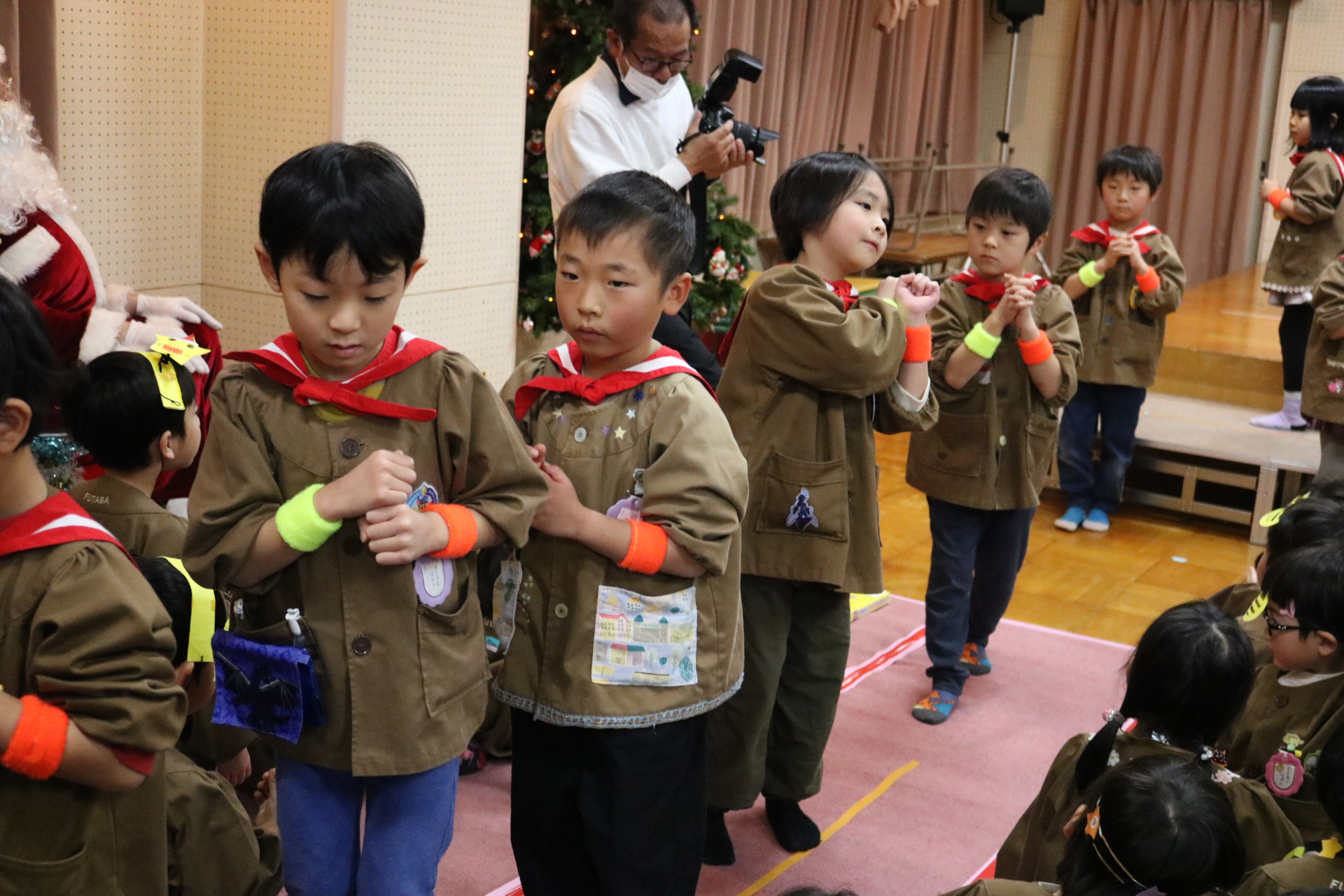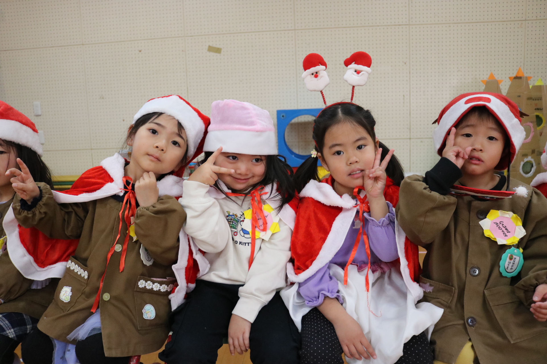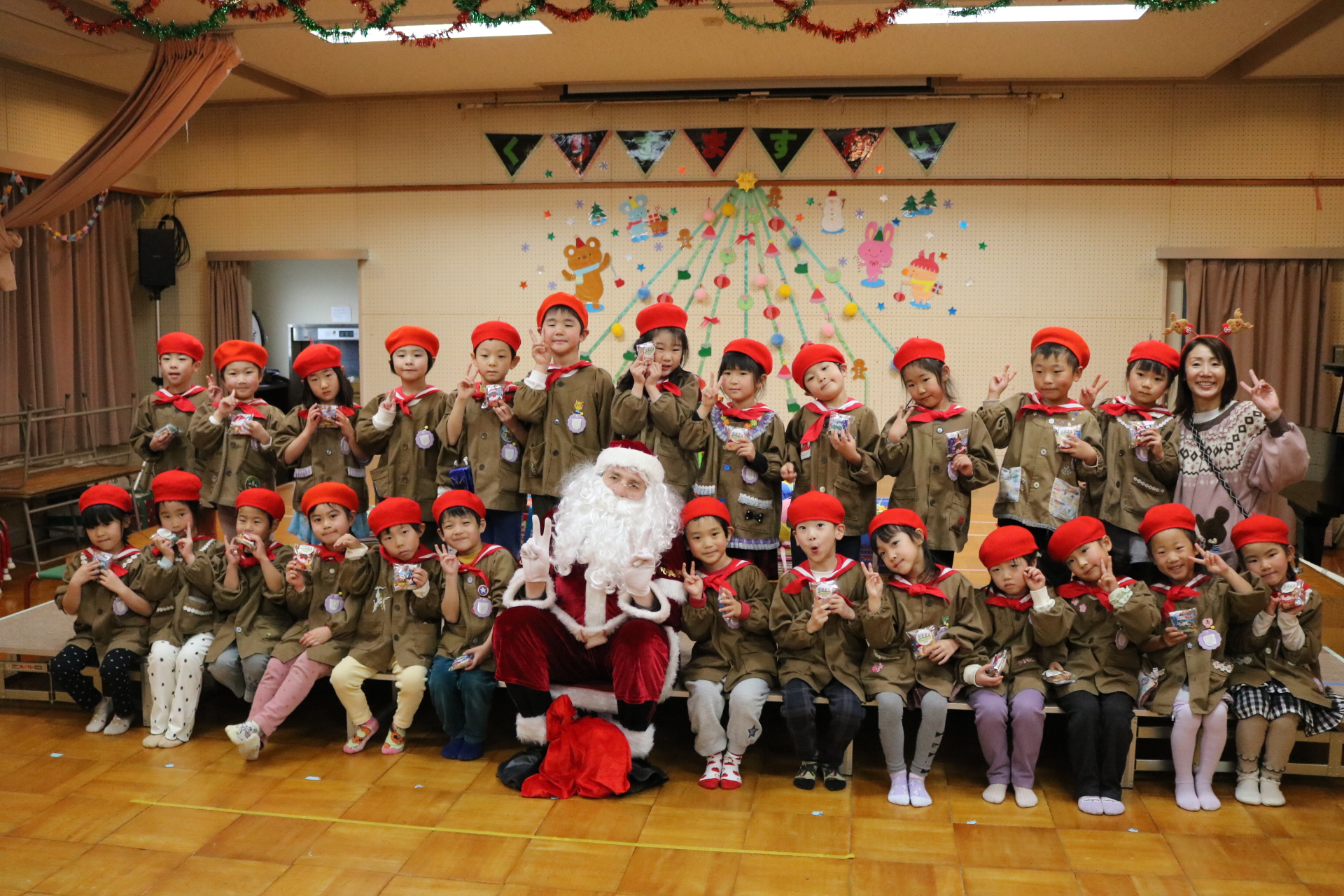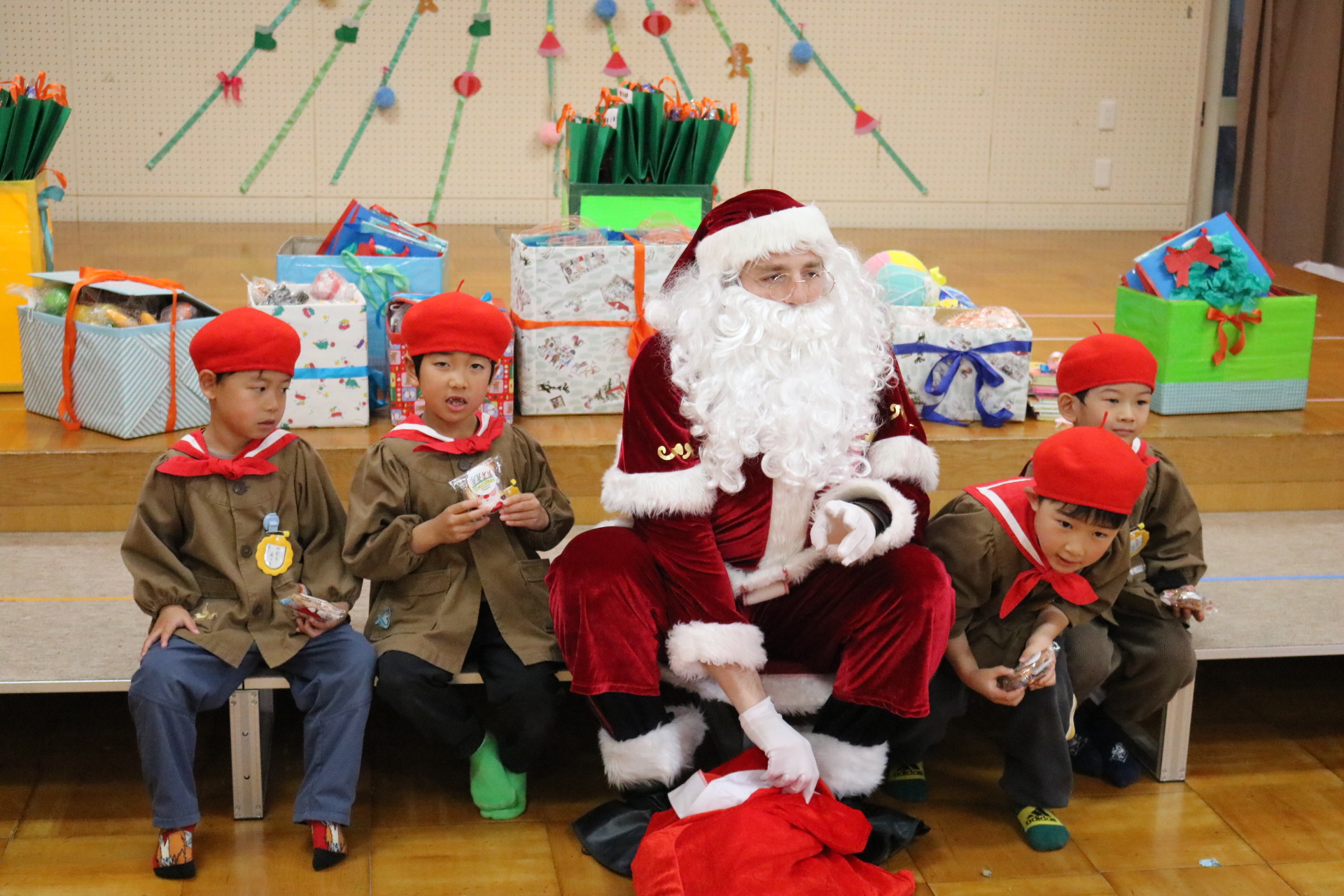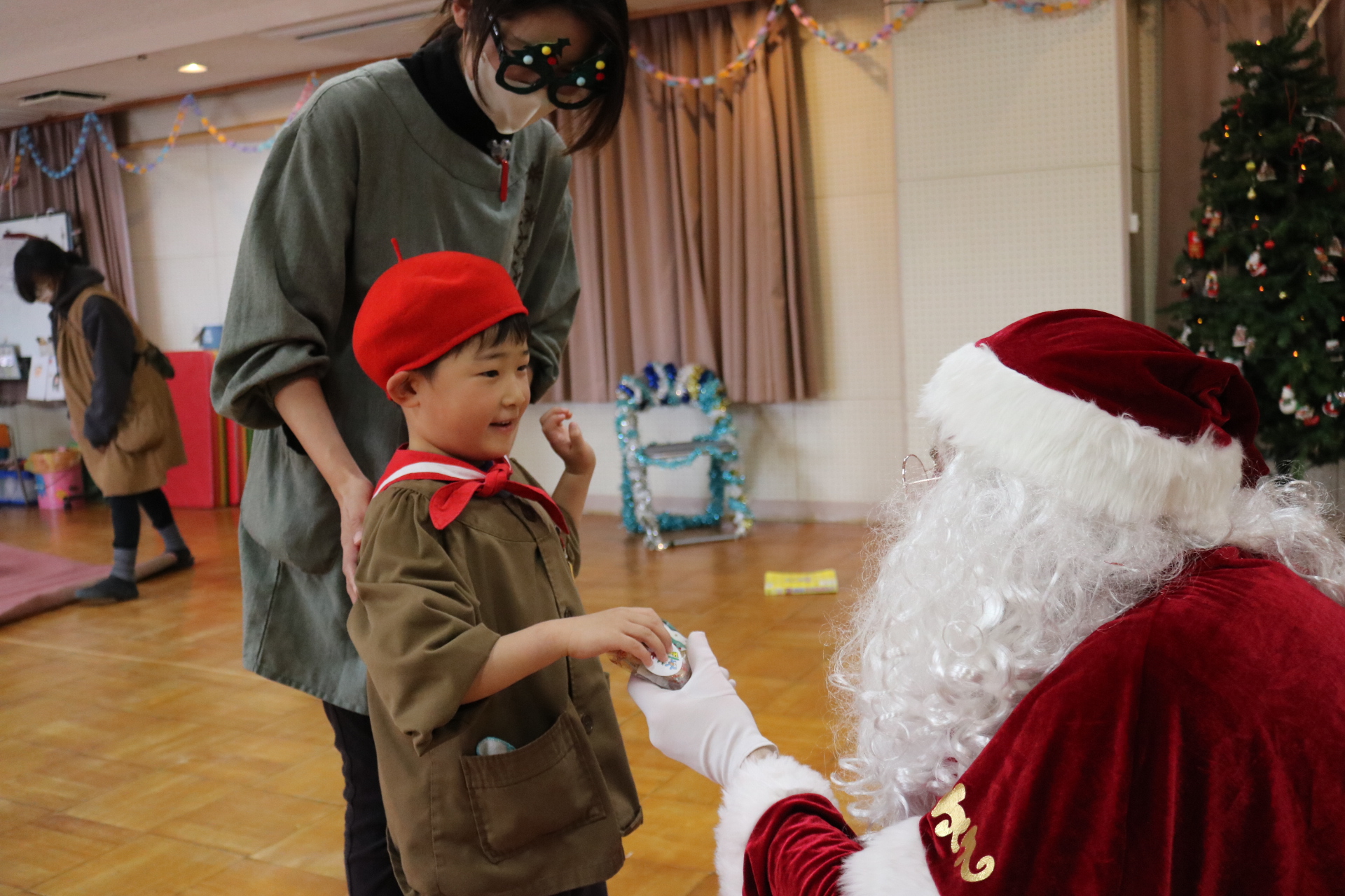 可愛い衣装に可愛い踊り🎵サンタさんからプレゼントももらえて喜ぶ子どもたちでした😊