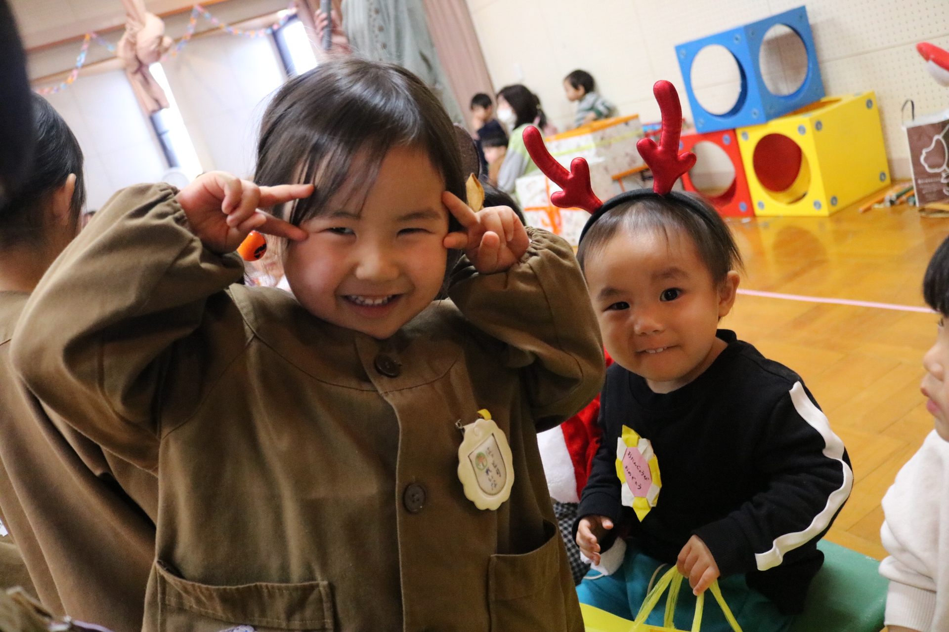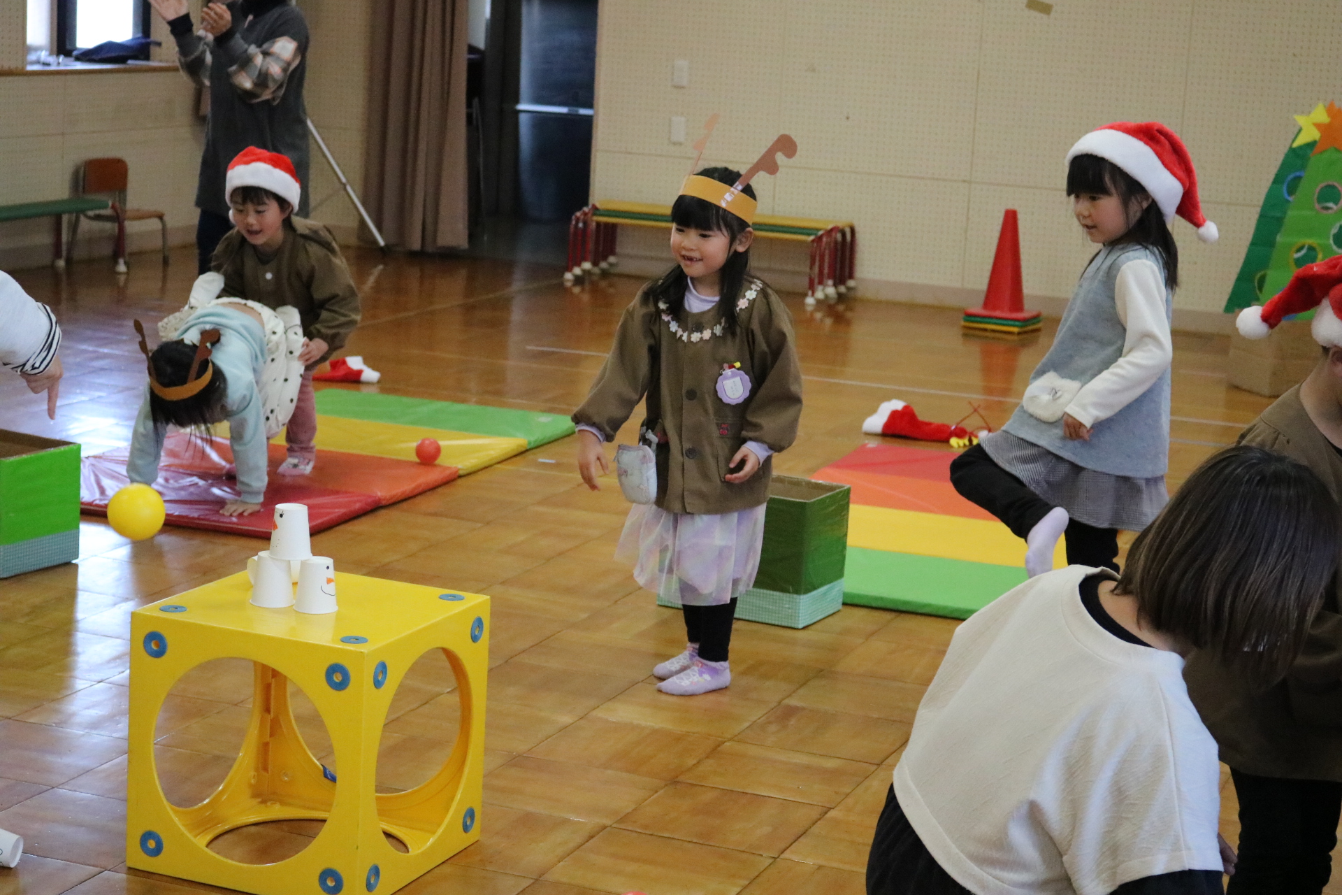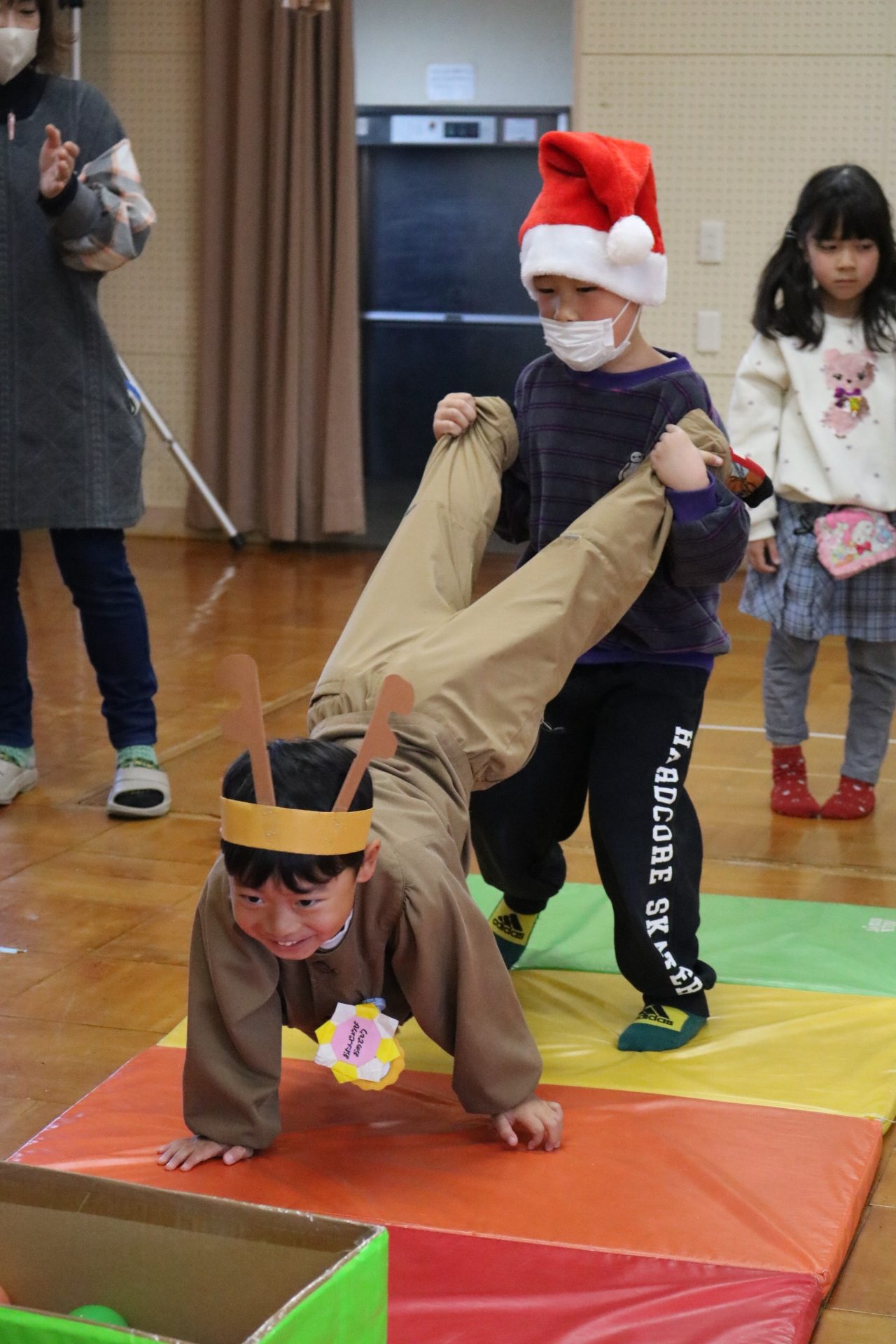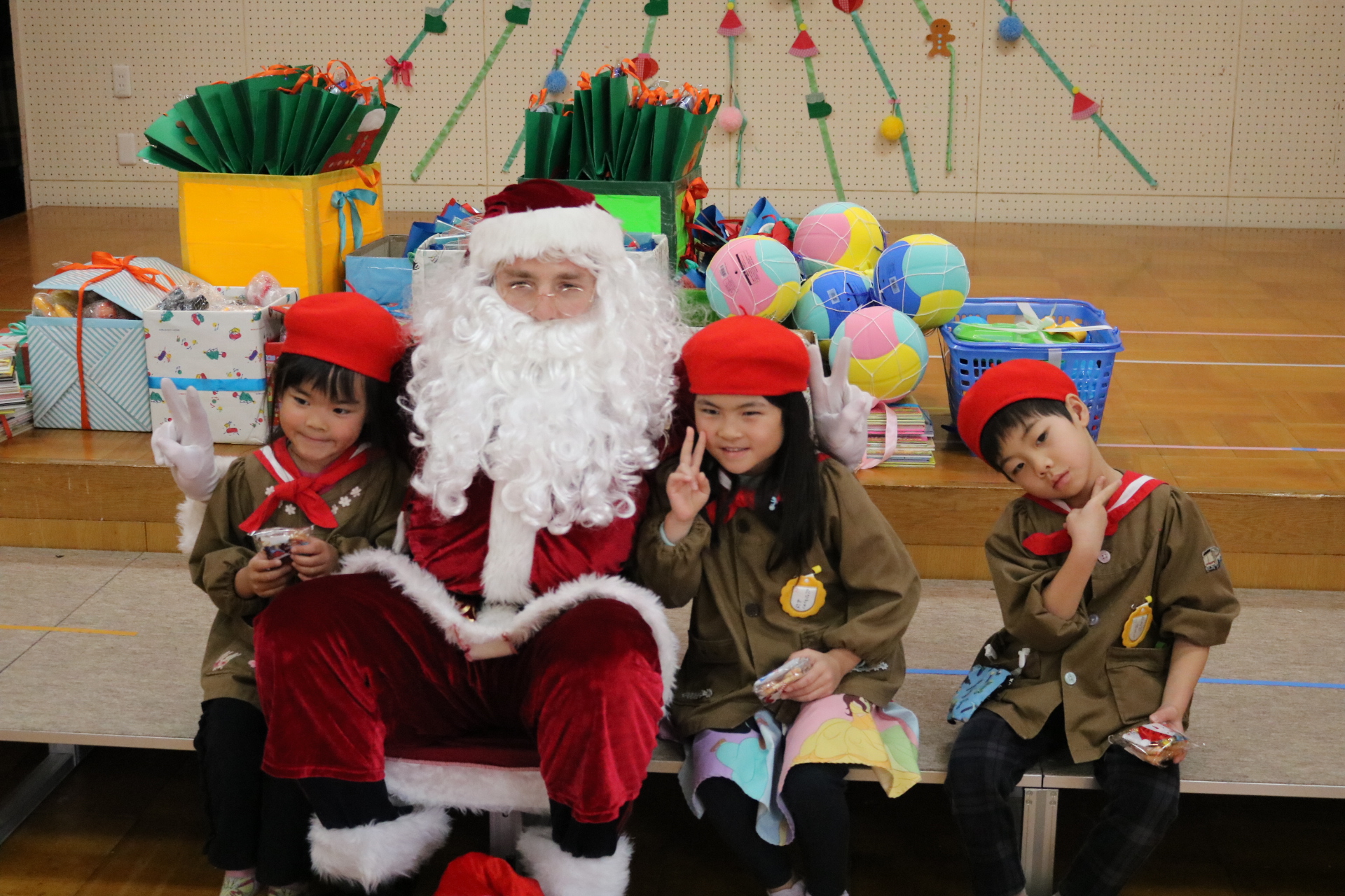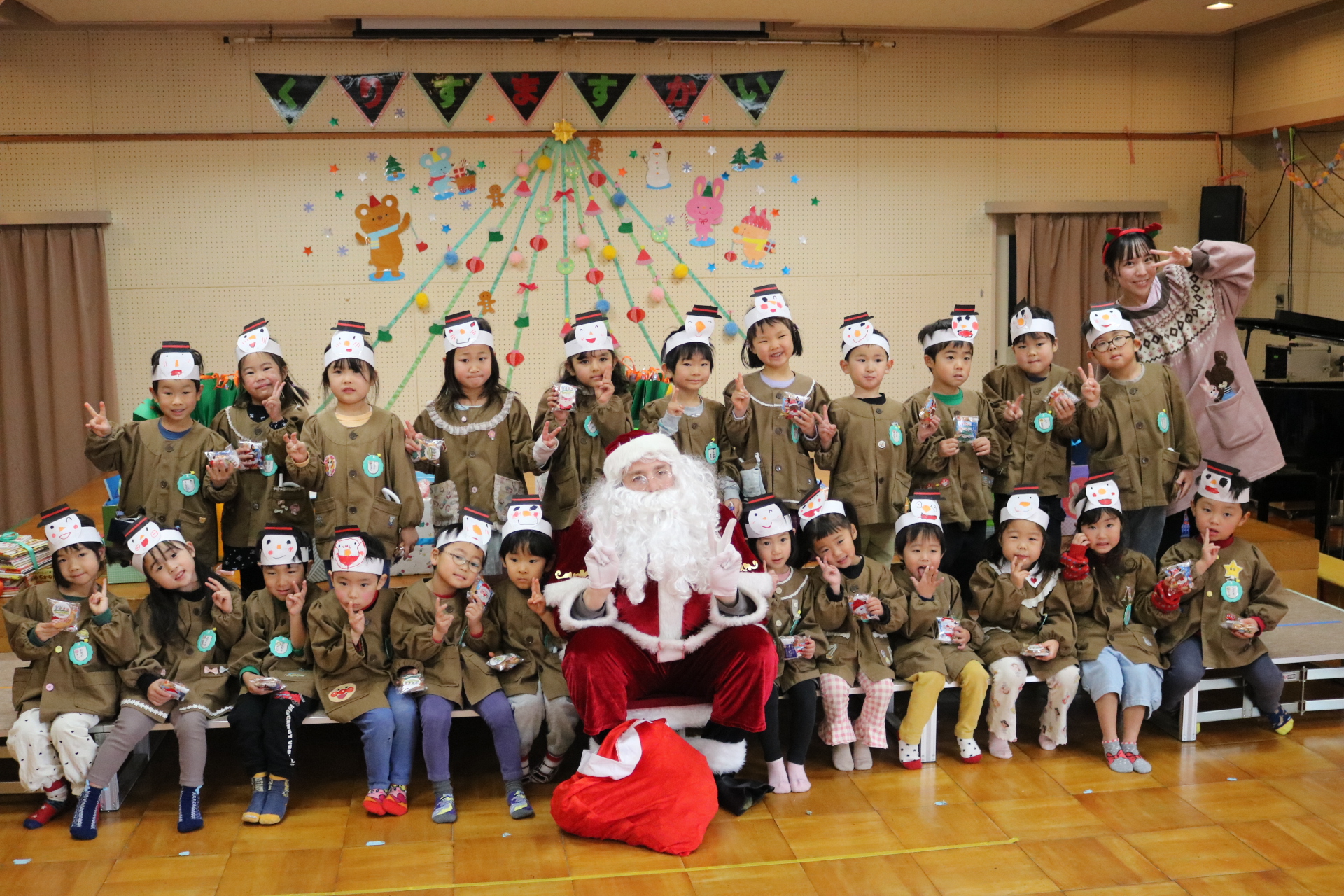 可愛い衣装に可愛い踊り🎵サンタさんからプレゼントももらえて喜ぶ子どもたちでした😊