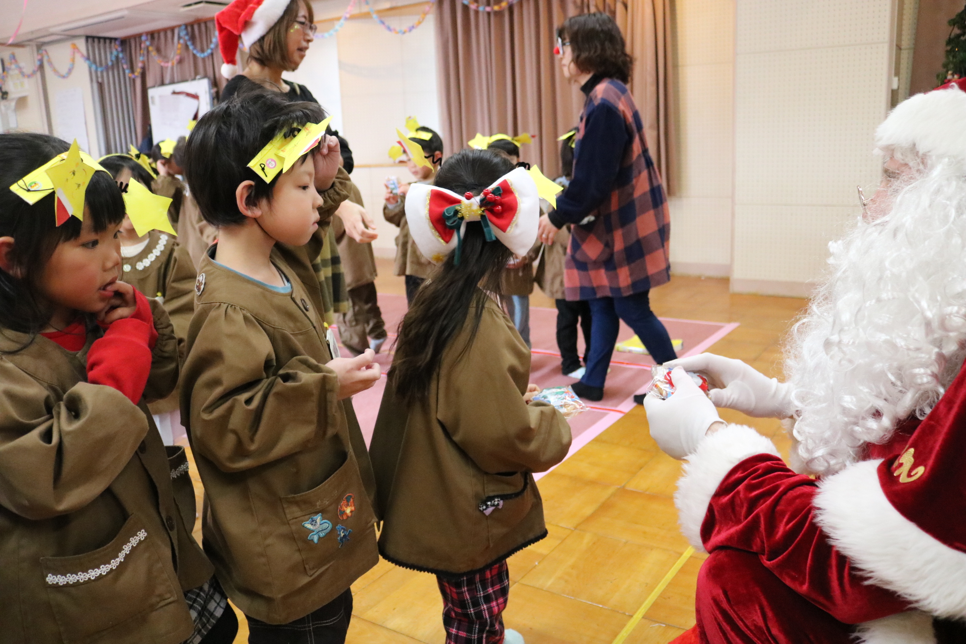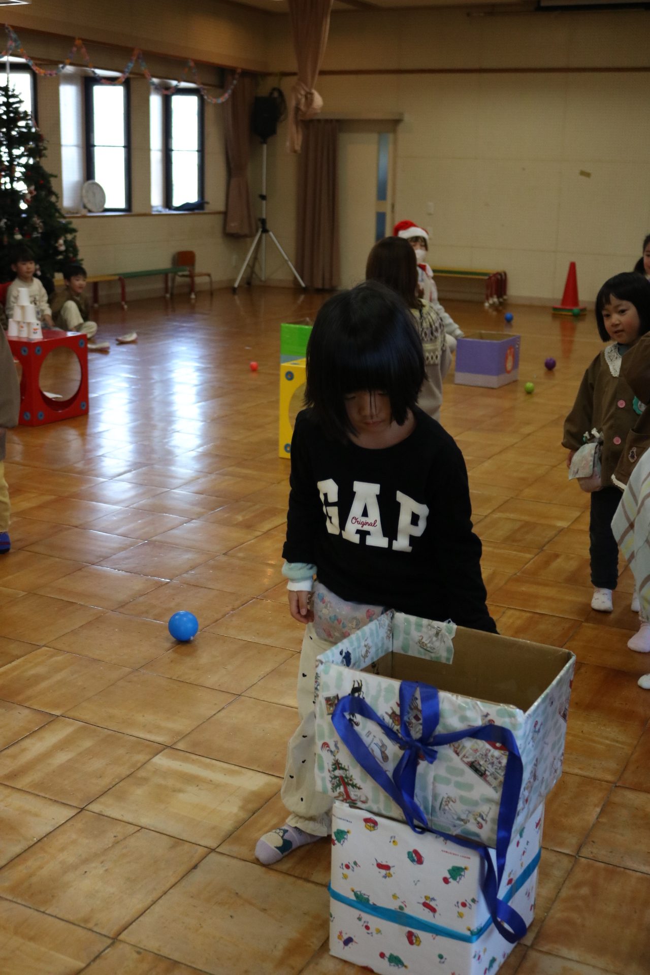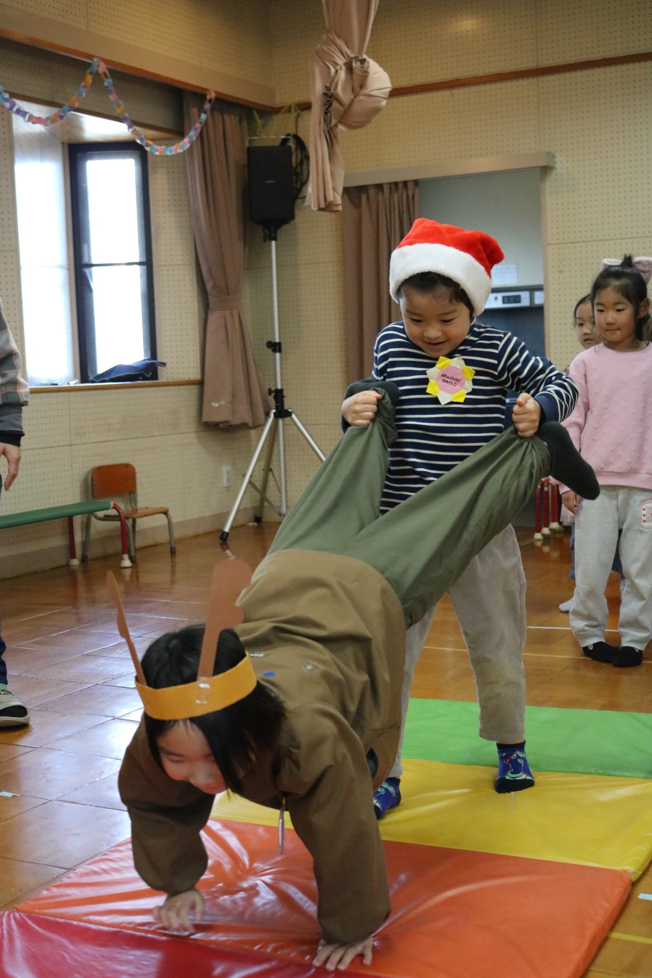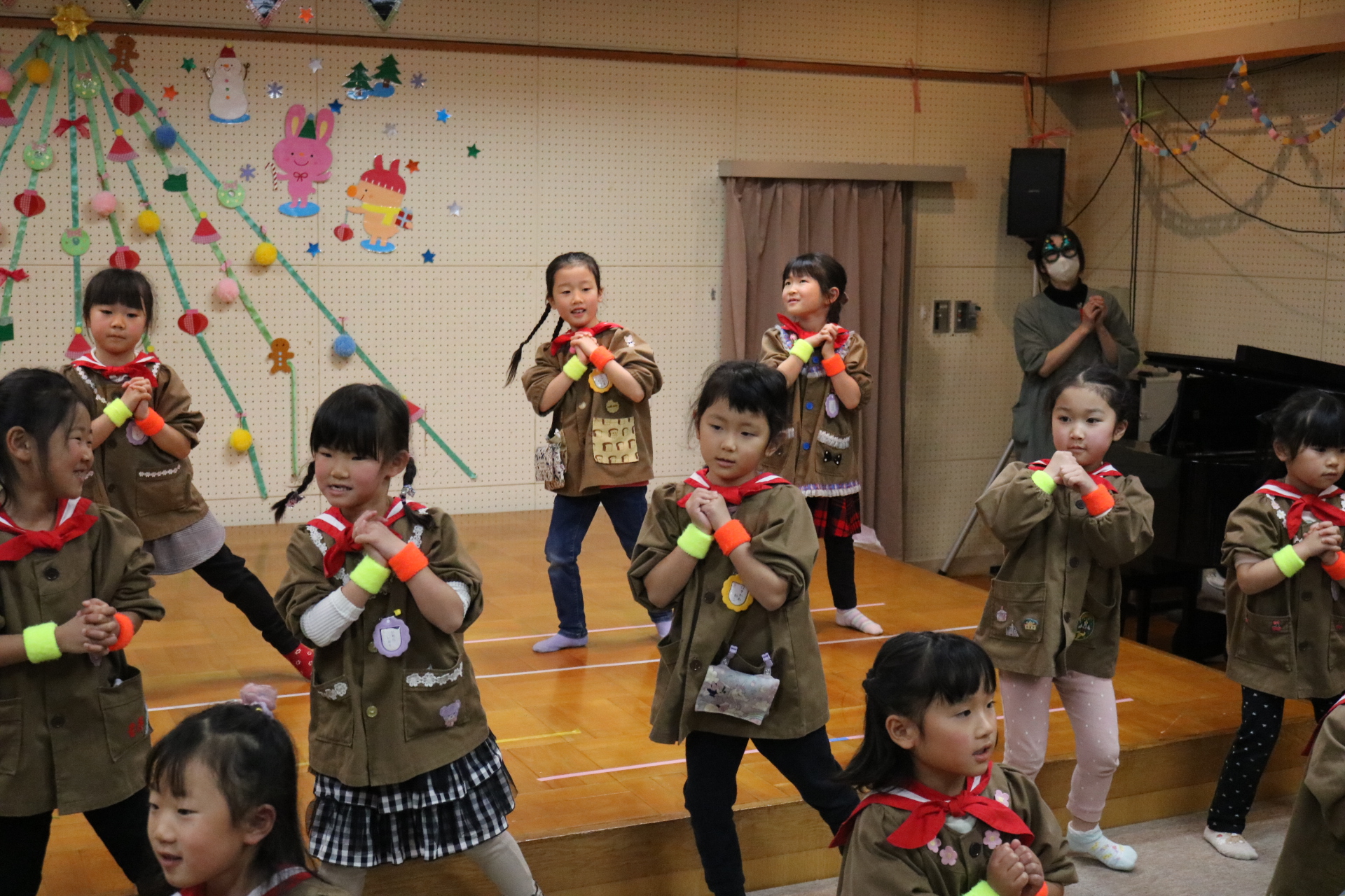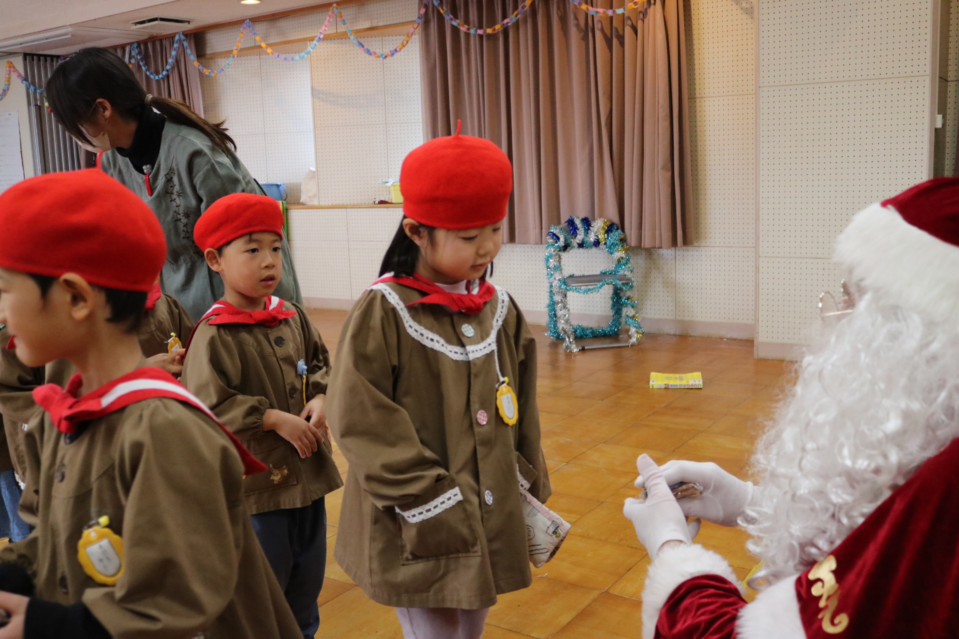 可愛い衣装に可愛い踊り🎵サンタさんからプレゼントももらえて喜ぶ子どもたちでした😊