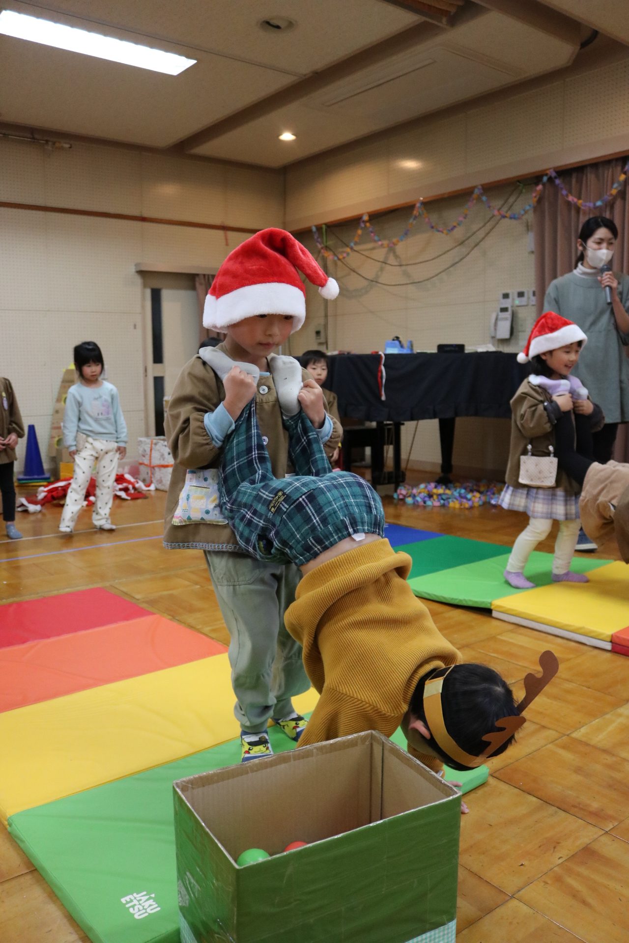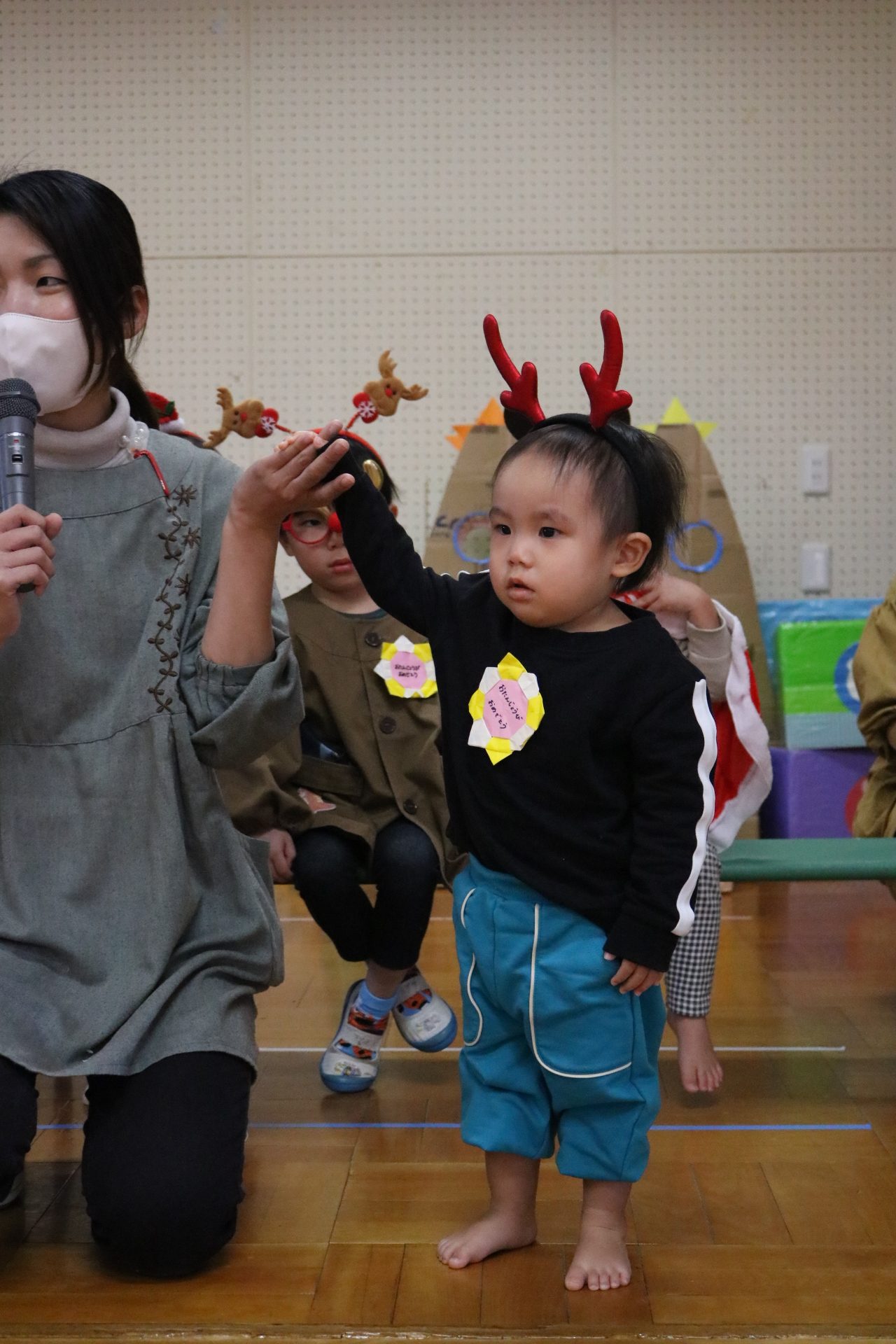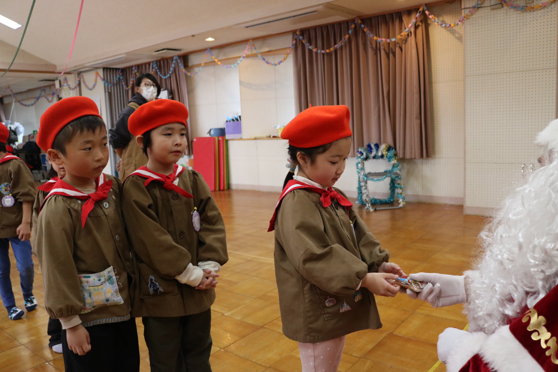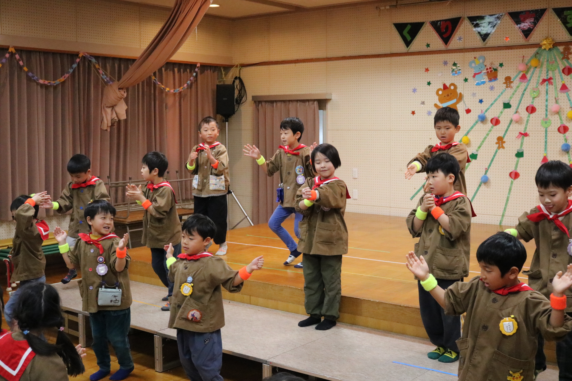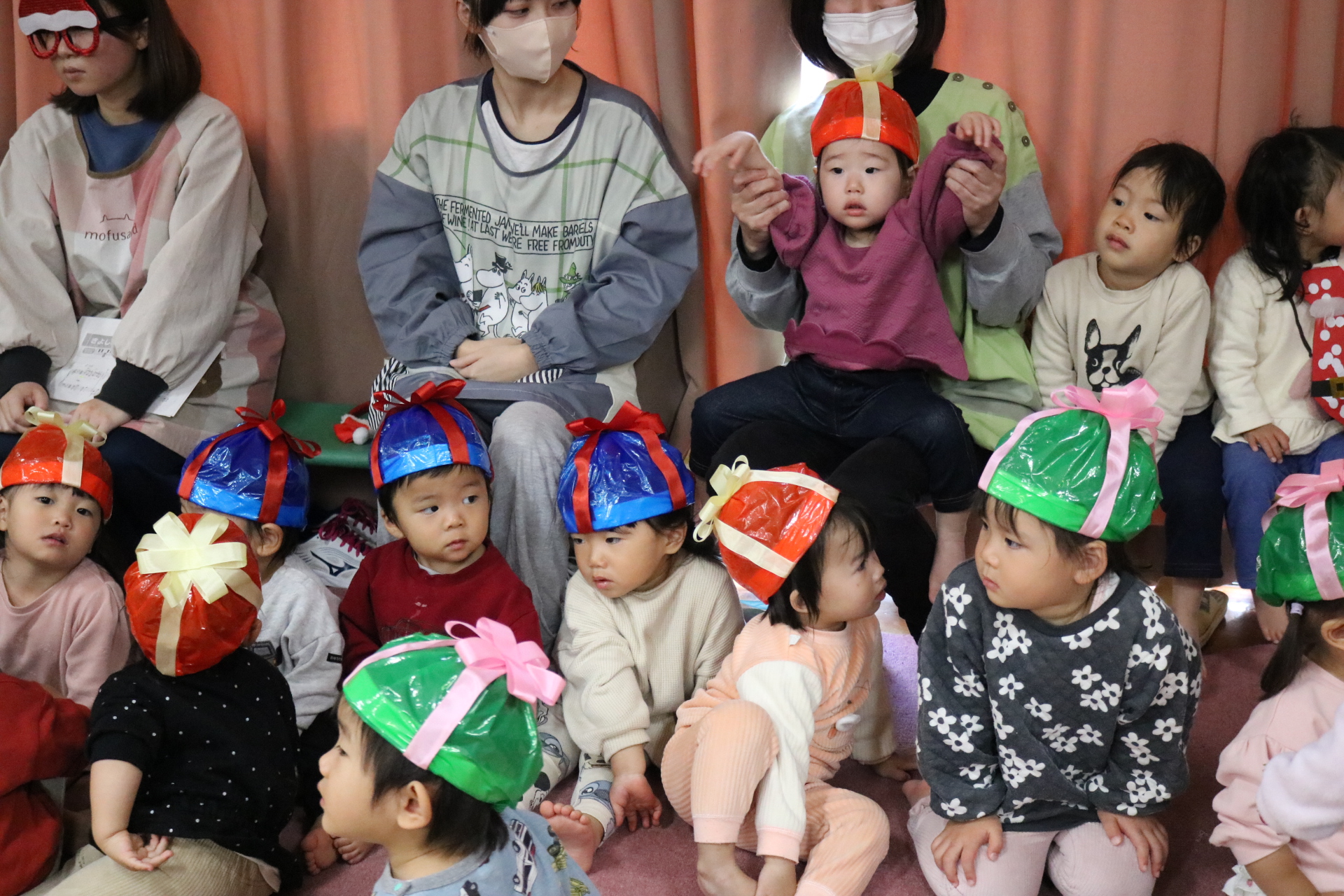 可愛い衣装に可愛い踊り🎵サンタさんからプレゼントももらえて喜ぶ子どもたちでした😊