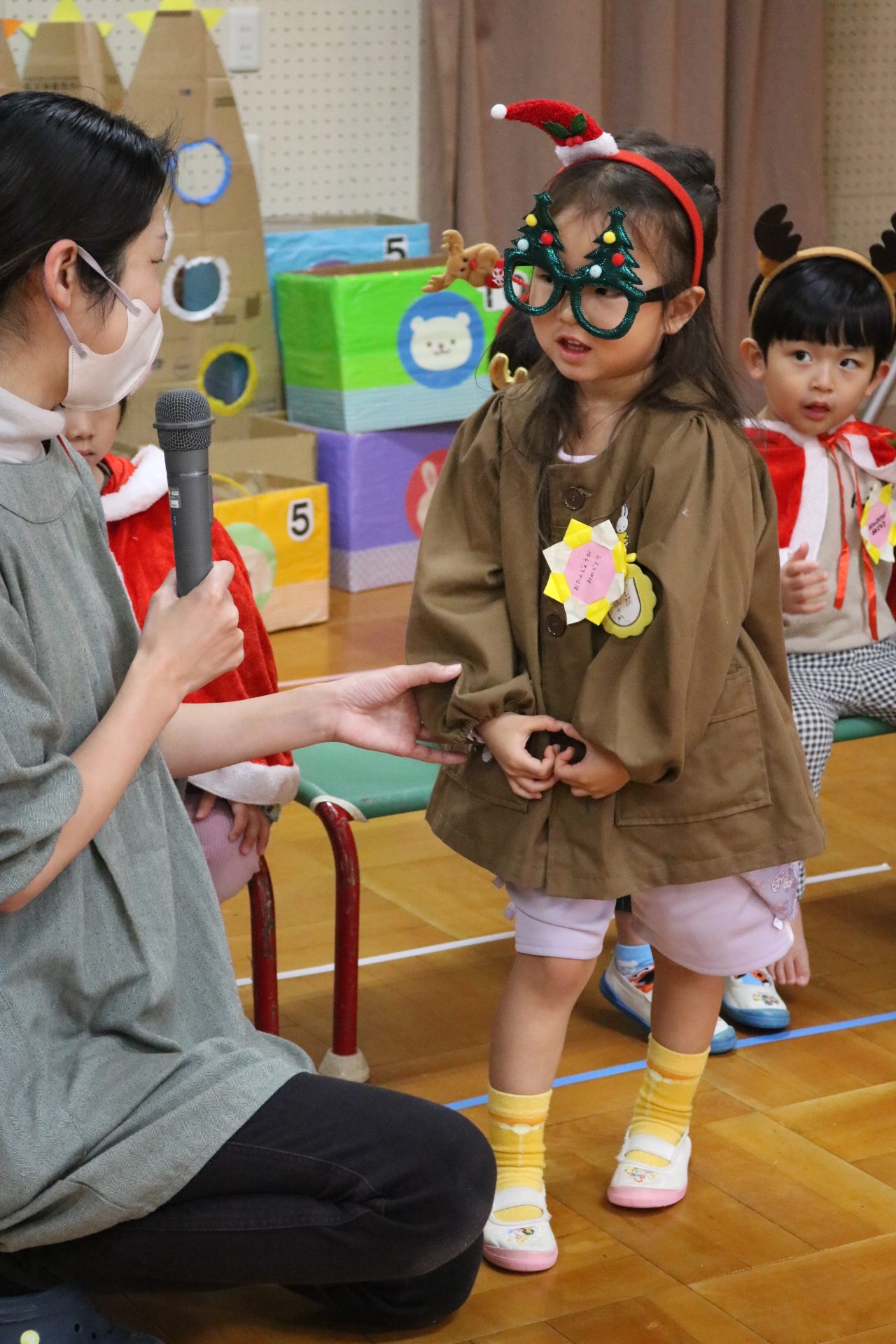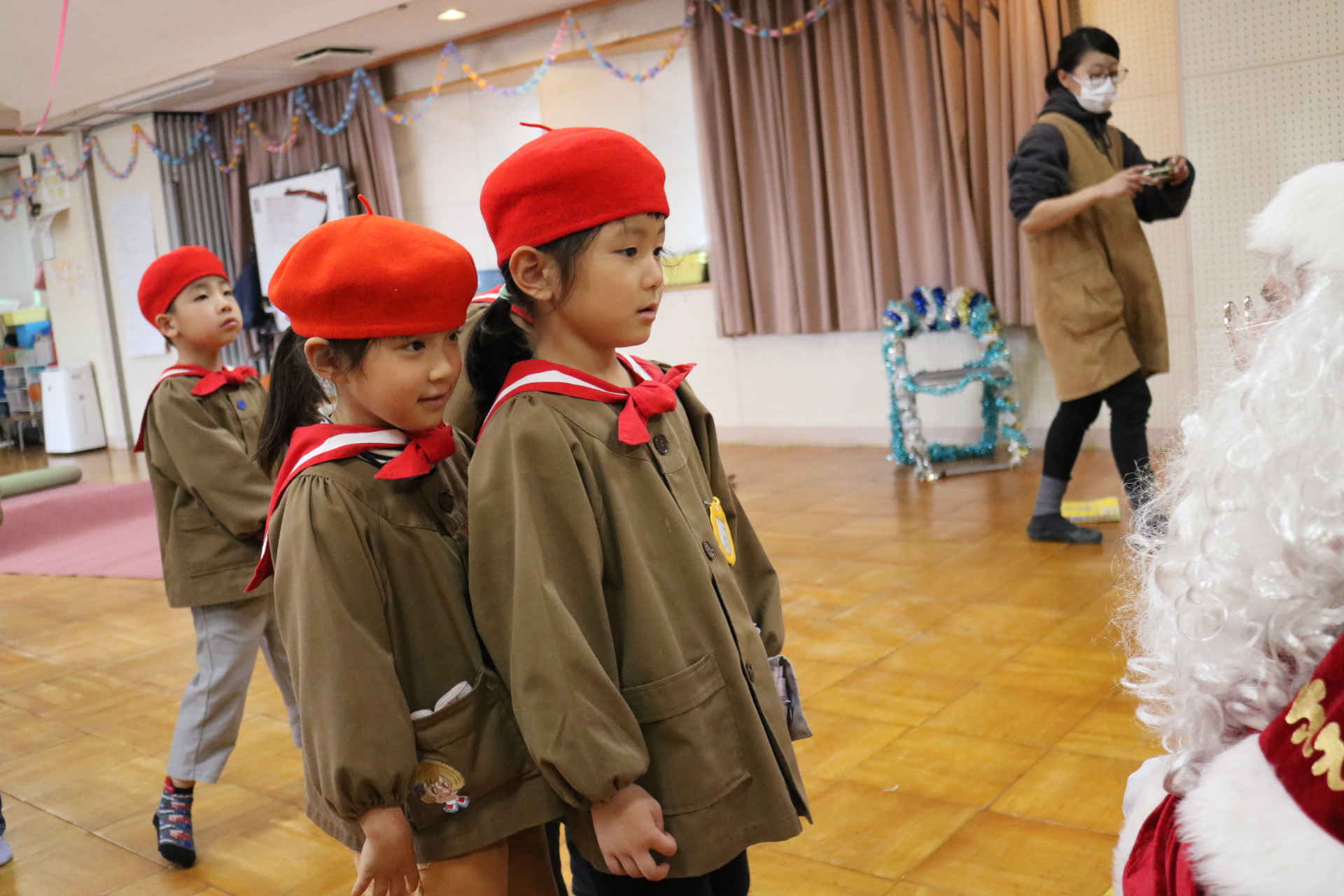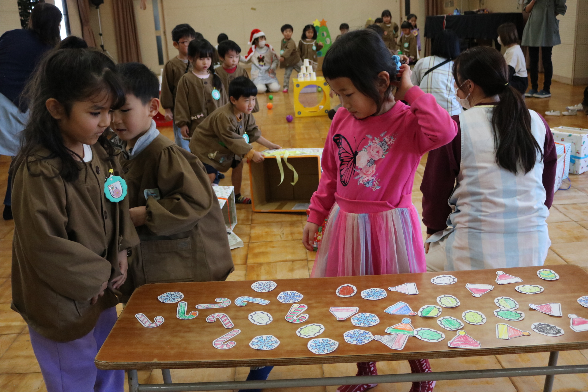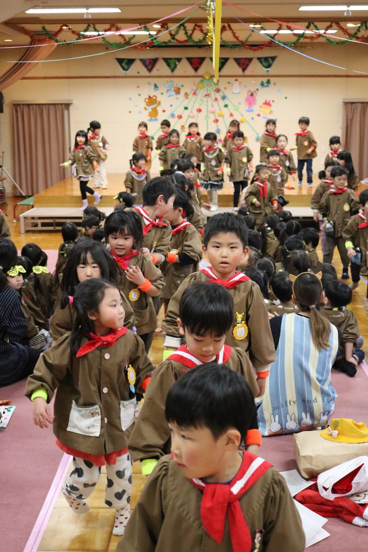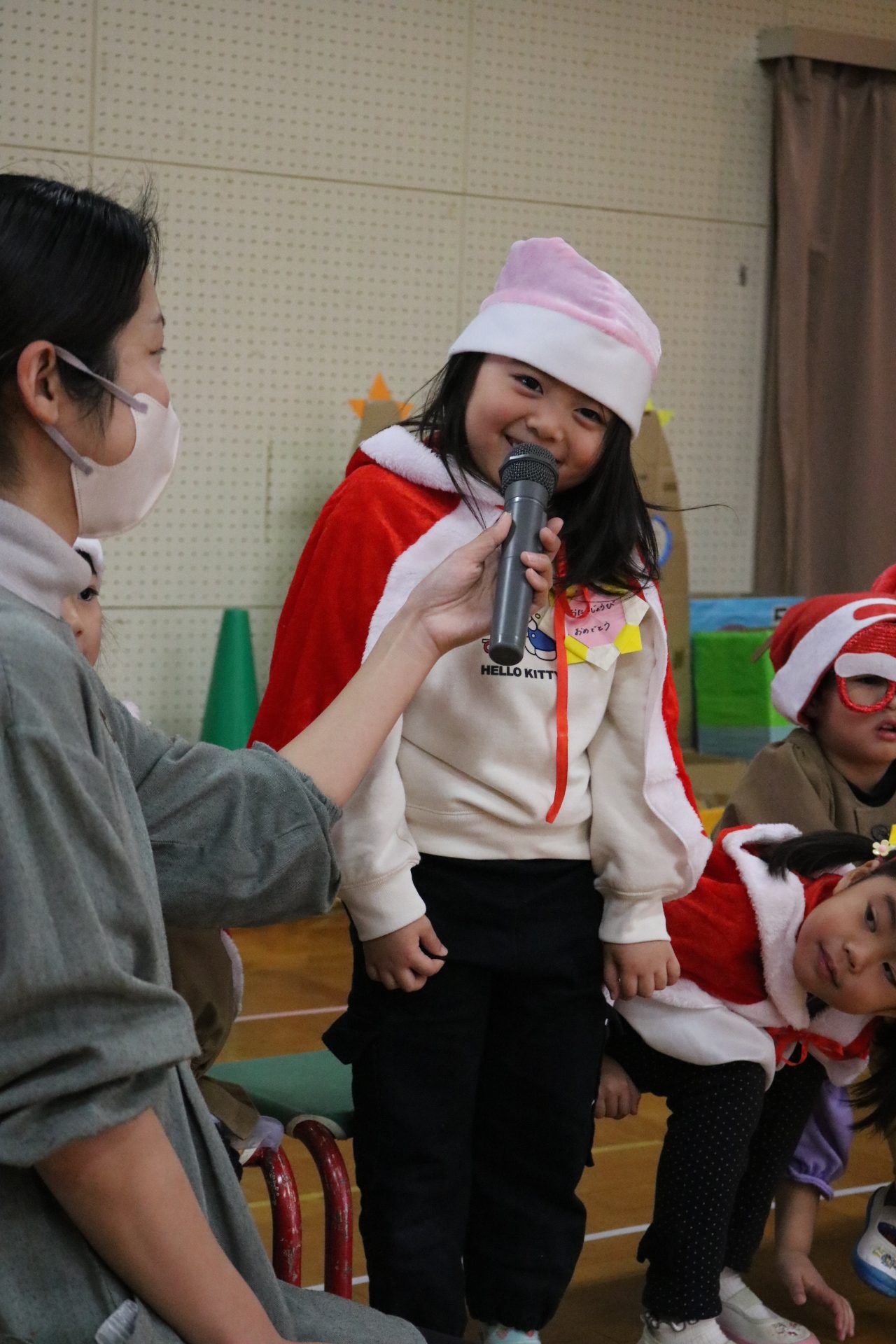 可愛い衣装に可愛い踊り🎵サンタさんからプレゼントももらえて喜ぶ子どもたちでした😊