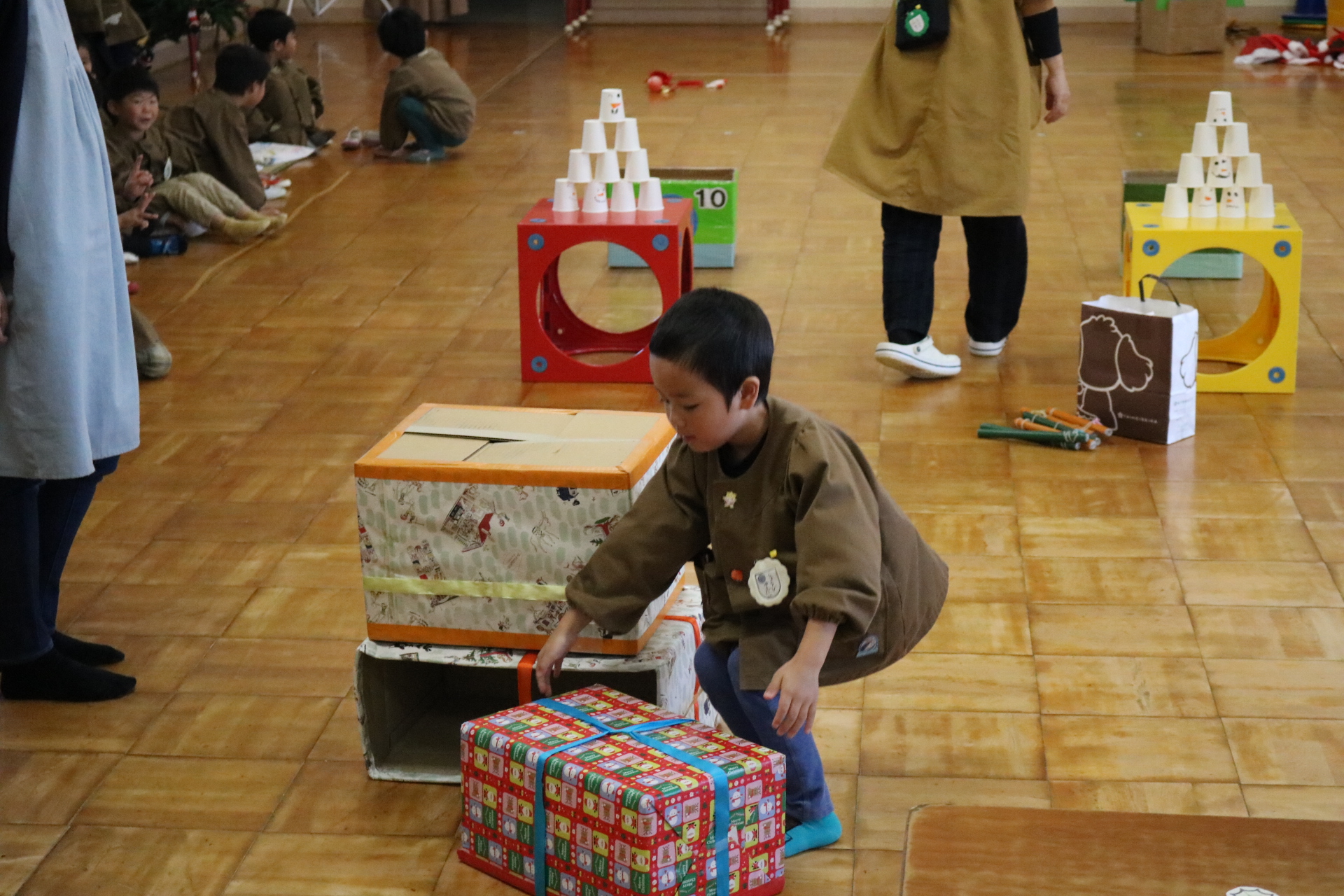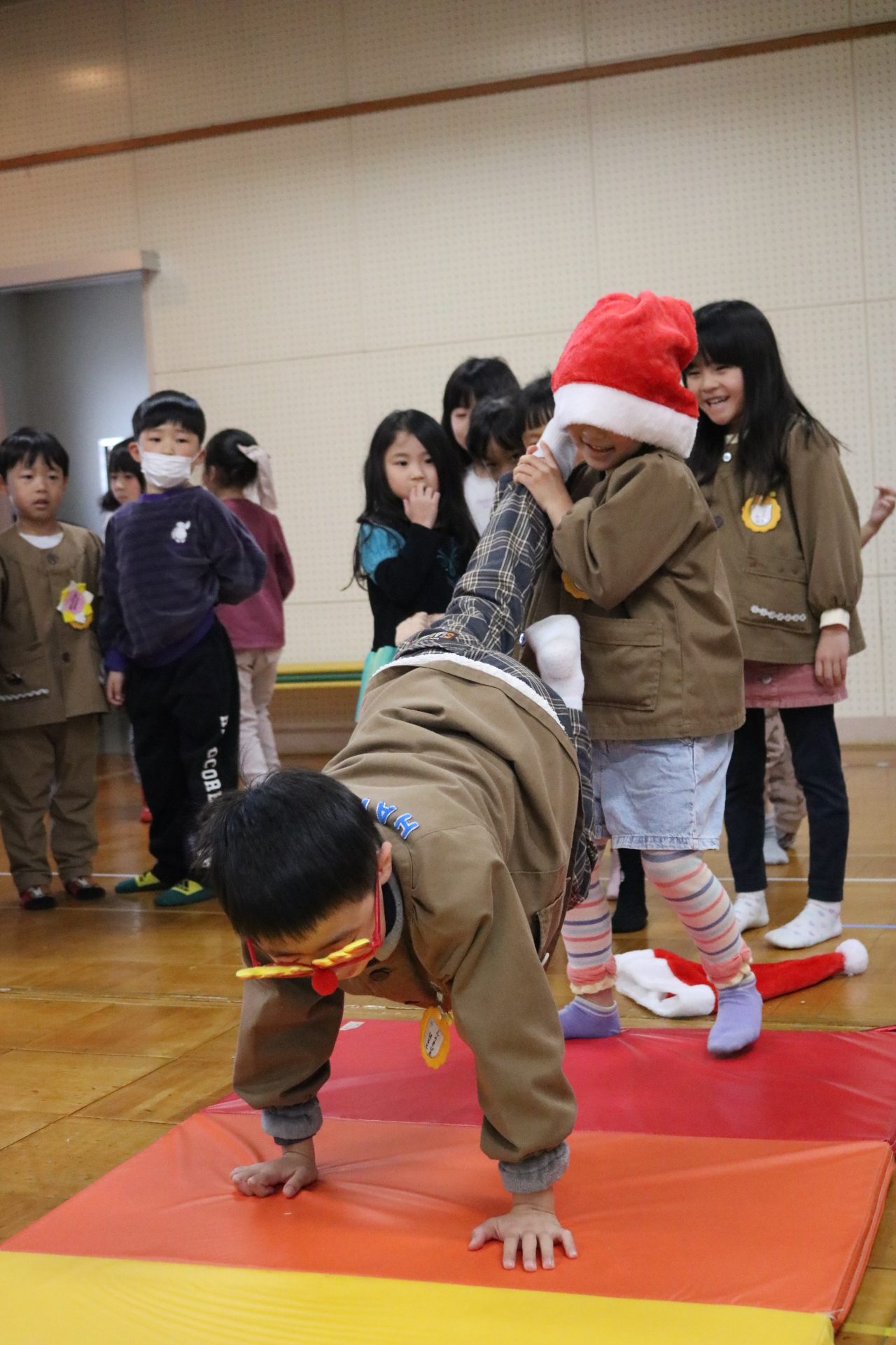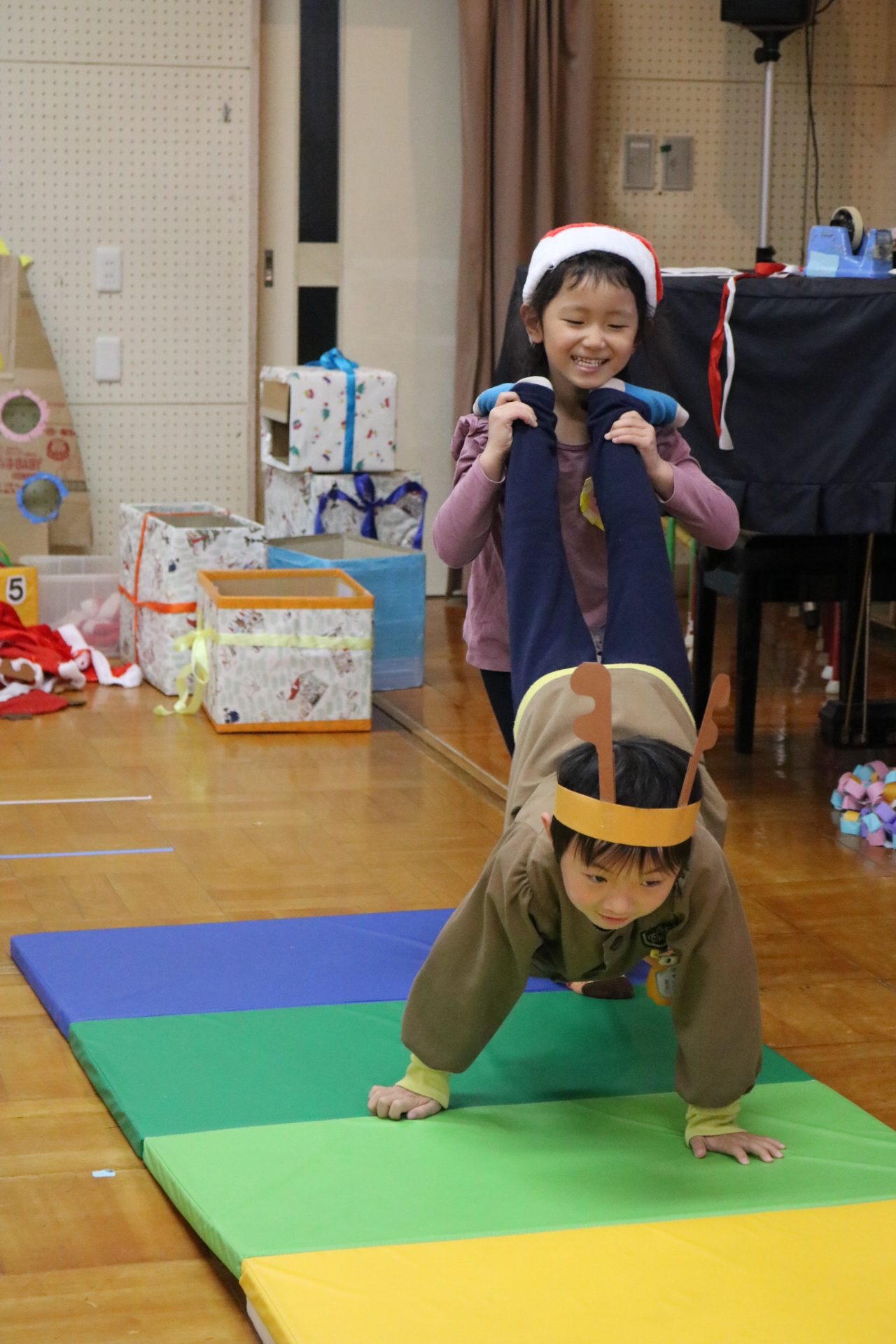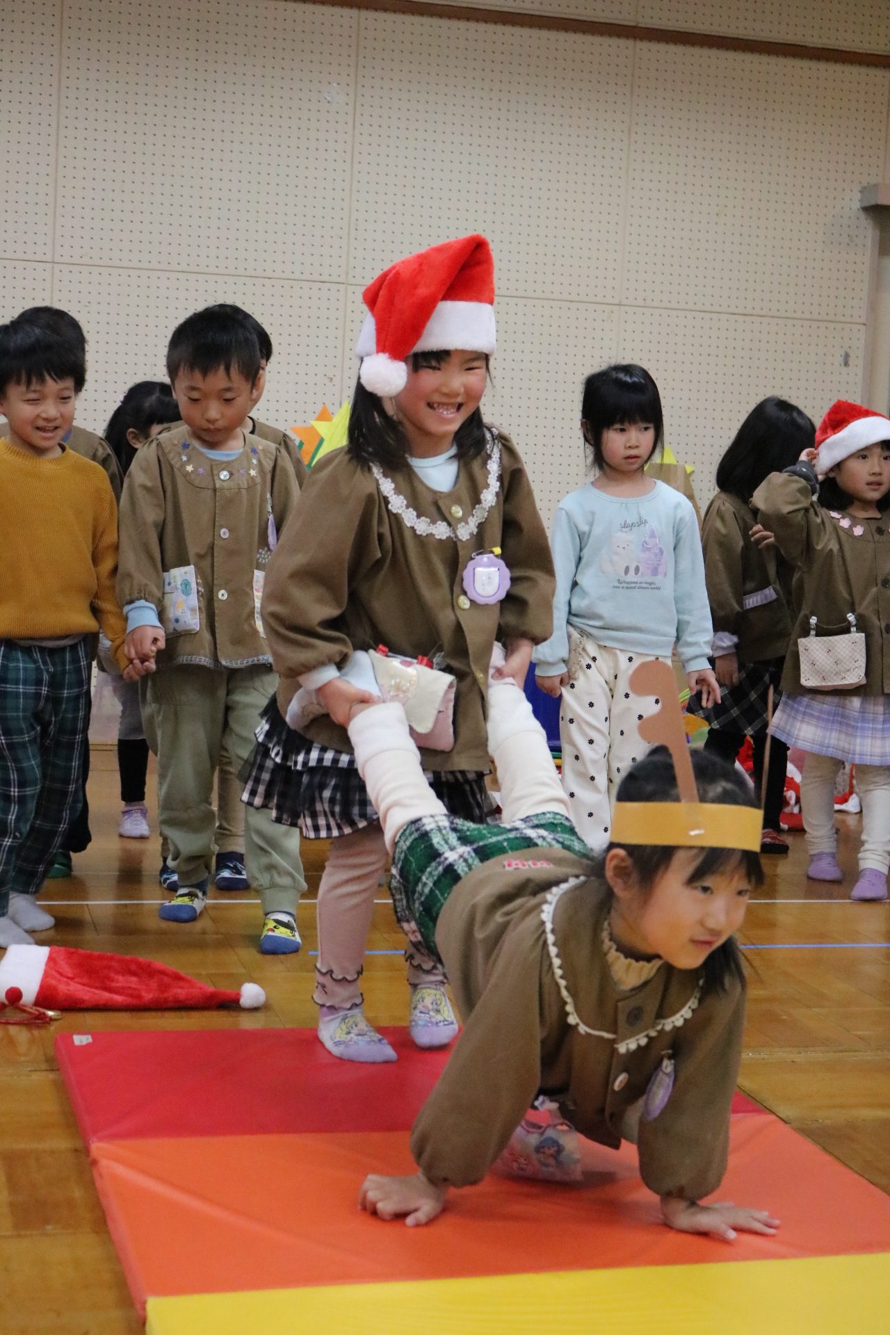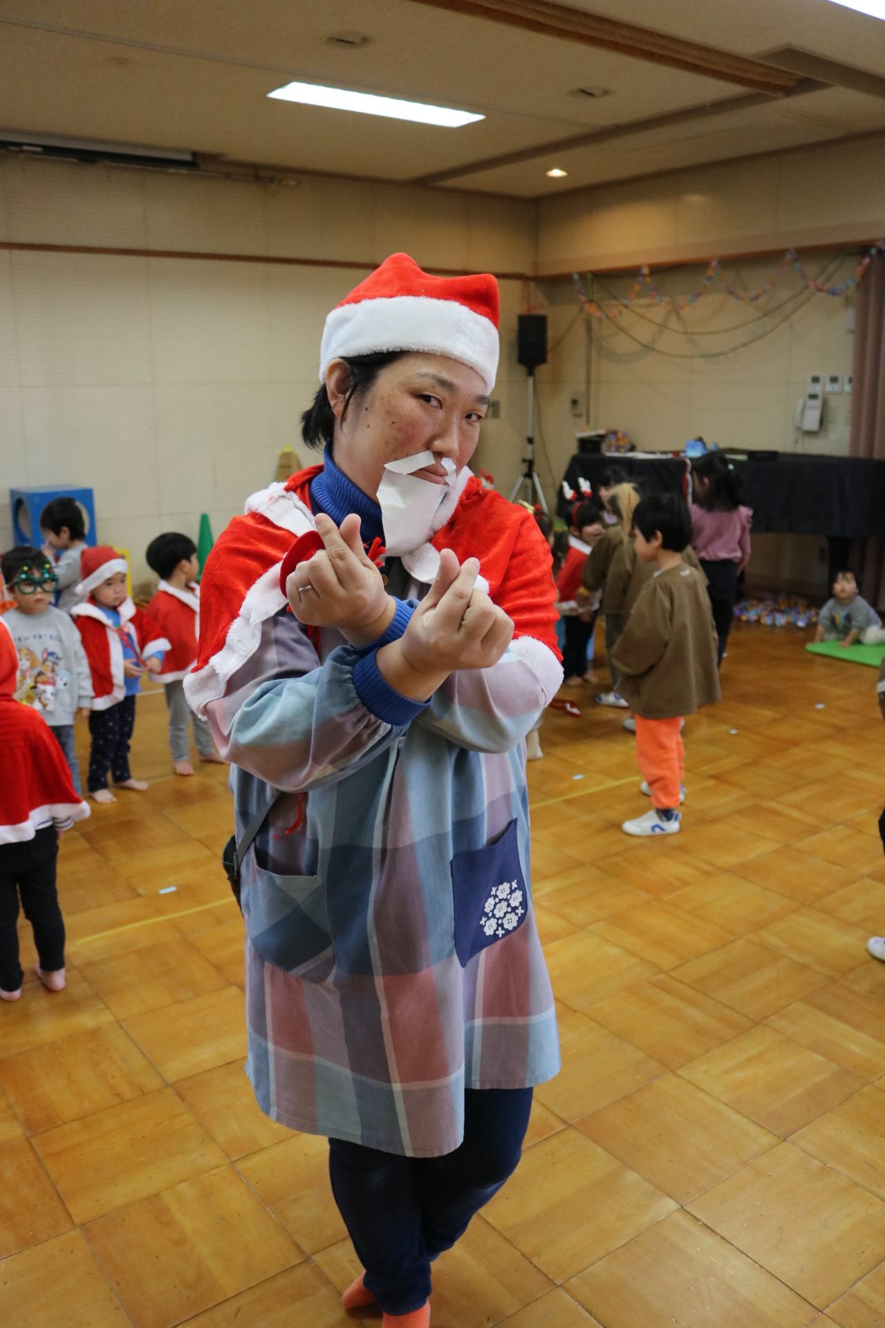 可愛い衣装に可愛い踊り🎵サンタさんからプレゼントももらえて喜ぶ子どもたちでした😊