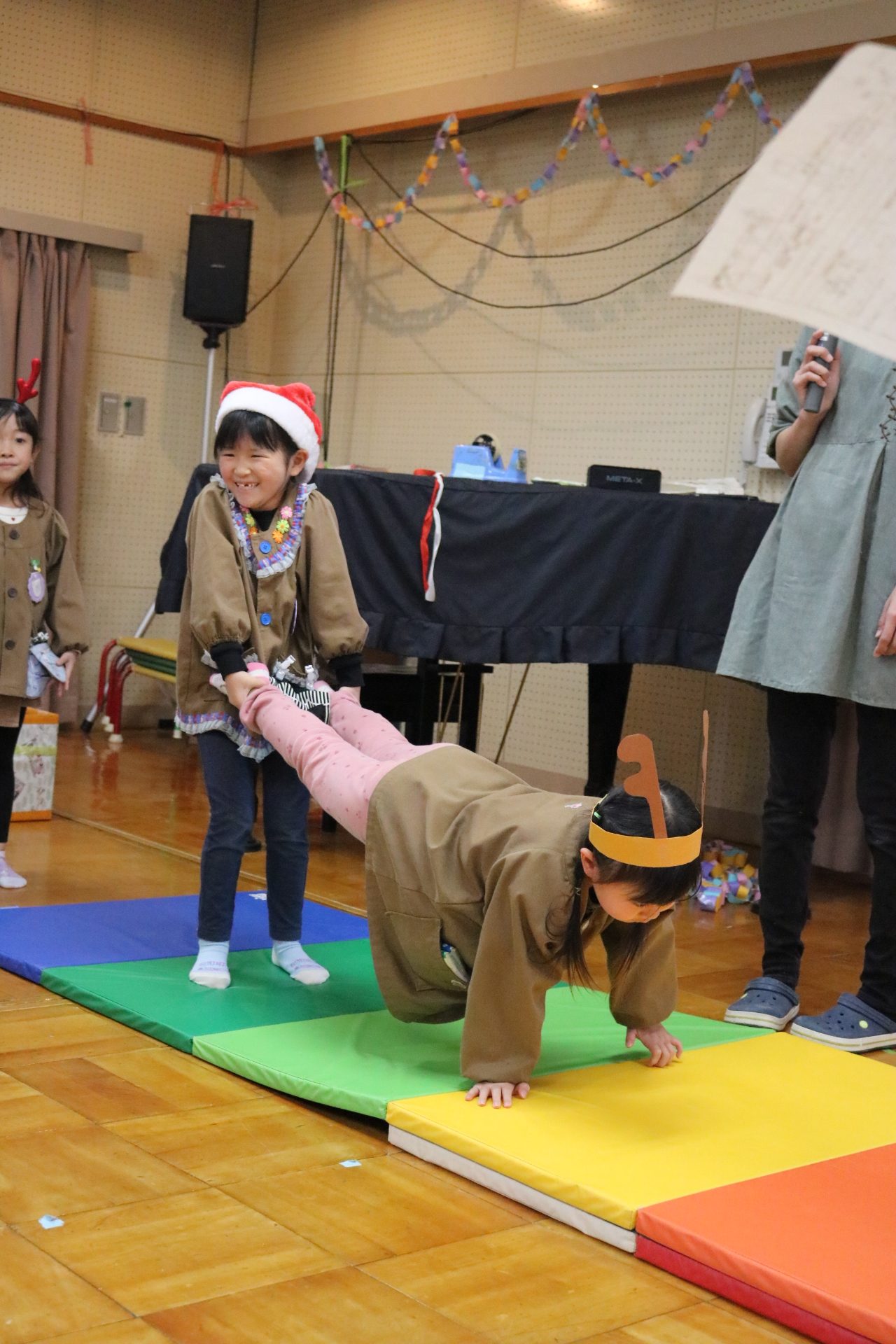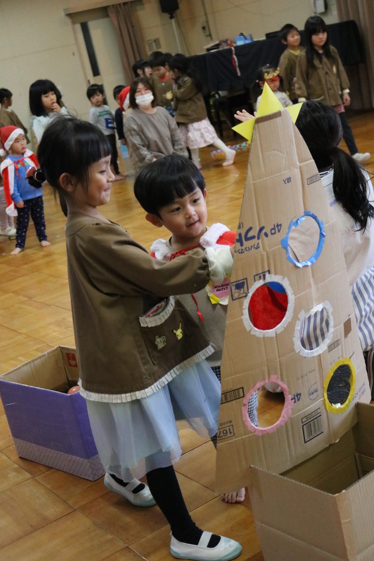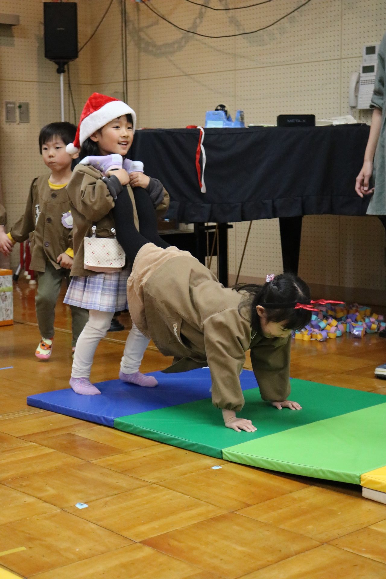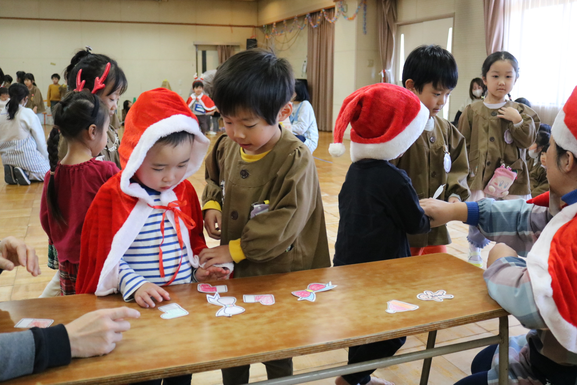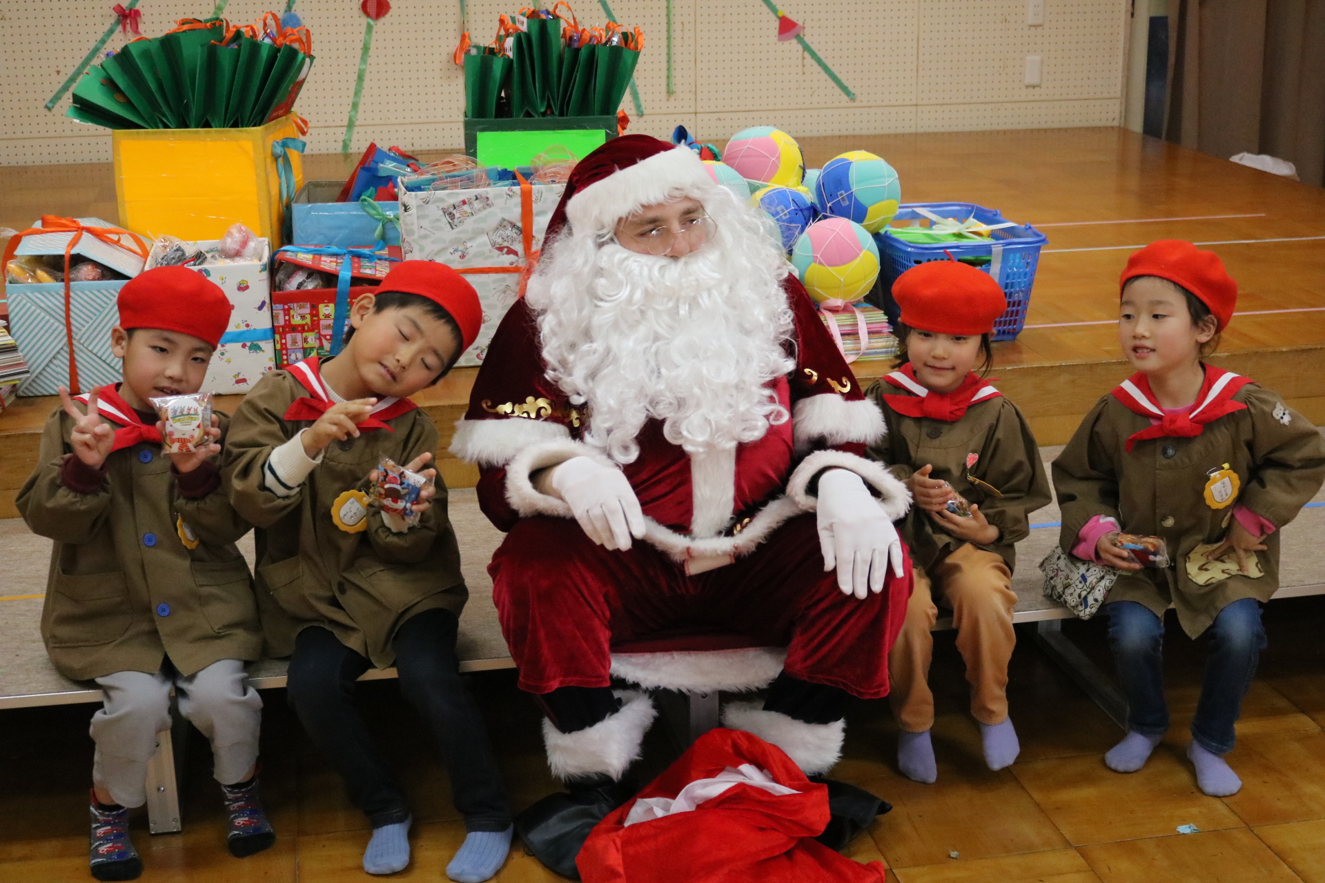 可愛い衣装に可愛い踊り🎵サンタさんからプレゼントももらえて喜ぶ子どもたちでした😊