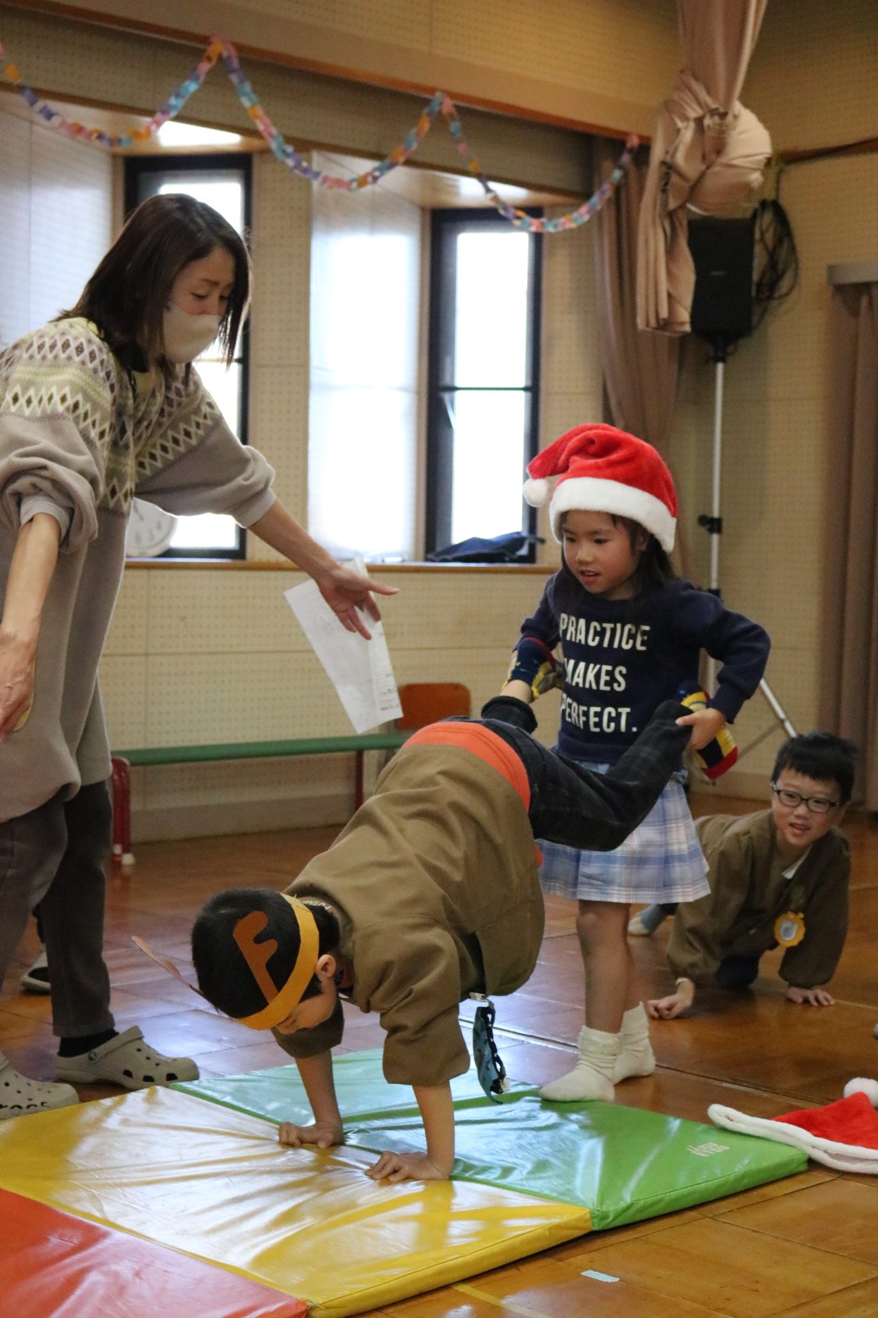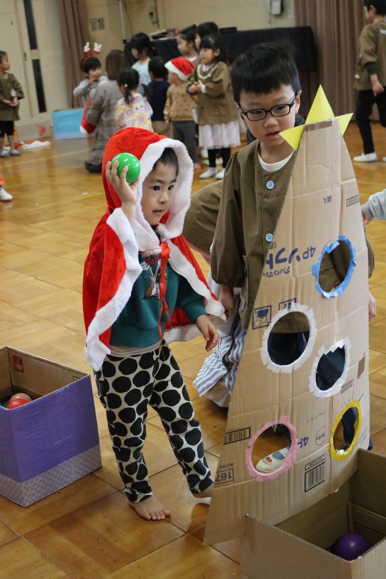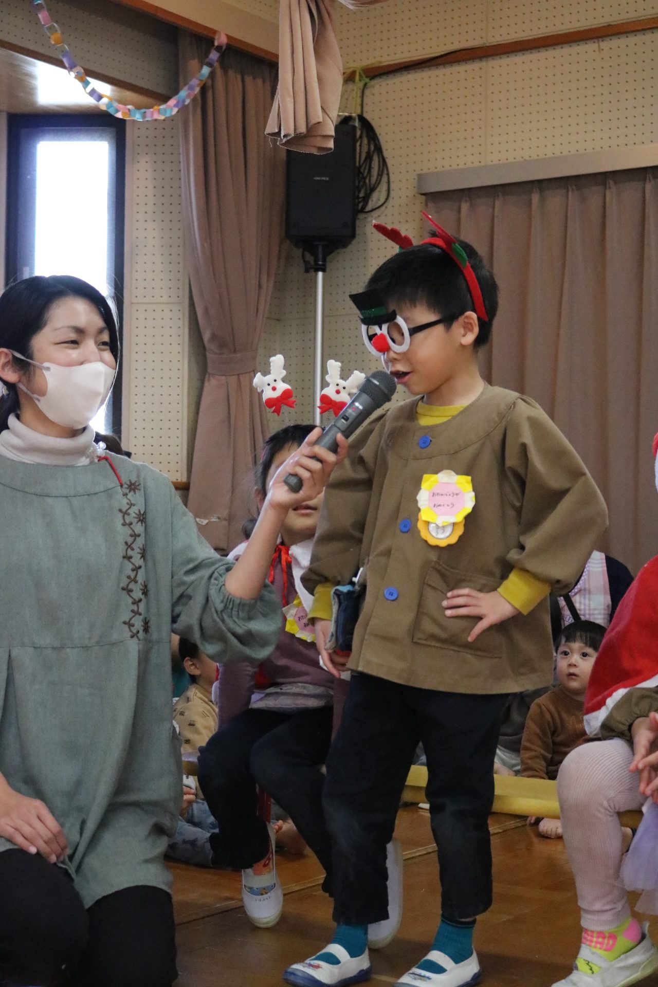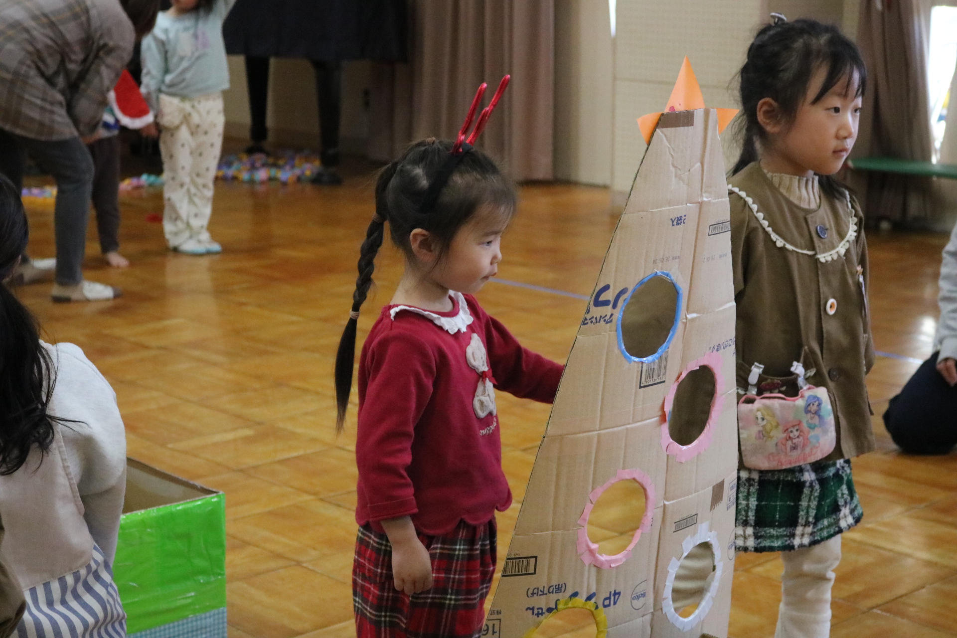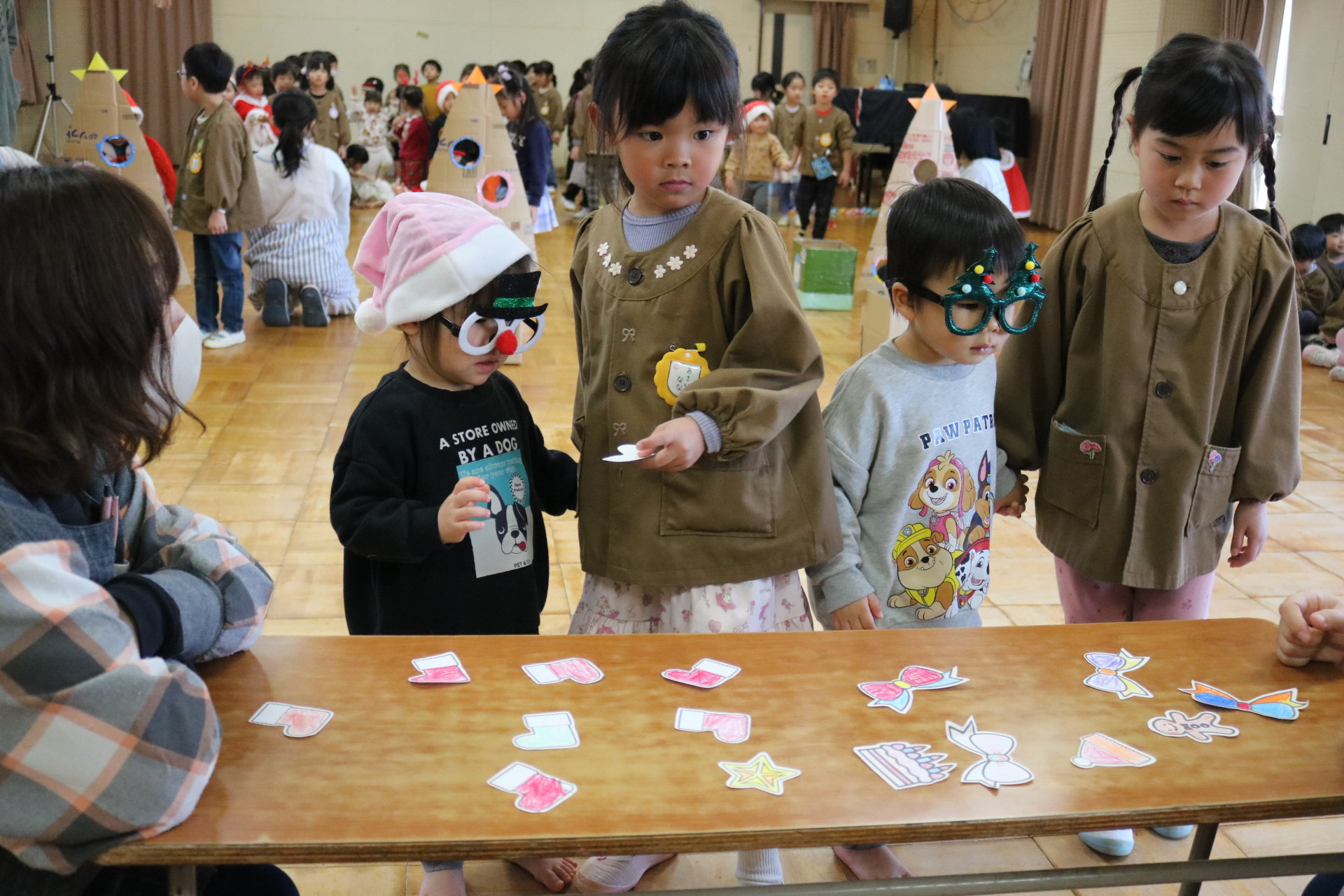 可愛い衣装に可愛い踊り🎵サンタさんからプレゼントももらえて喜ぶ子どもたちでした😊